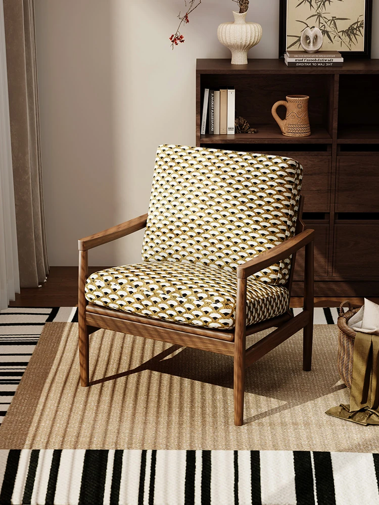 Removable and Washable Vintage Single Sofa Chair - Designer Retro Solid Wood Lounge Chair for Living Room, Balcony, and Bedroom - High-End Leisure Seating with a Touch of Elegance