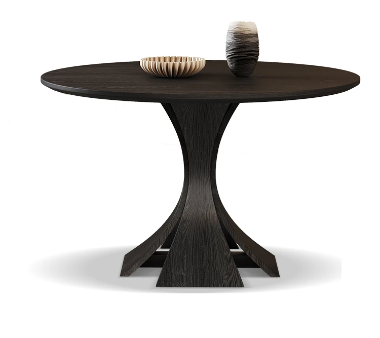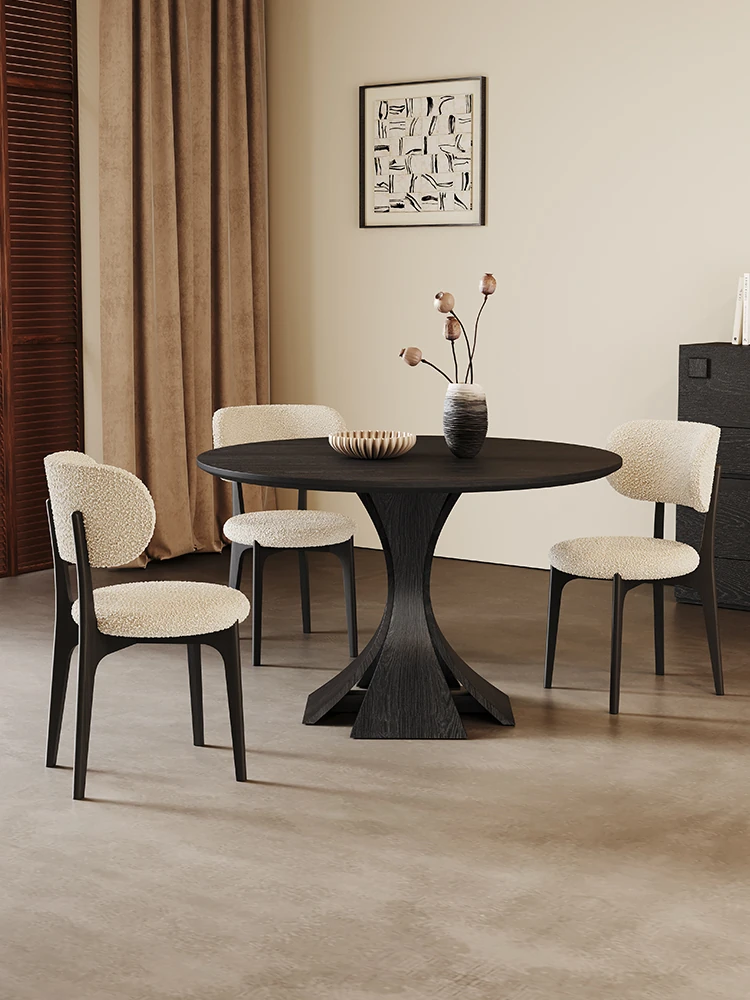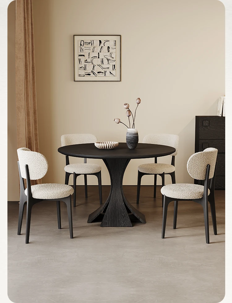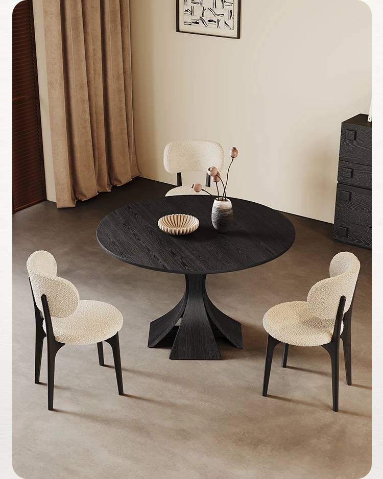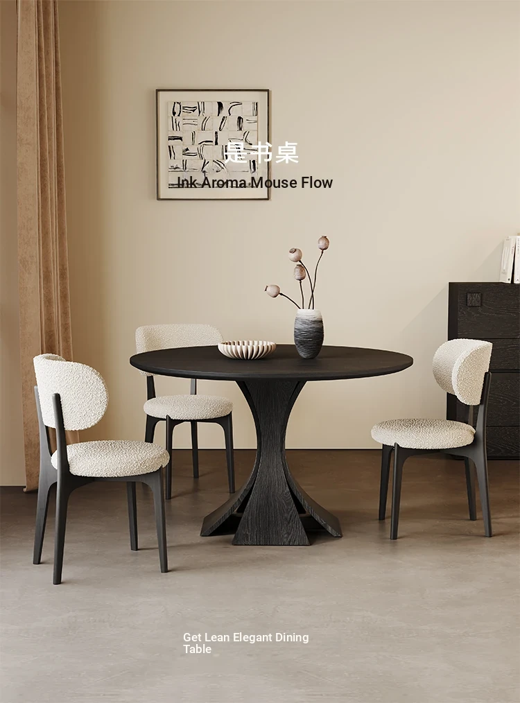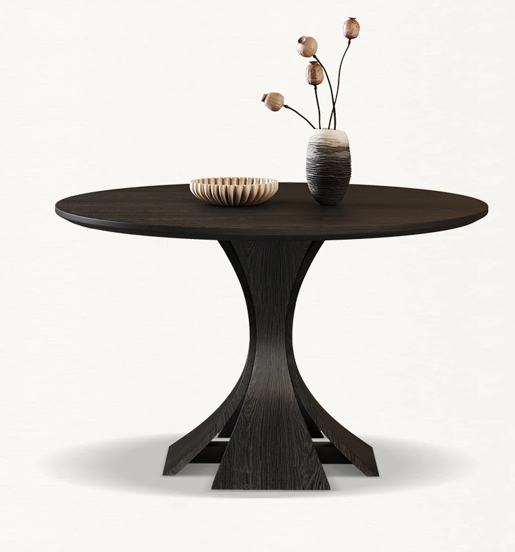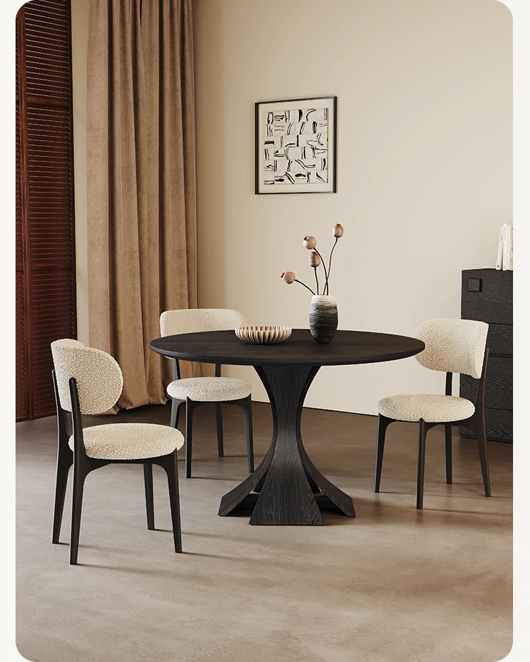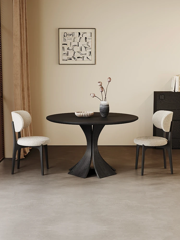 August French Vintage Solid Wood Round Table – Elegant Black Solid Wood Dining Table for Small Spaces, Perfect for Meetings and Dining