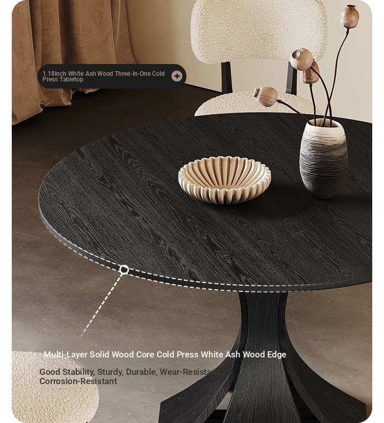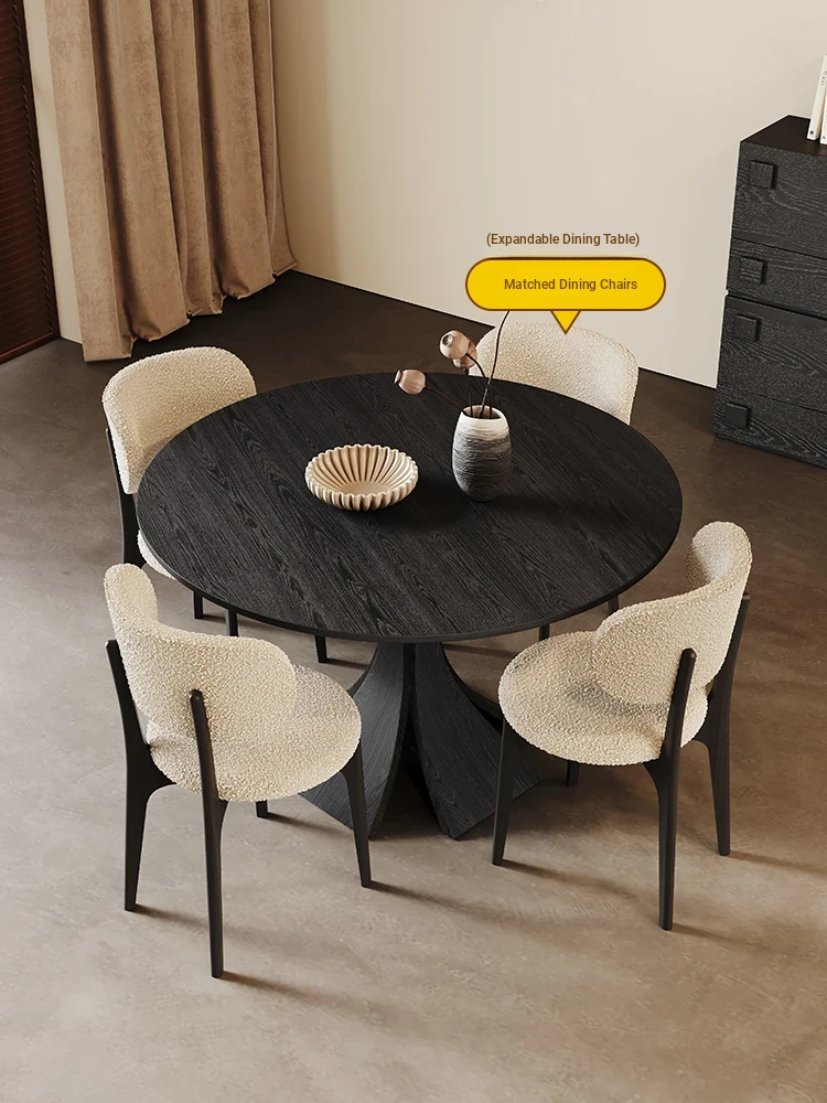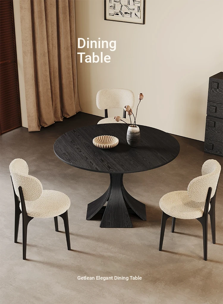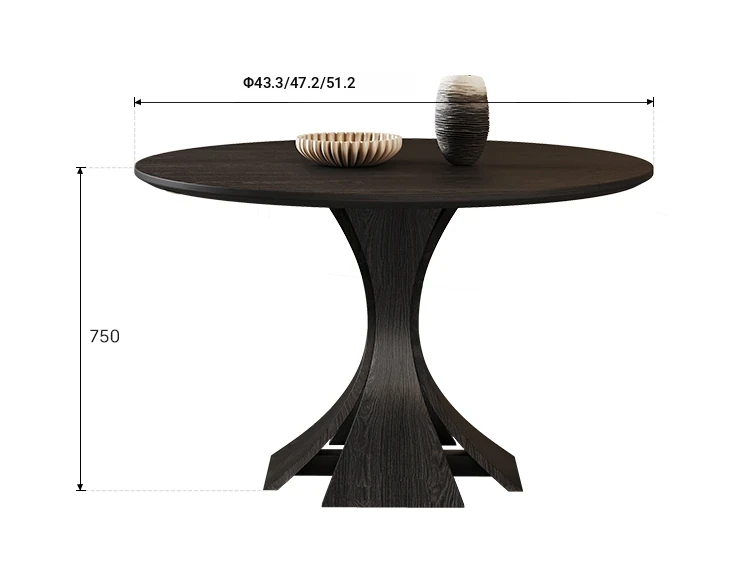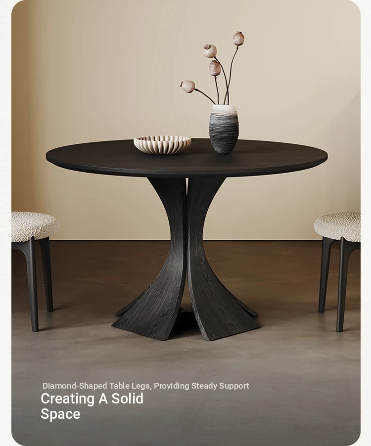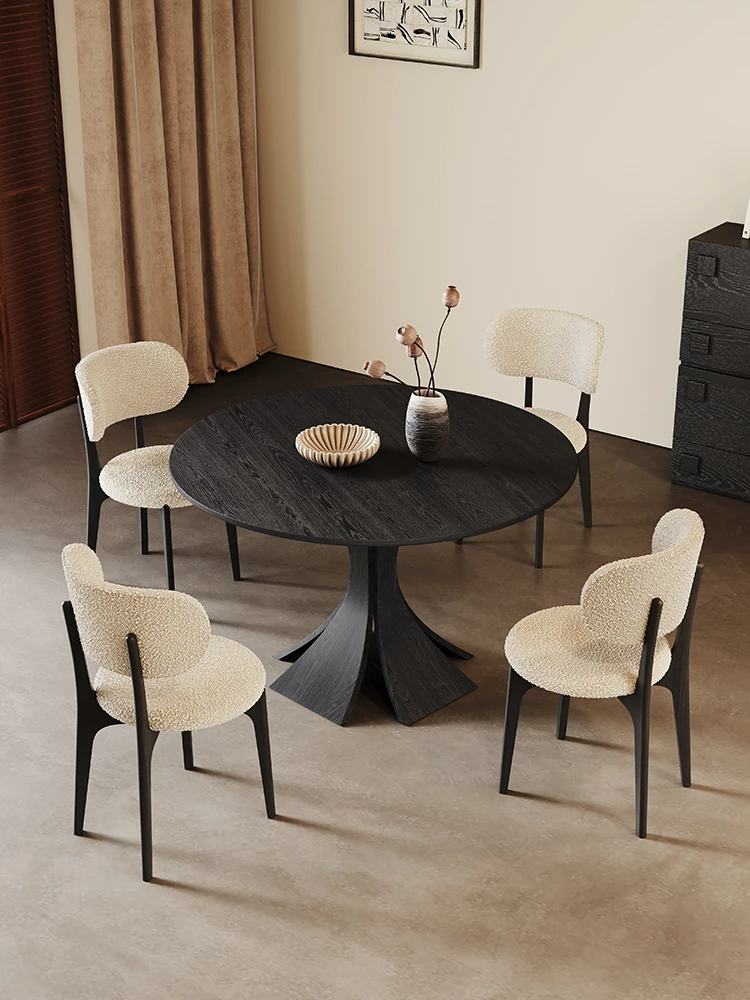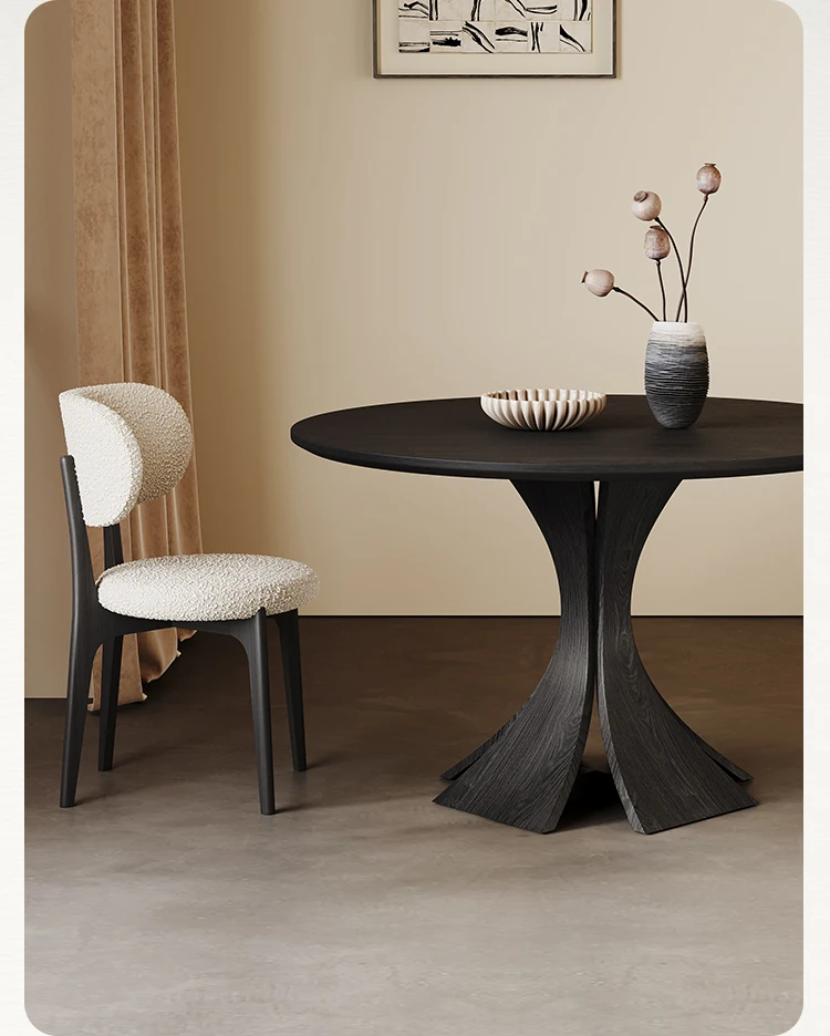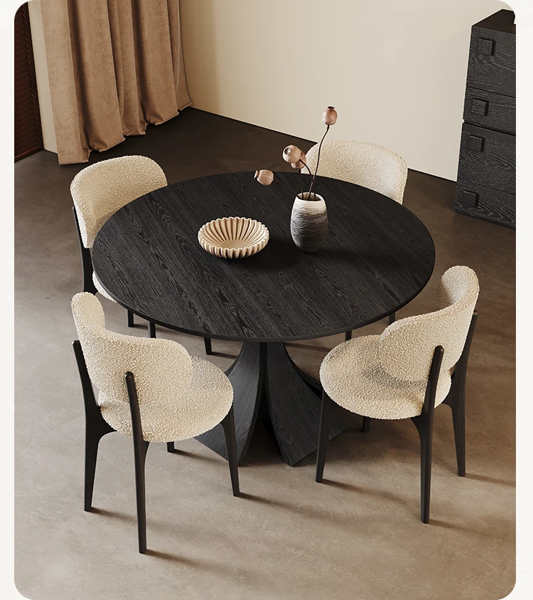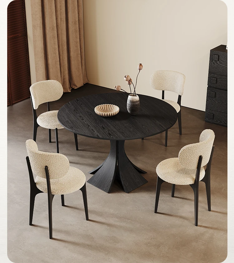 August French Vintage Solid Wood Round Table – Elegant Black Solid Wood Dining Table for Small Spaces, Perfect for Meetings and Dining