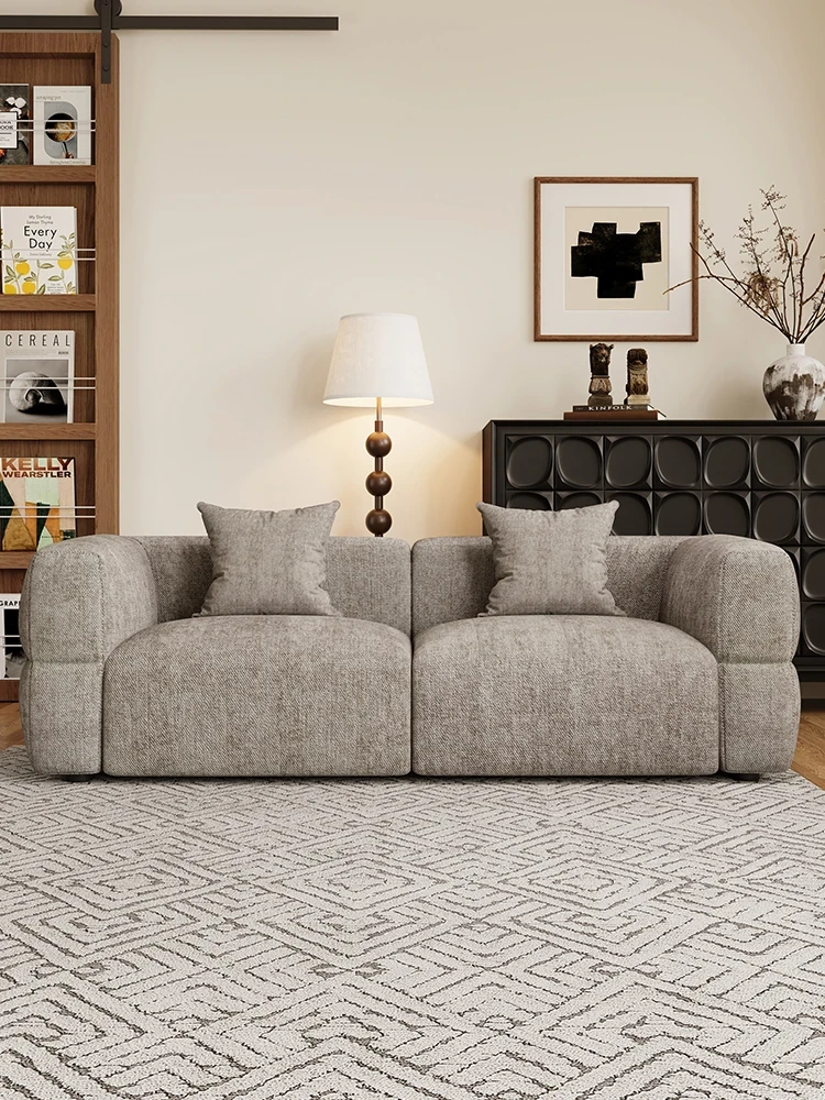 小型フレンチアンティークスタイルのヴィンテージブラウンクリーム調ベラント大平面リビング用ファブリックコットンリネンストレートソファ