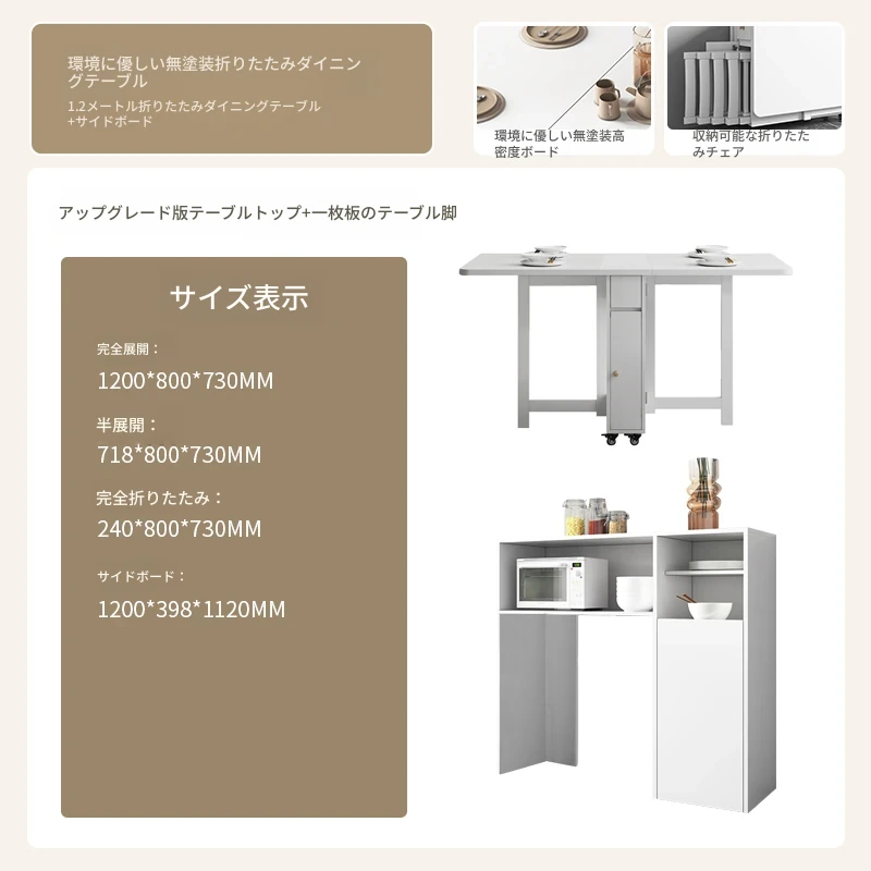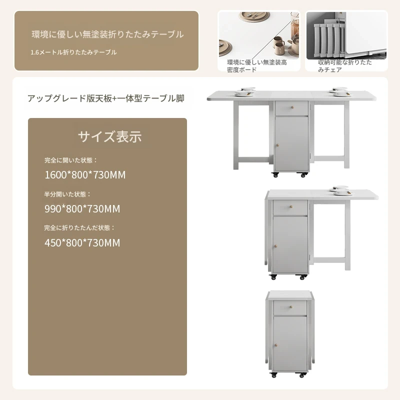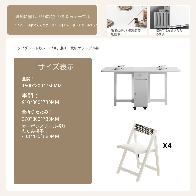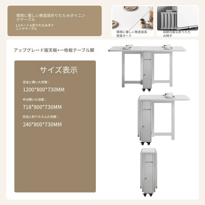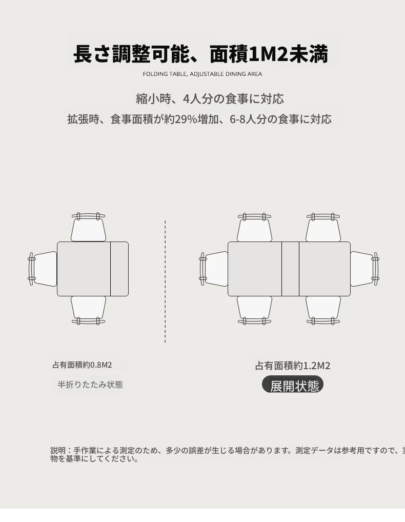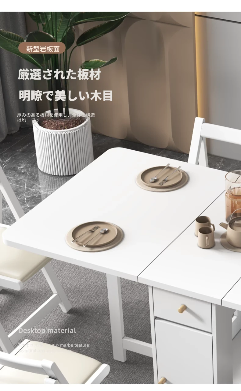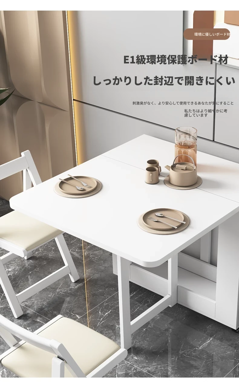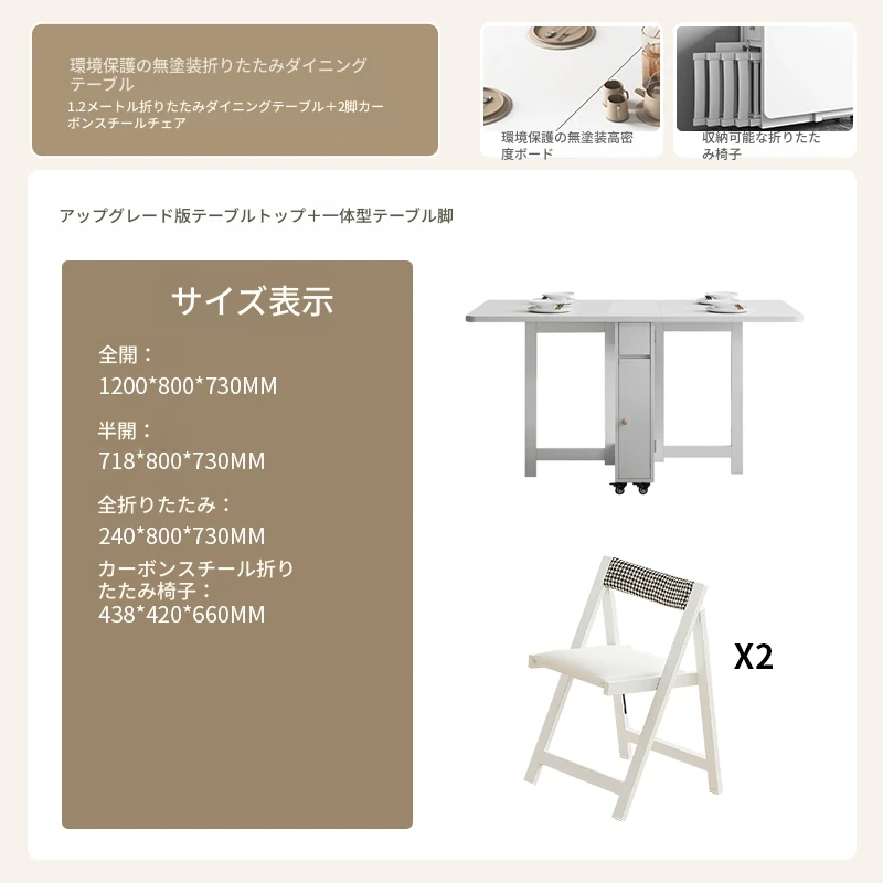 クリーム風の小型折りたたみダイニングテーブル|シンプルでモダンな長方形|家族や友人との食事に最適|機能的で伸縮可能|スペースを有効活用する理想的な選択!