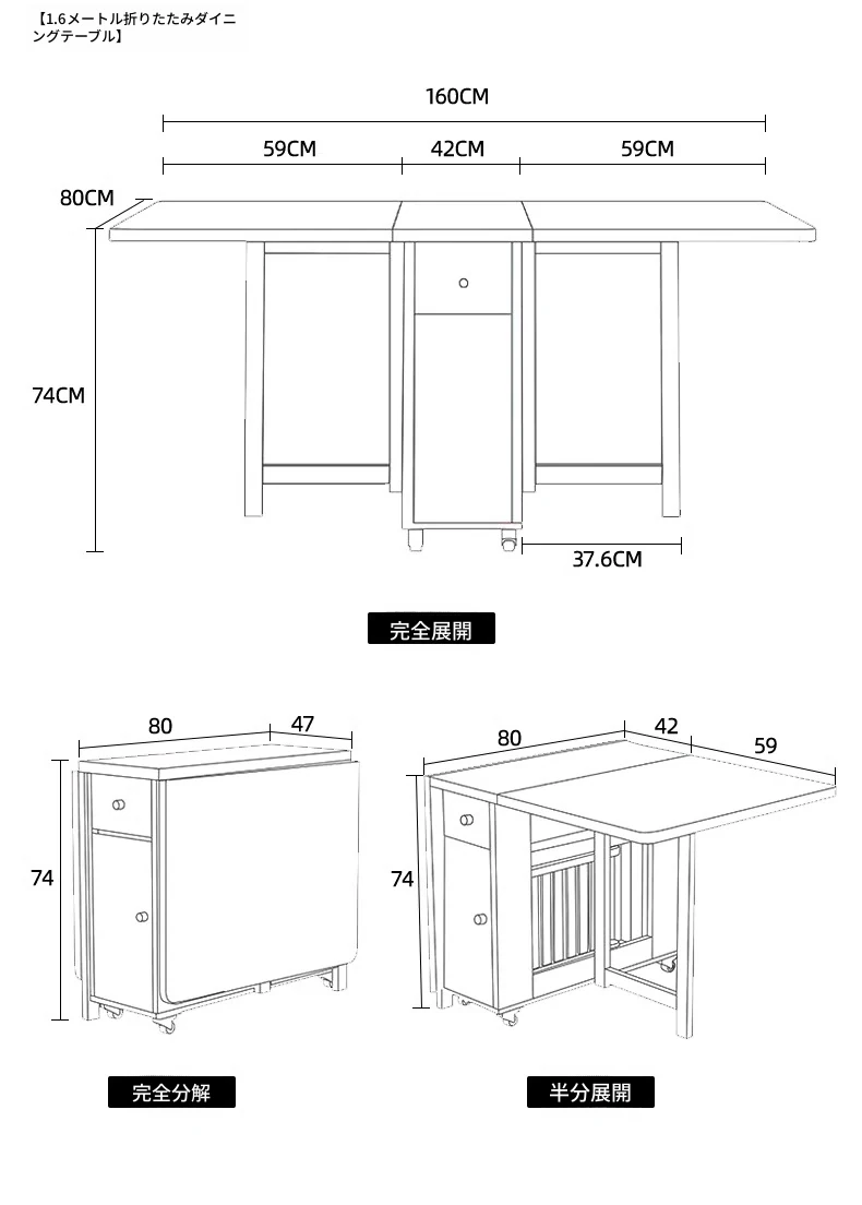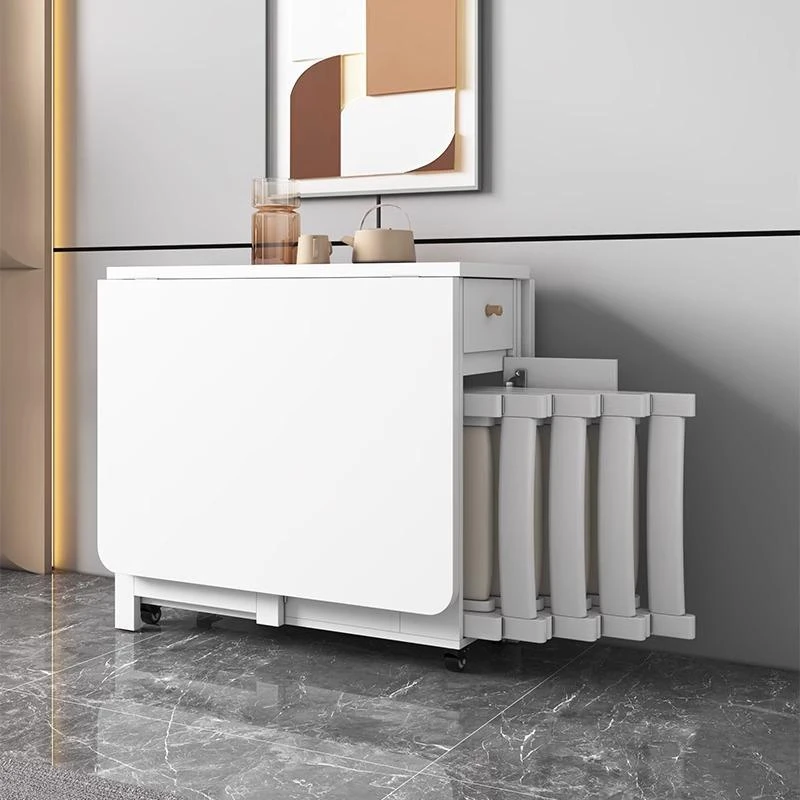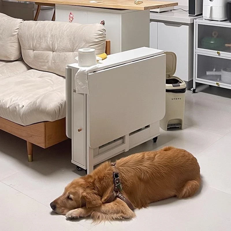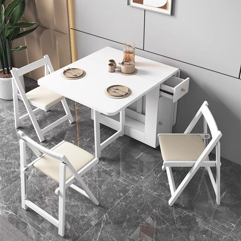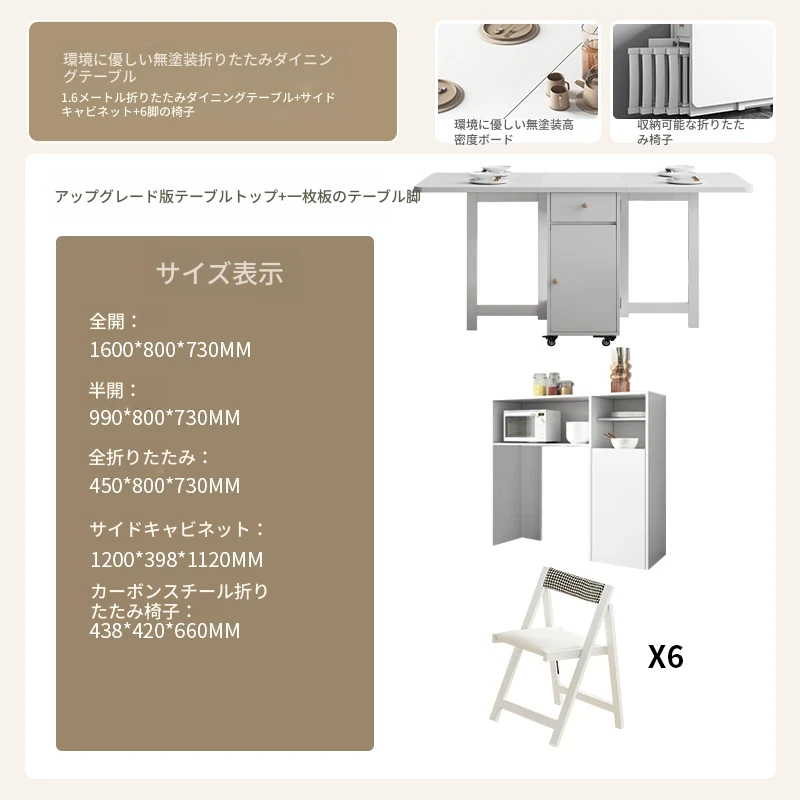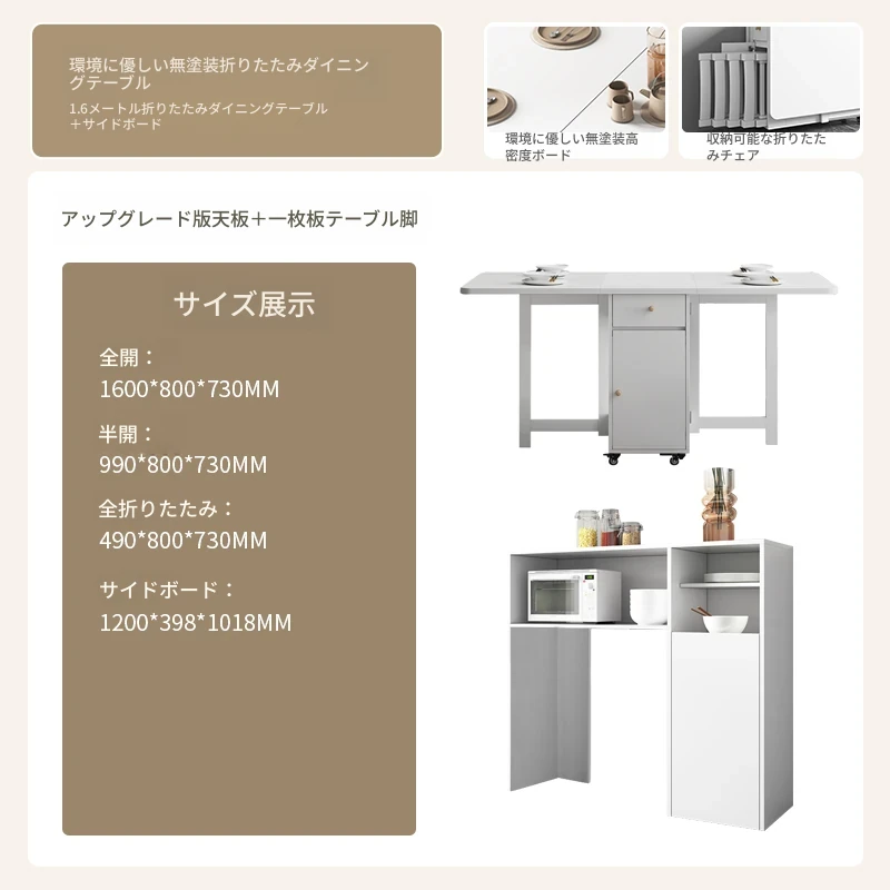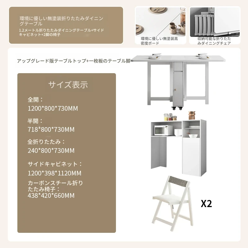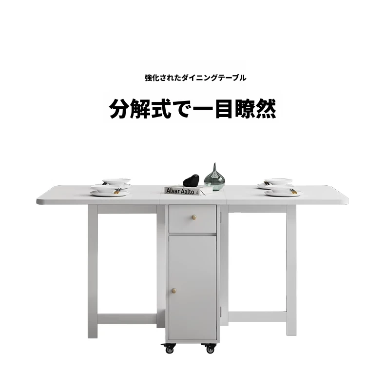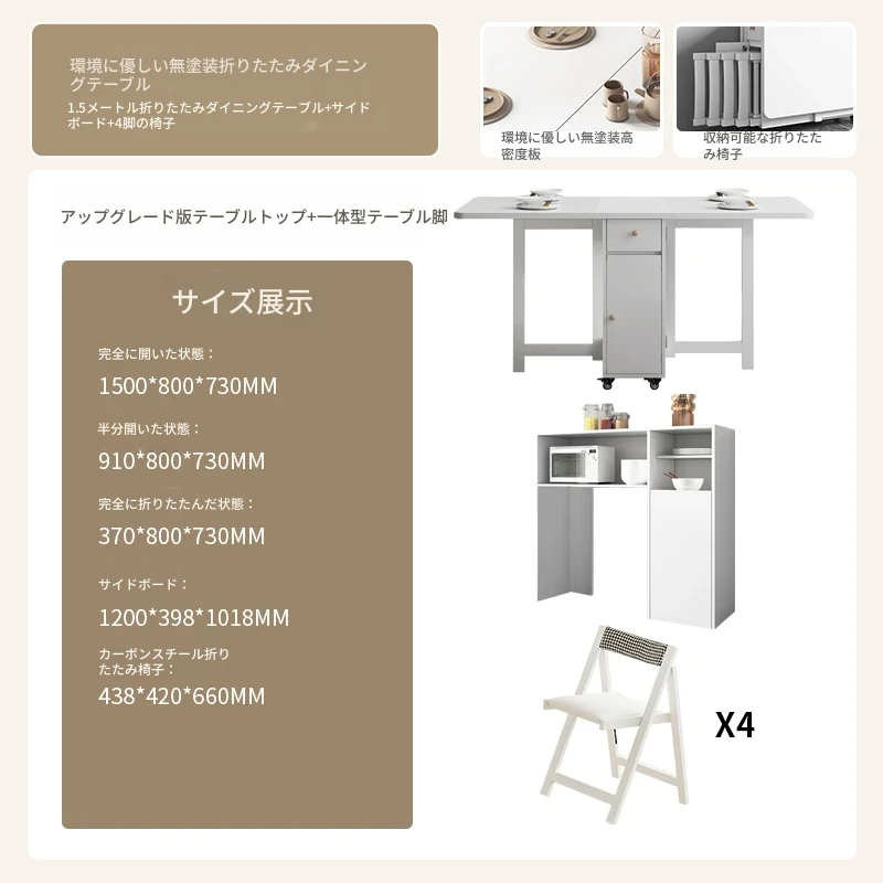 クリーム風の小型折りたたみダイニングテーブル|シンプルでモダンな長方形|家族や友人との食事に最適|機能的で伸縮可能|スペースを有効活用する理想的な選択!
