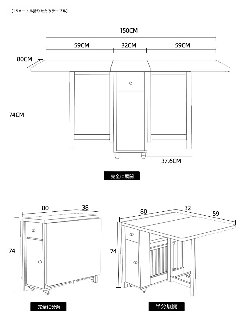 1.5メートル単卓