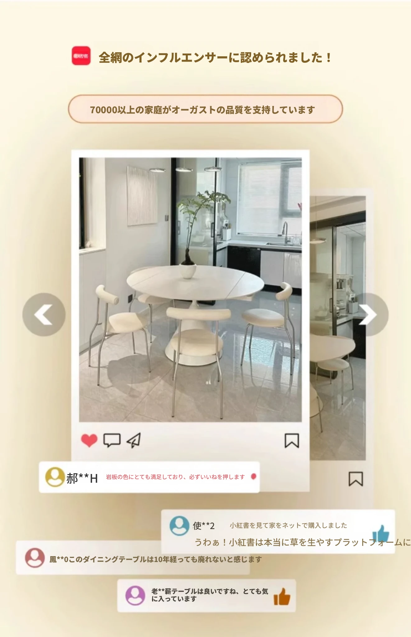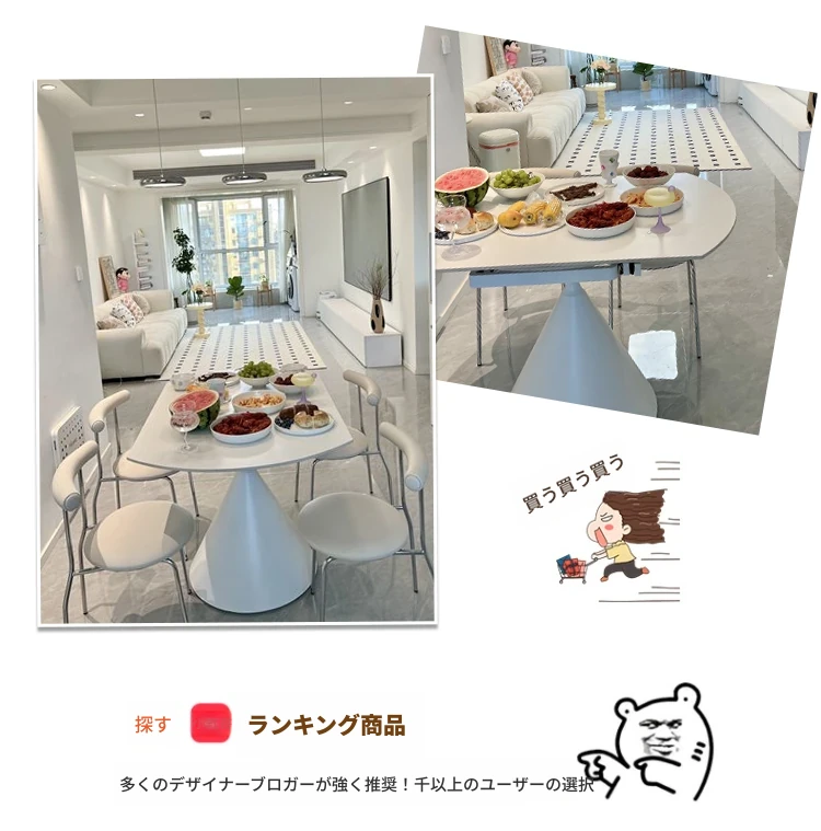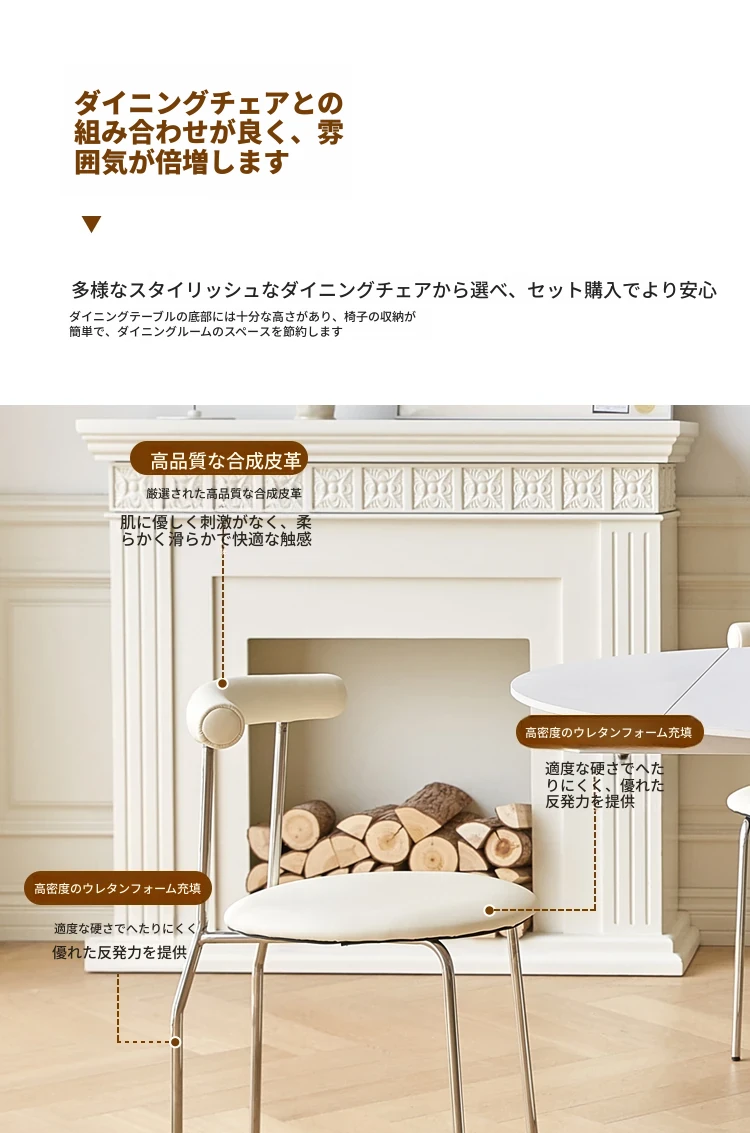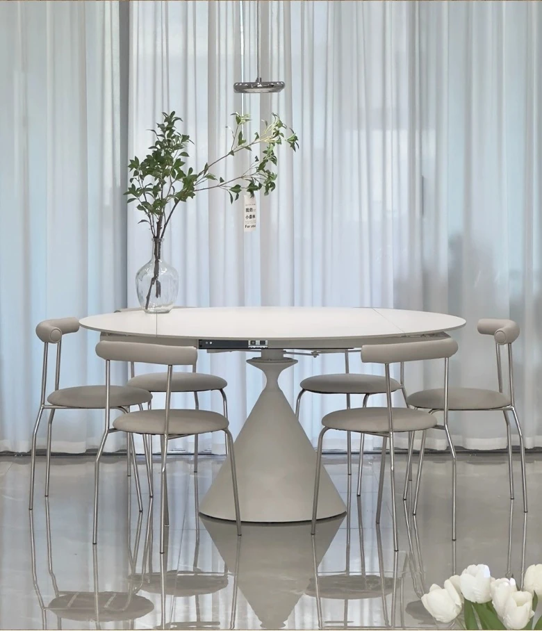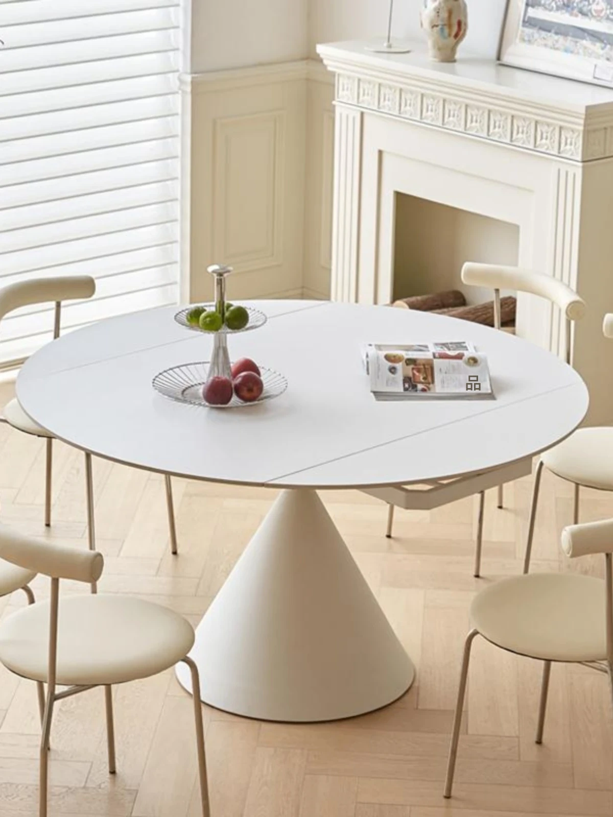 クリーミーなホワイトの岩板ダイニングテーブル&チェアセット、回転式&伸縮可能!小さなスペースにもぴったりの折りたたみ式、四角と丸の両方で使える便利なデザイン。家庭用に最適!