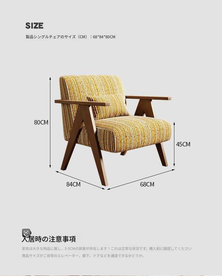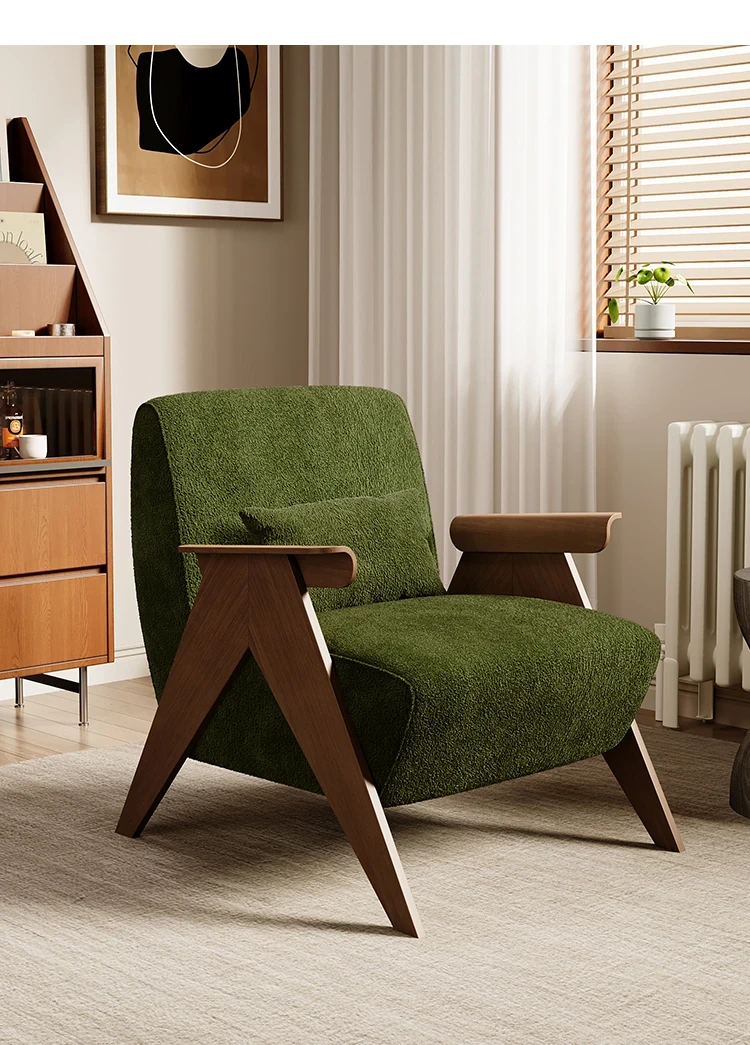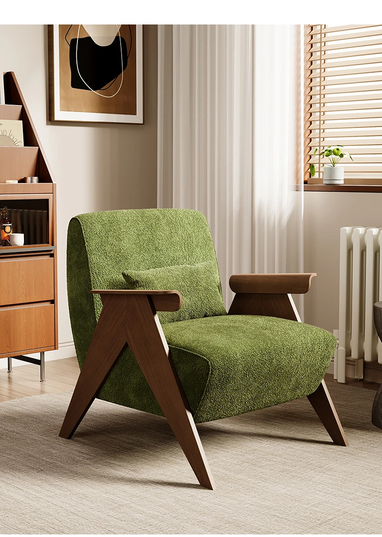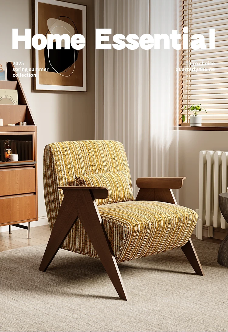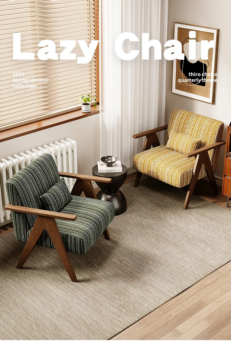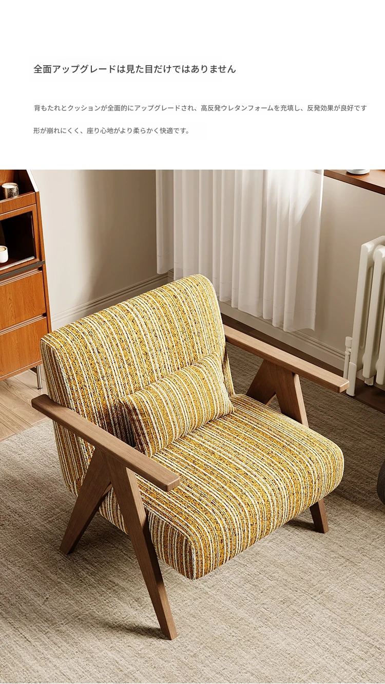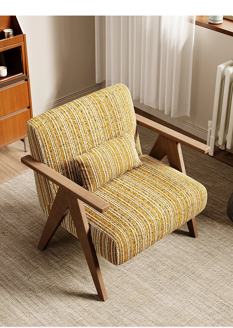デザイナーの一人用ソファチェア - アメリカンヴィンテージスタイルのレトロなデザインで、リビングルーム、バルコニー、寝室に最適!リラックスできる空間を演出する、実木製のオシャレなリゾート宿泊施設にもぴったりなアイテムです。