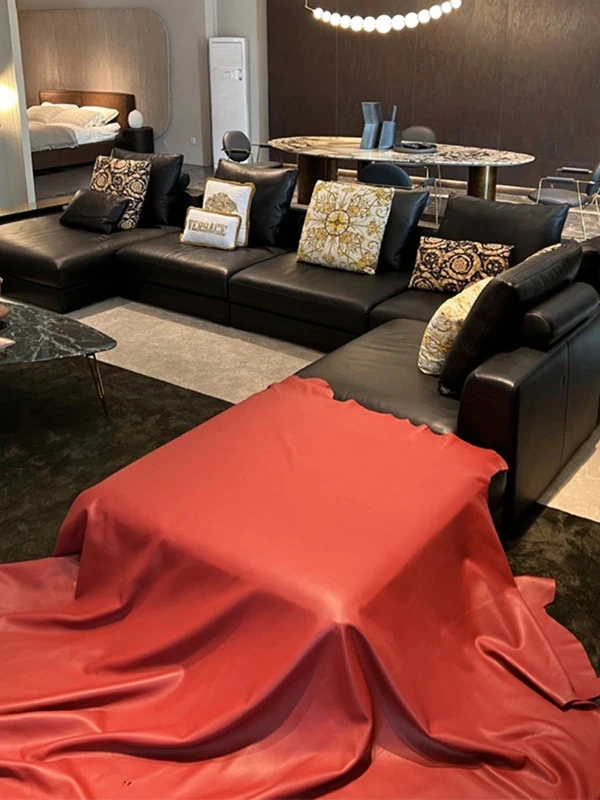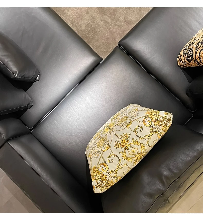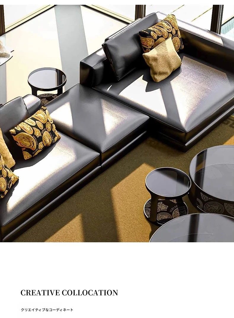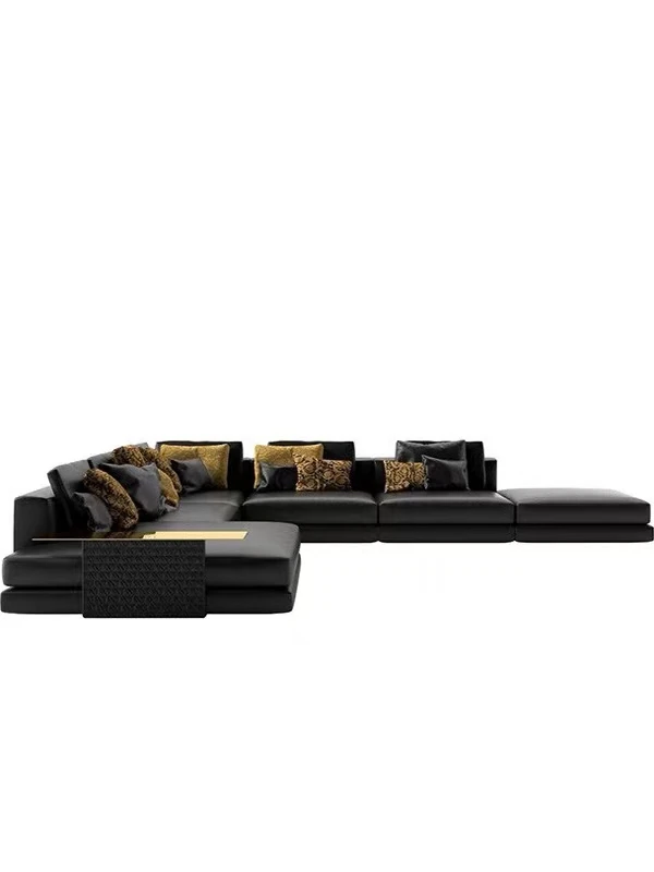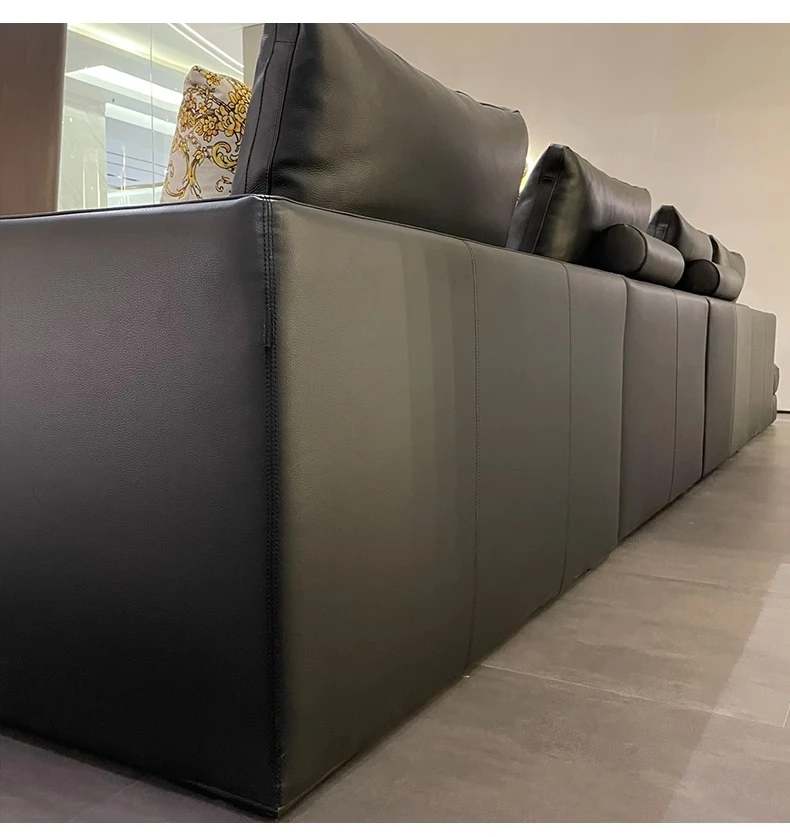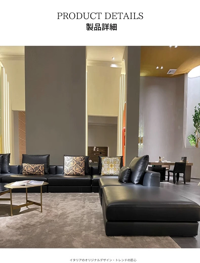 2025年新作!イタリアンラグジュアリー・ブラックレザーソファー。別荘や広々としたリビングに最適なL字型コーナーソファー。コンパクトな小型住宅にもぴったりのスタイリッシュな組み合わせ!