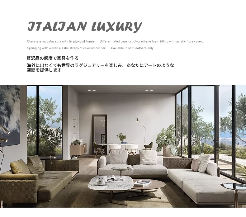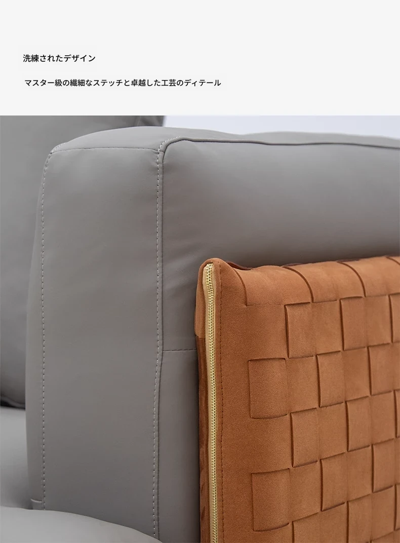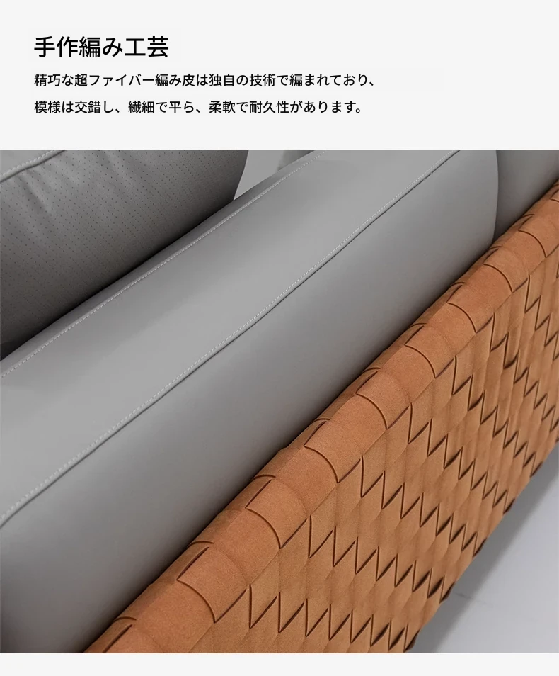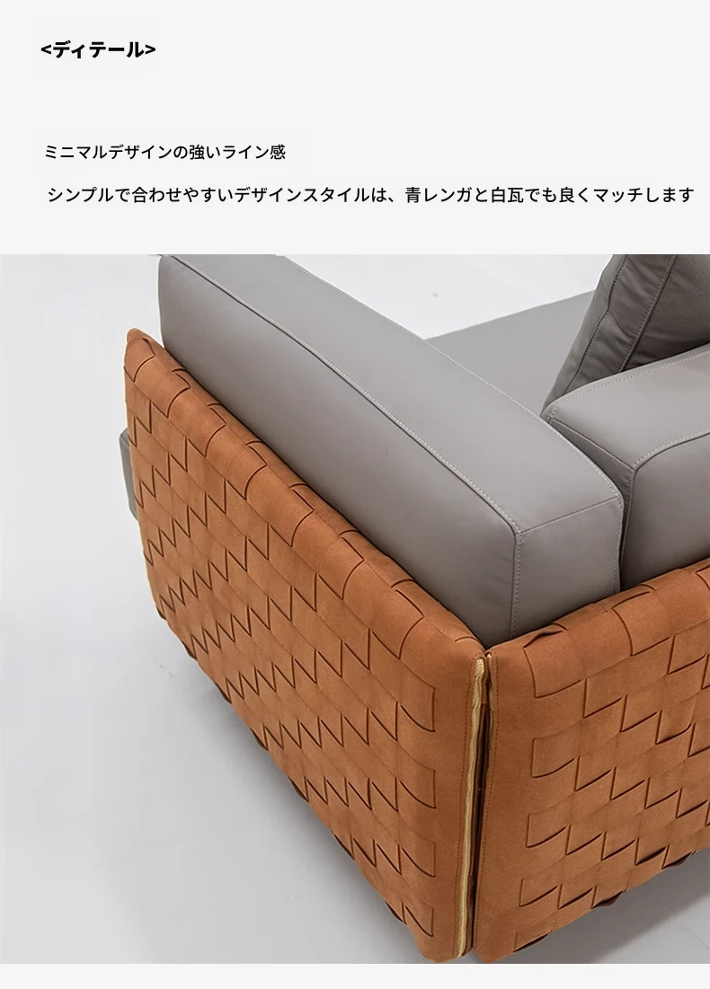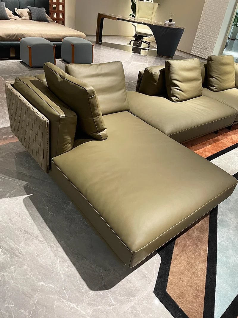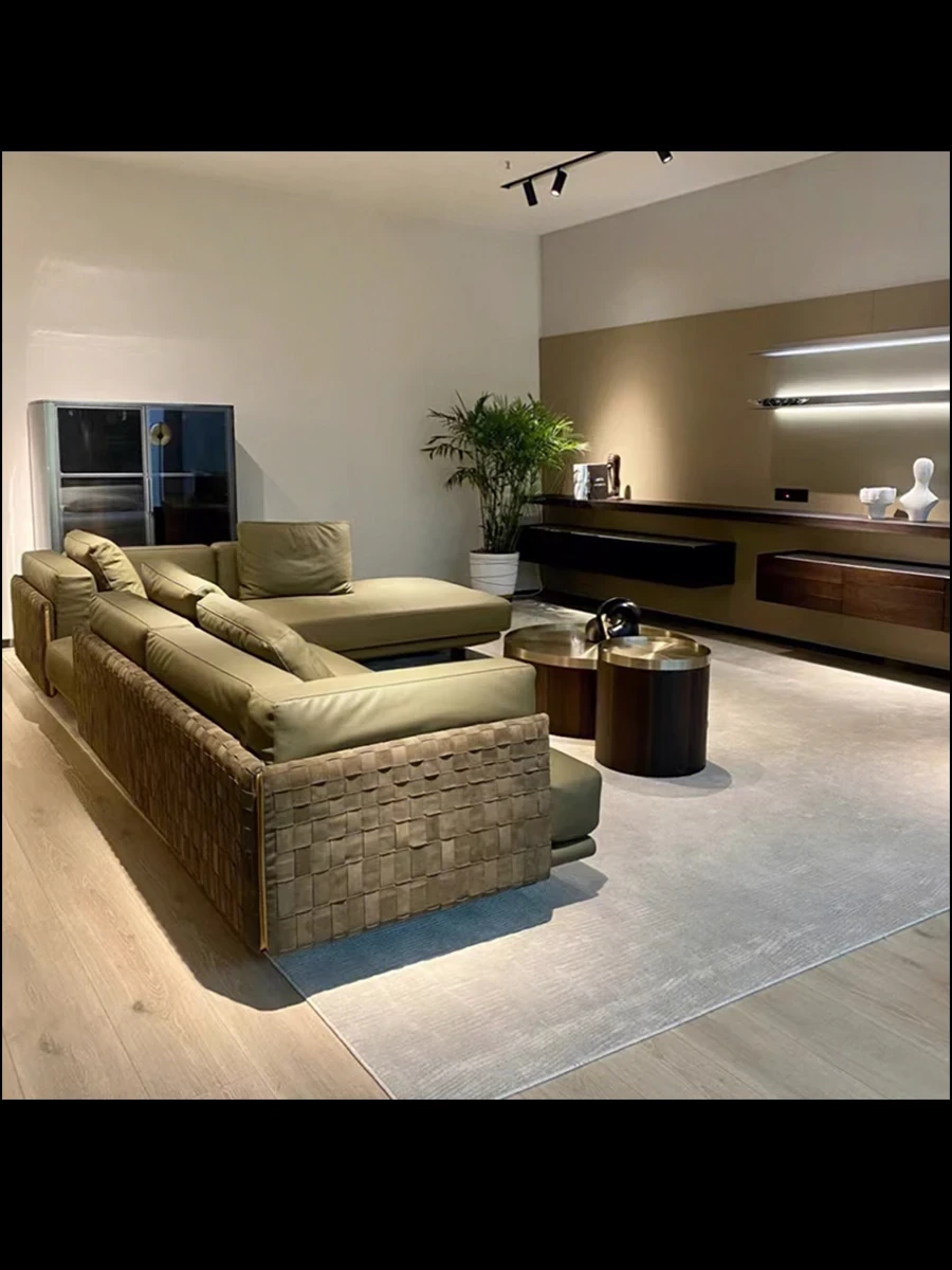 イタリアンミニマリズム真皮ソファ - リビングルーム向け直線型コンビネーション、大平面高級別荘Cestone編み皮ソファで、洗練された空間を演出します。心地よい座り心地とスタイリッシュなデザインが魅力です!