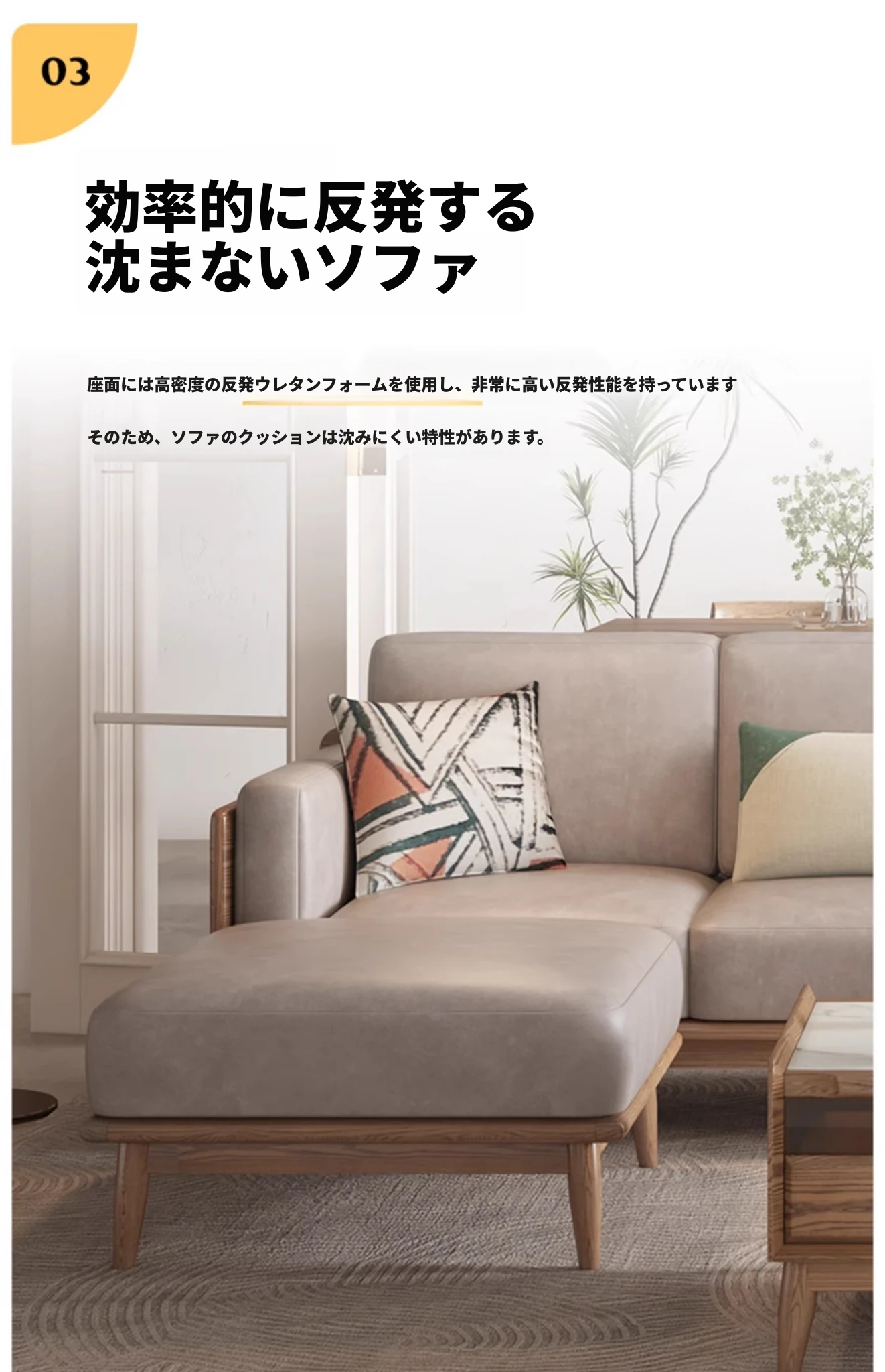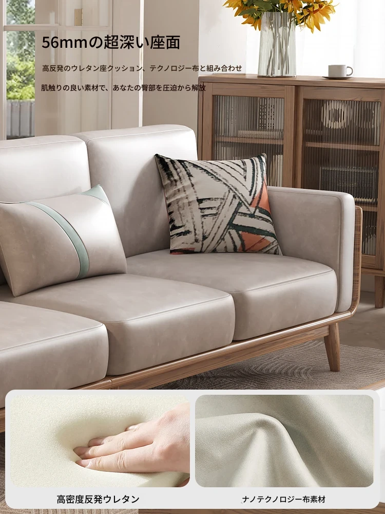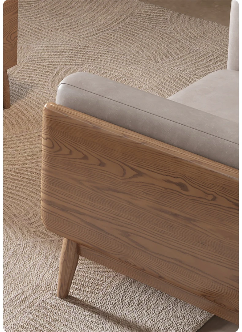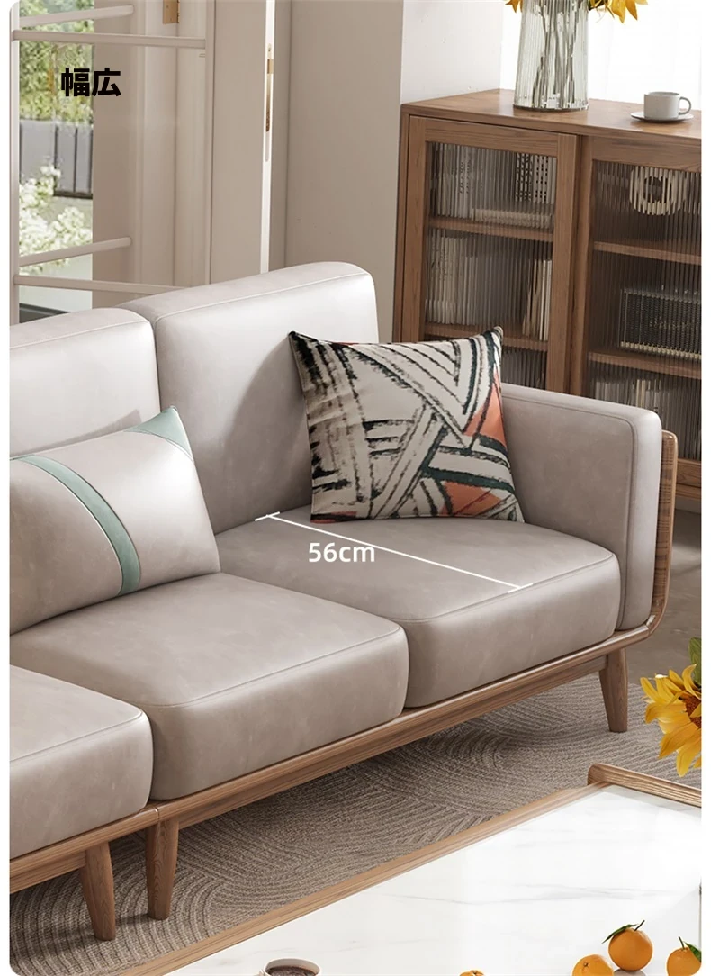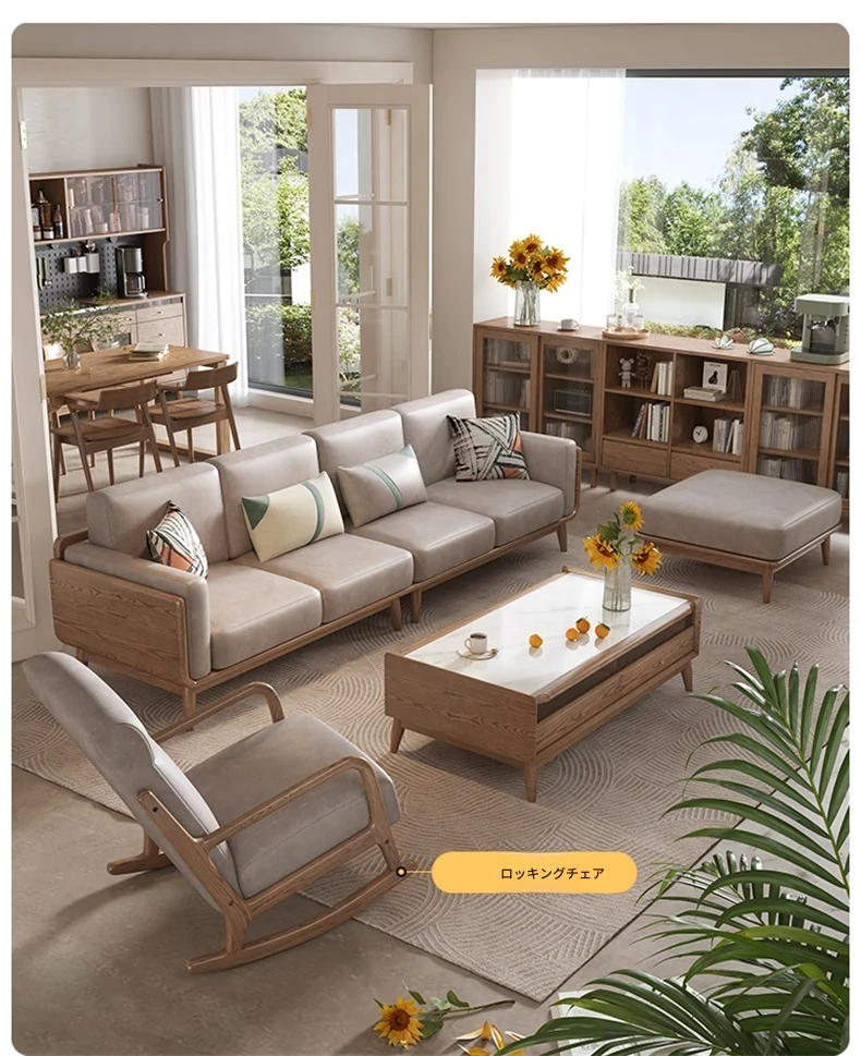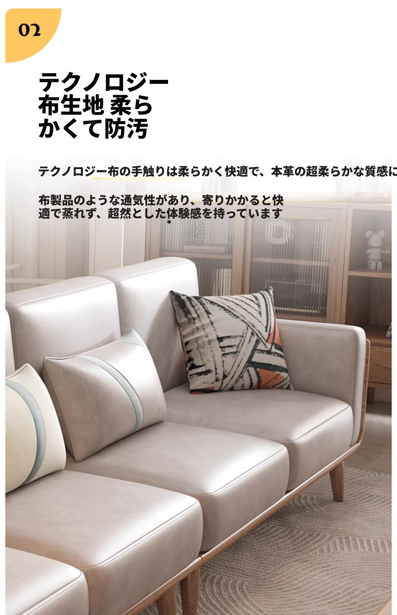 北欧風シンプル全木製ソファセット - 小型リビングに最適なホワイトアッシュ材の3人掛けソファで、自然の温もりを感じる快適な空間を演出します!