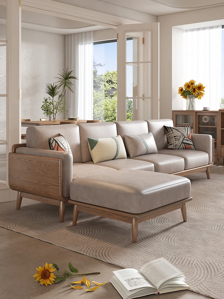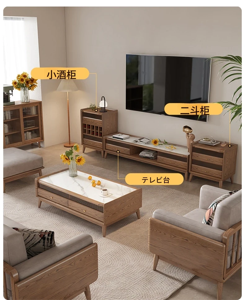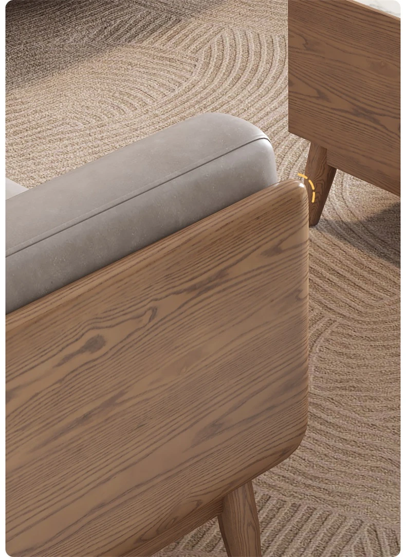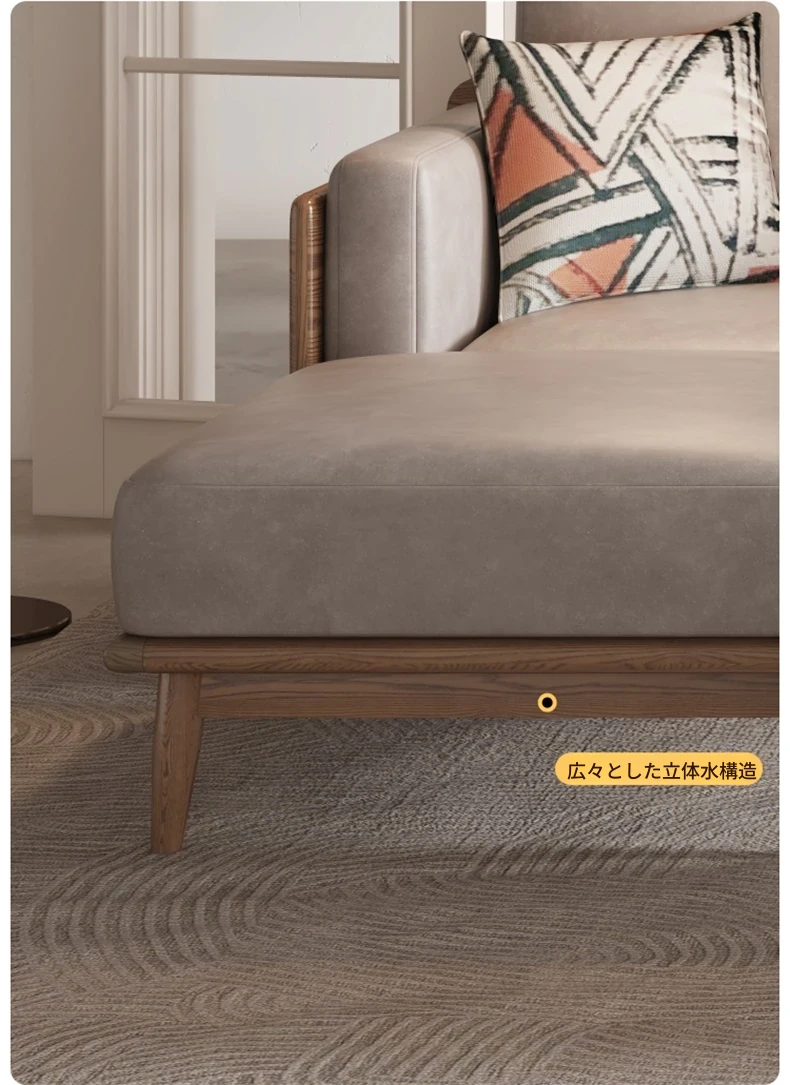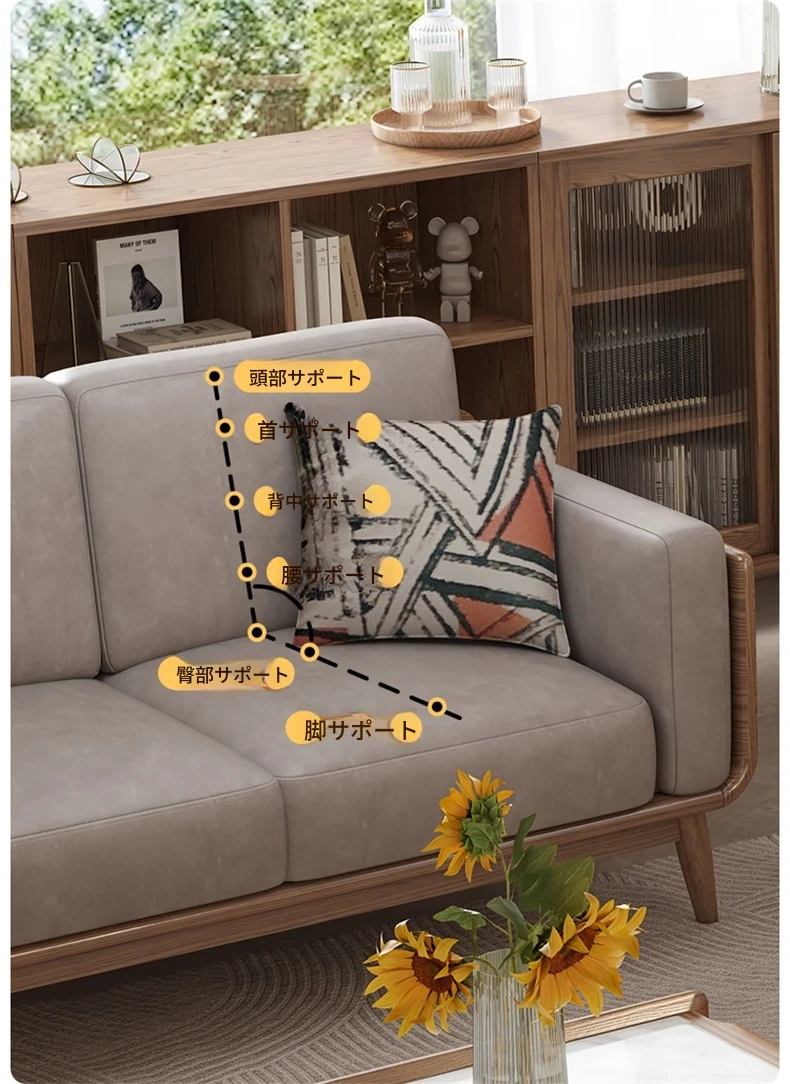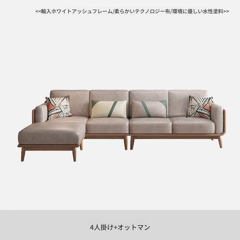 北欧風シンプル全木製ソファセット - 小型リビングに最適なホワイトアッシュ材の3人掛けソファで、自然の温もりを感じる快適な空間を演出します!