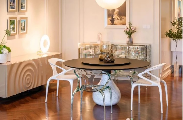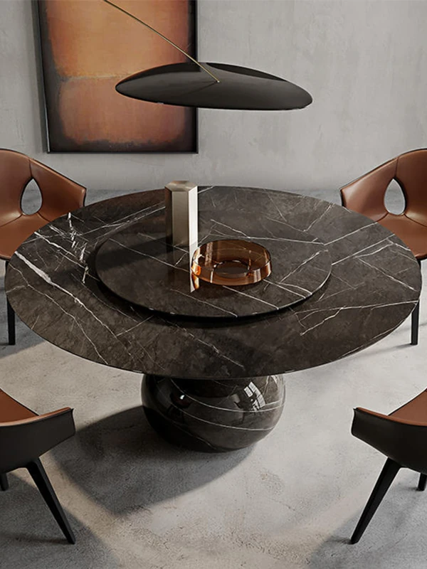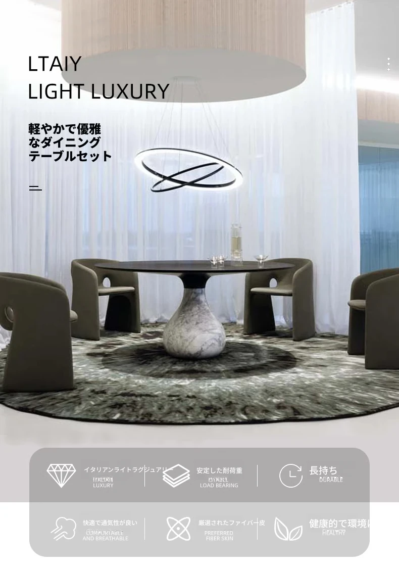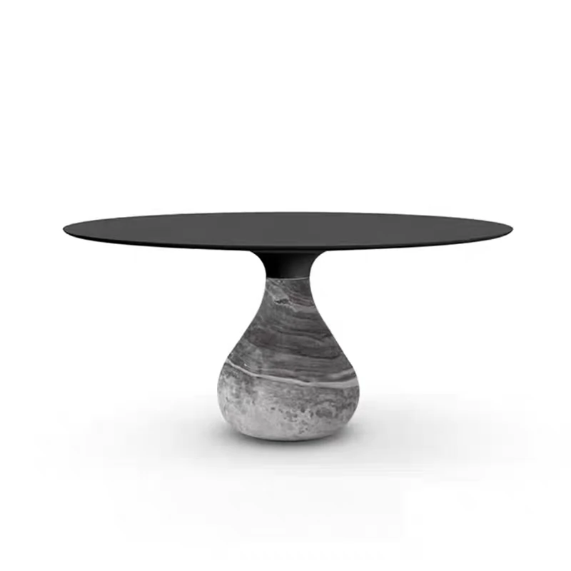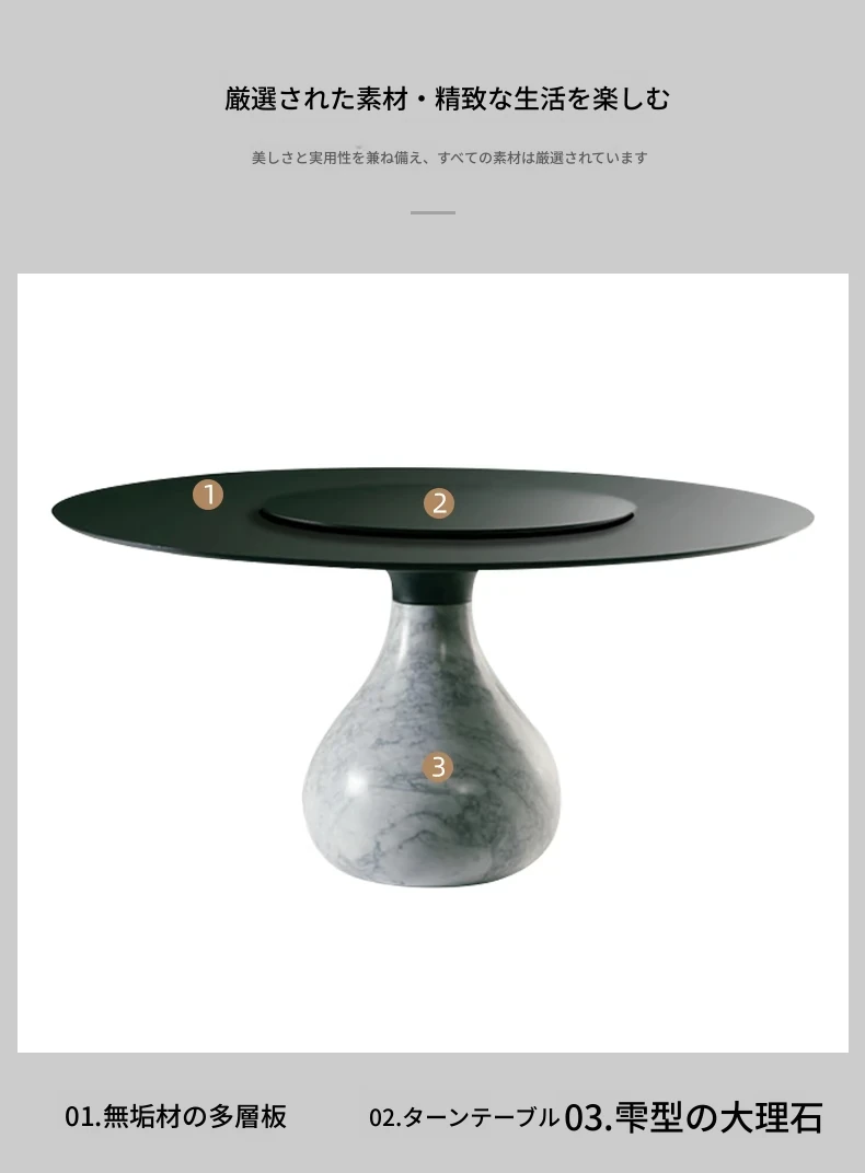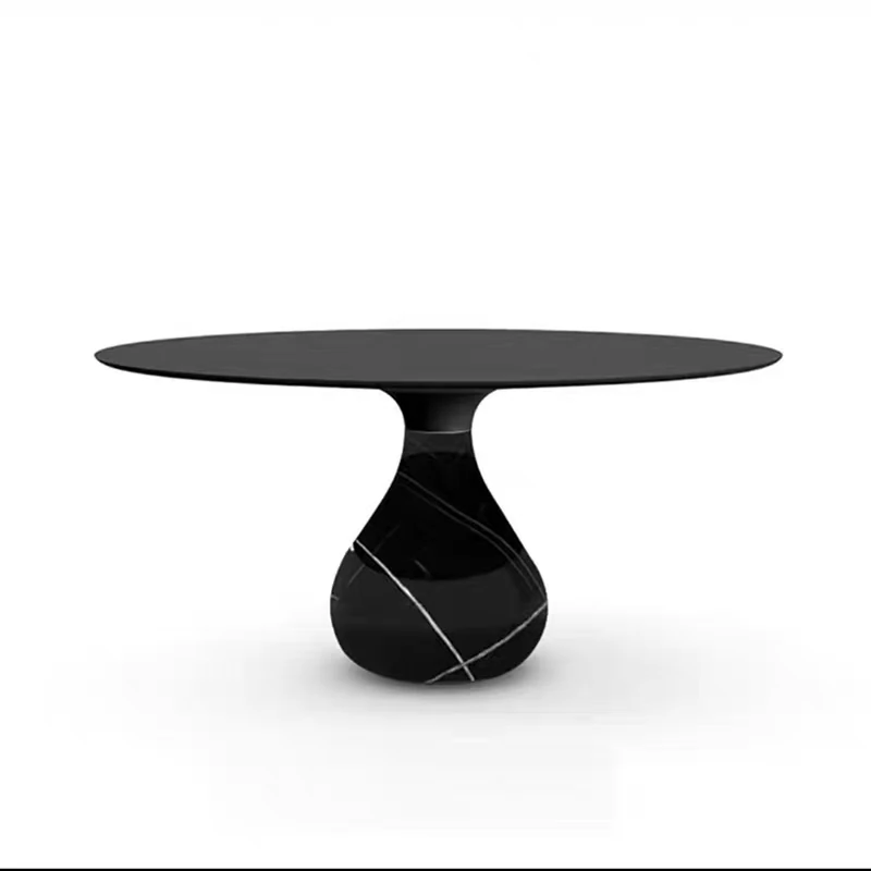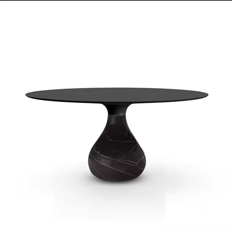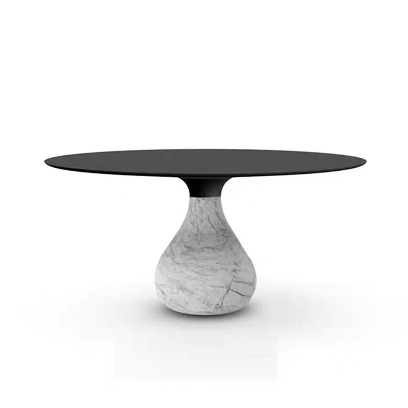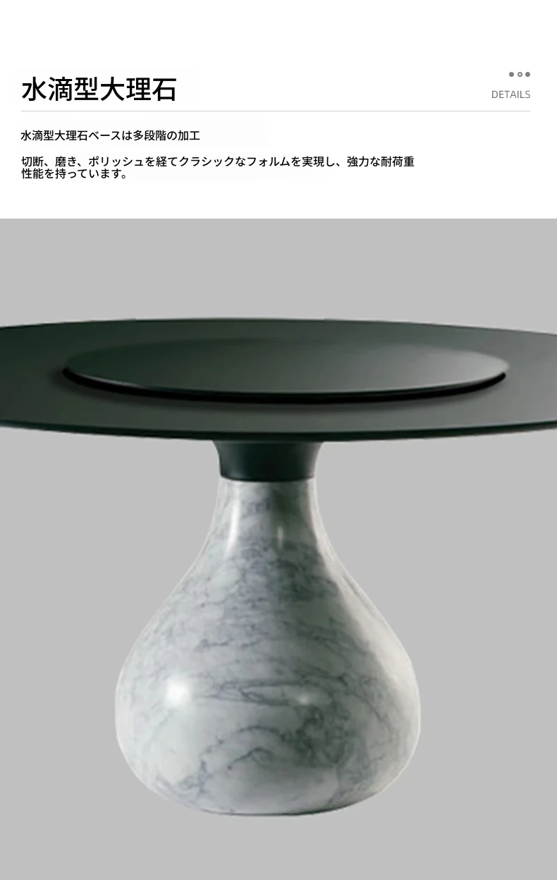 高級天然大理石製のダイニングテーブル用ターンテーブル - ヴィラやレストランに最適なラグジュアリーイタリアンデザイン、6人用の水滴型ラウンドテーブルで特別なひとときを演出!
