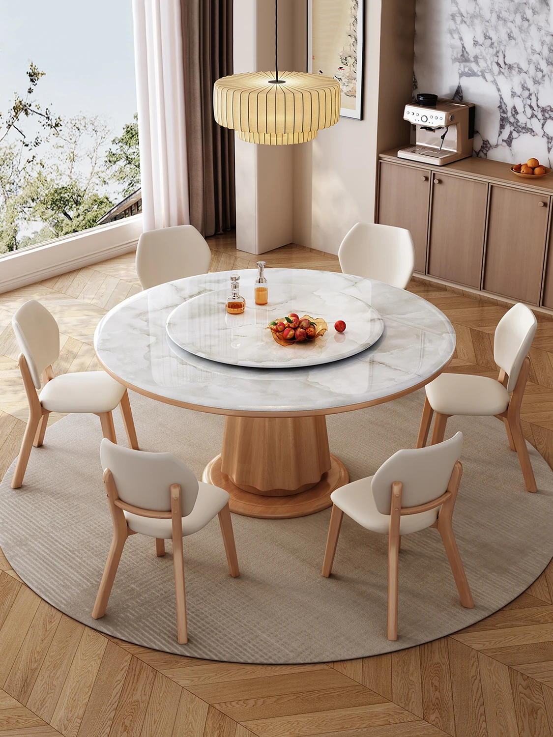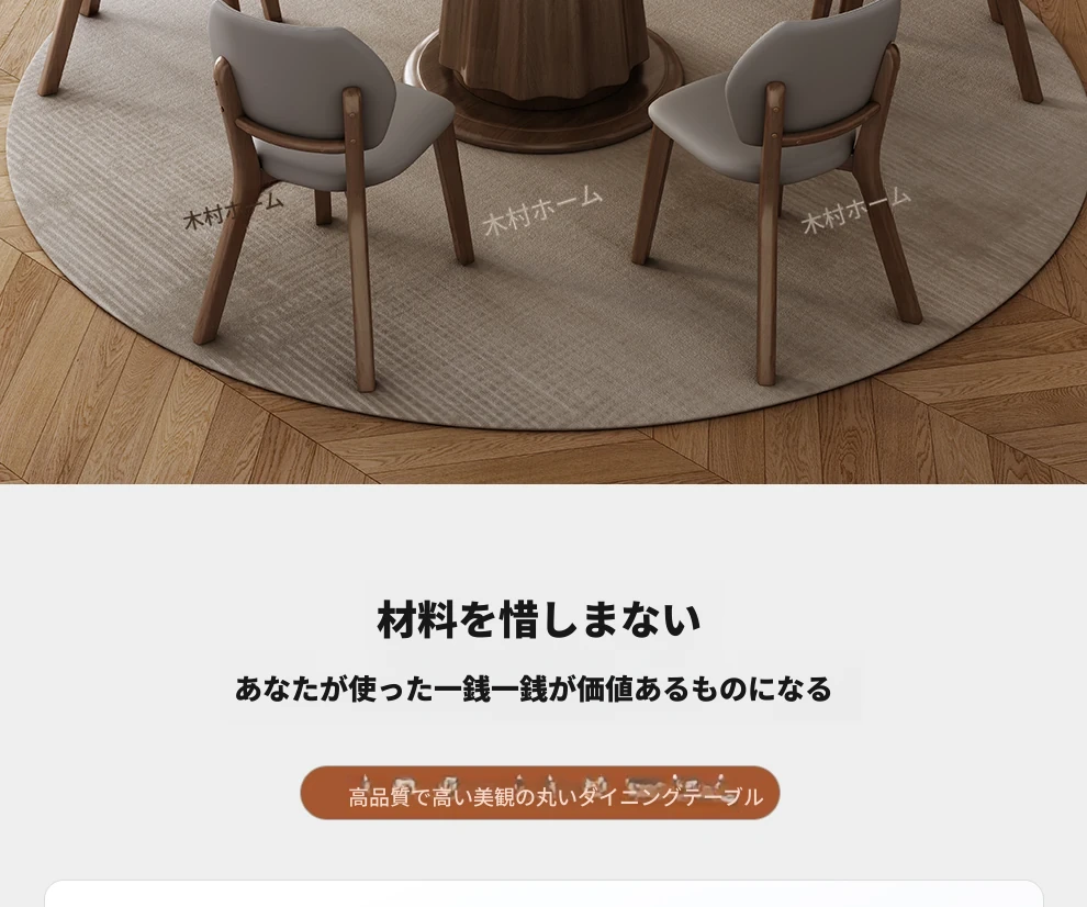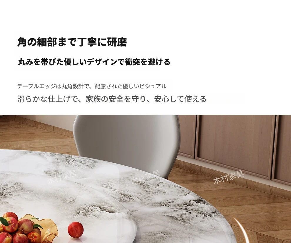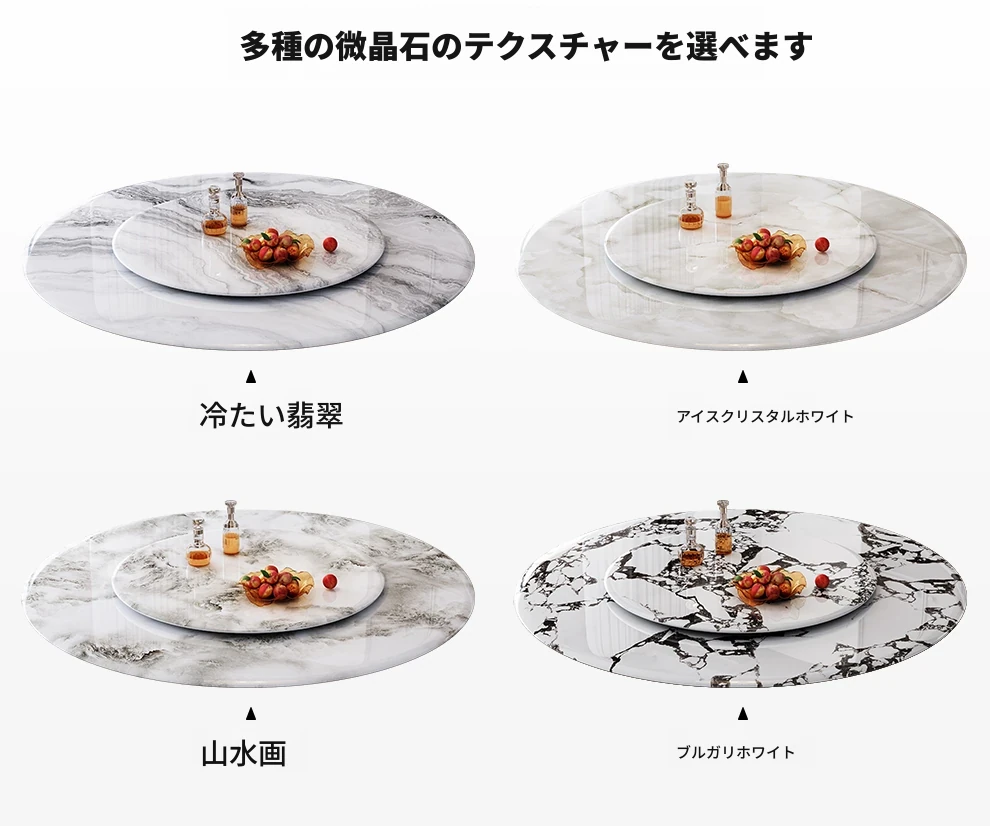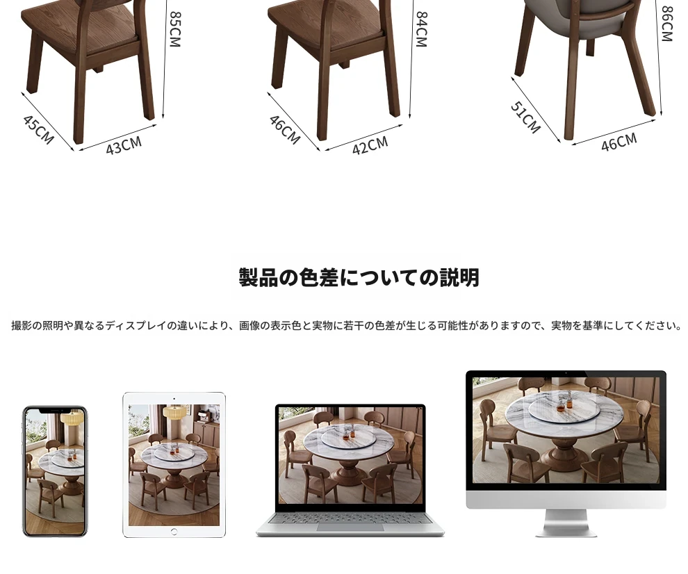 高級感あふれる無垢材と大理石のダイニングテーブル&チェアセット|回転式プレート付きのラウンドテーブルで、贅沢な食事体験を自宅で!優雅なリビングにぴったりのアイテム。