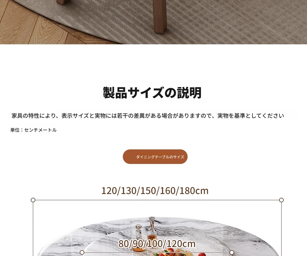 1.2メートル円形ダイニングテーブル【回転盤付き】