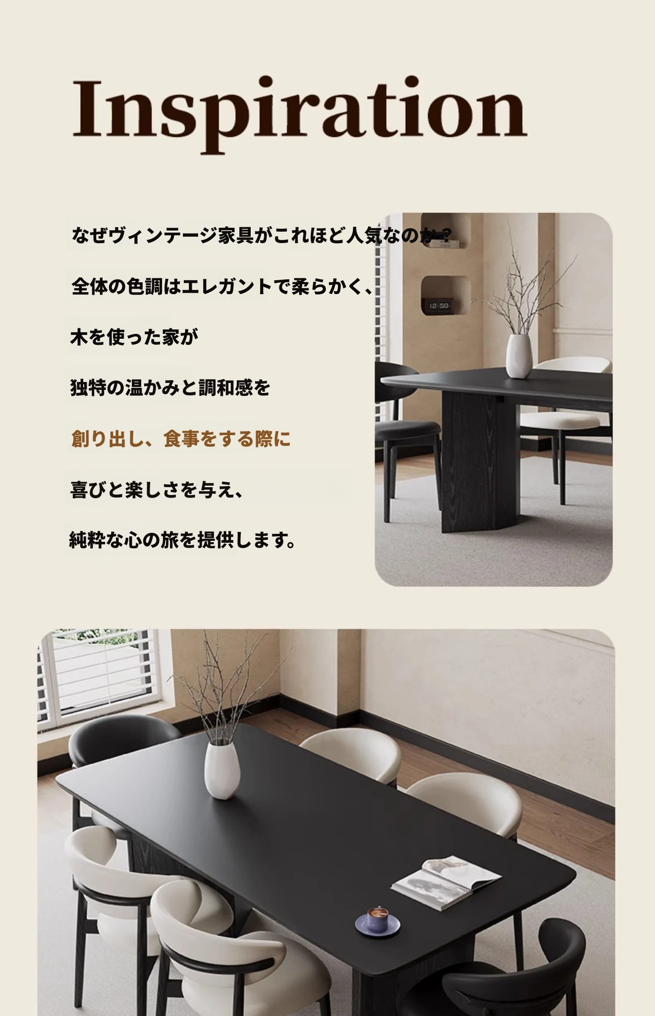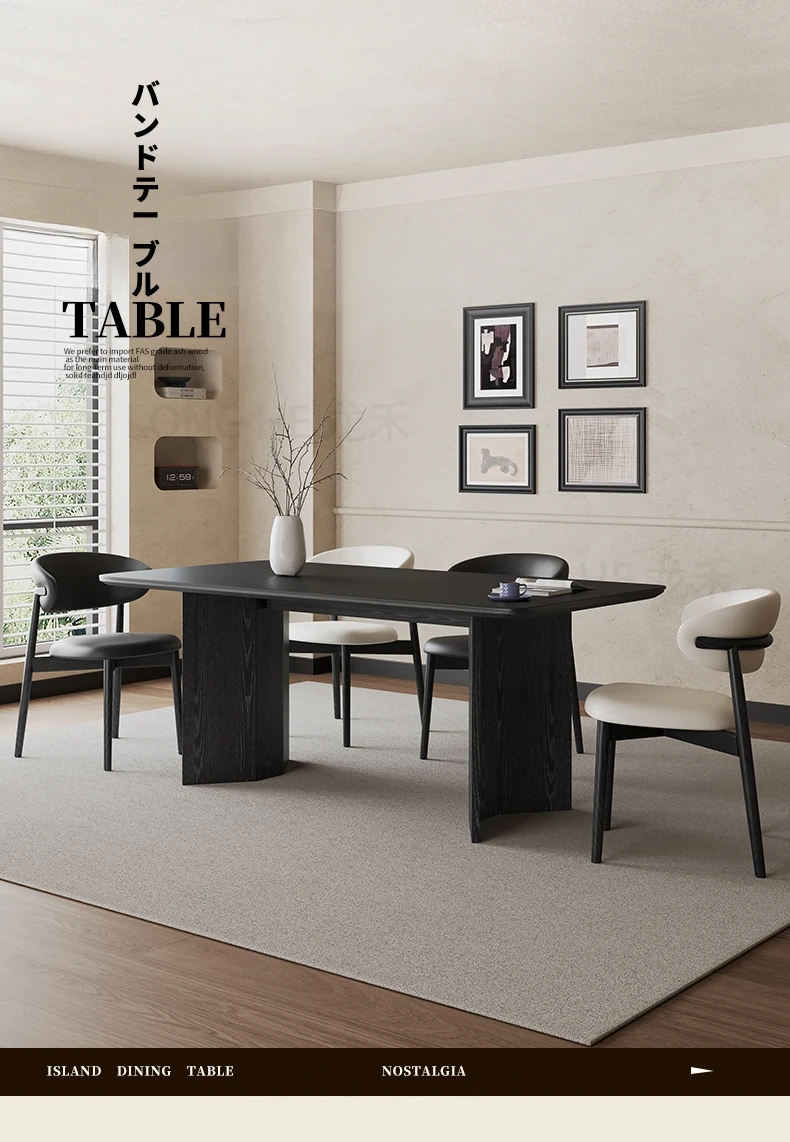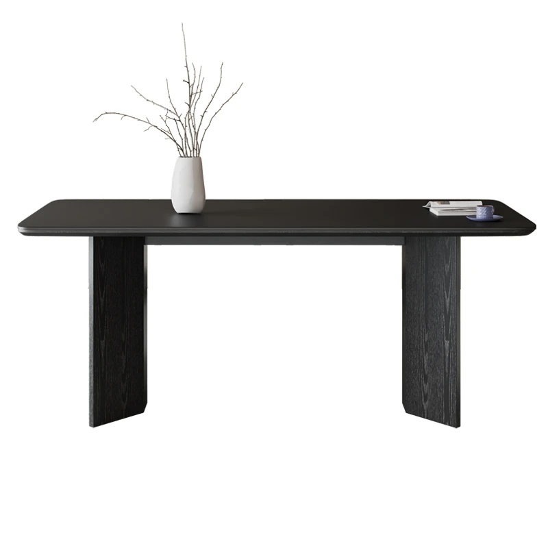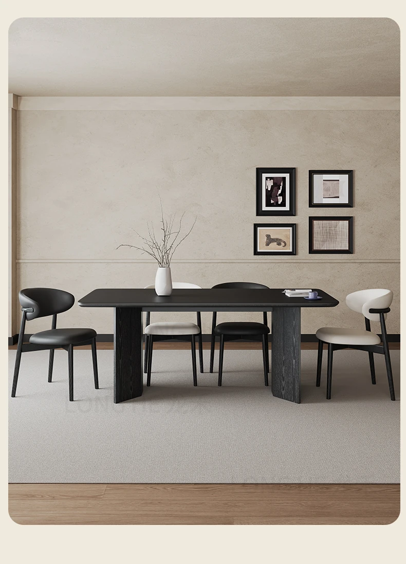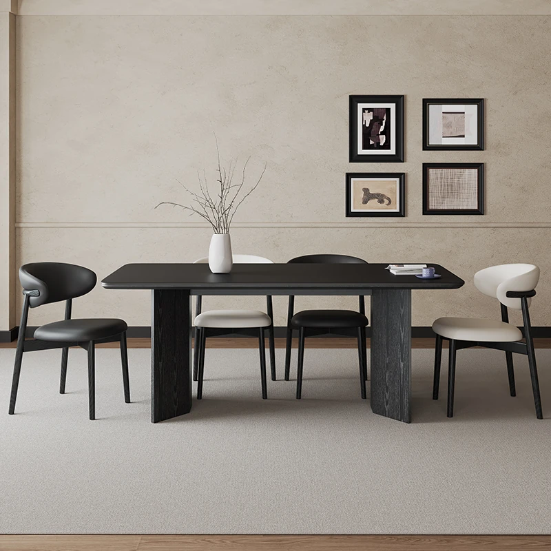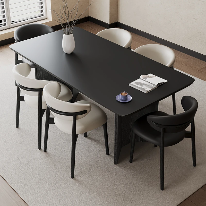 2024年新作!フレンチモダンデザインの長方形ダイニングテーブル - ブラックストーン仕上げ、小型住宅にぴったりのシンプルで洗練されたインテリア。客間にも最適、ネットで話題のスタイリッシュな一品!