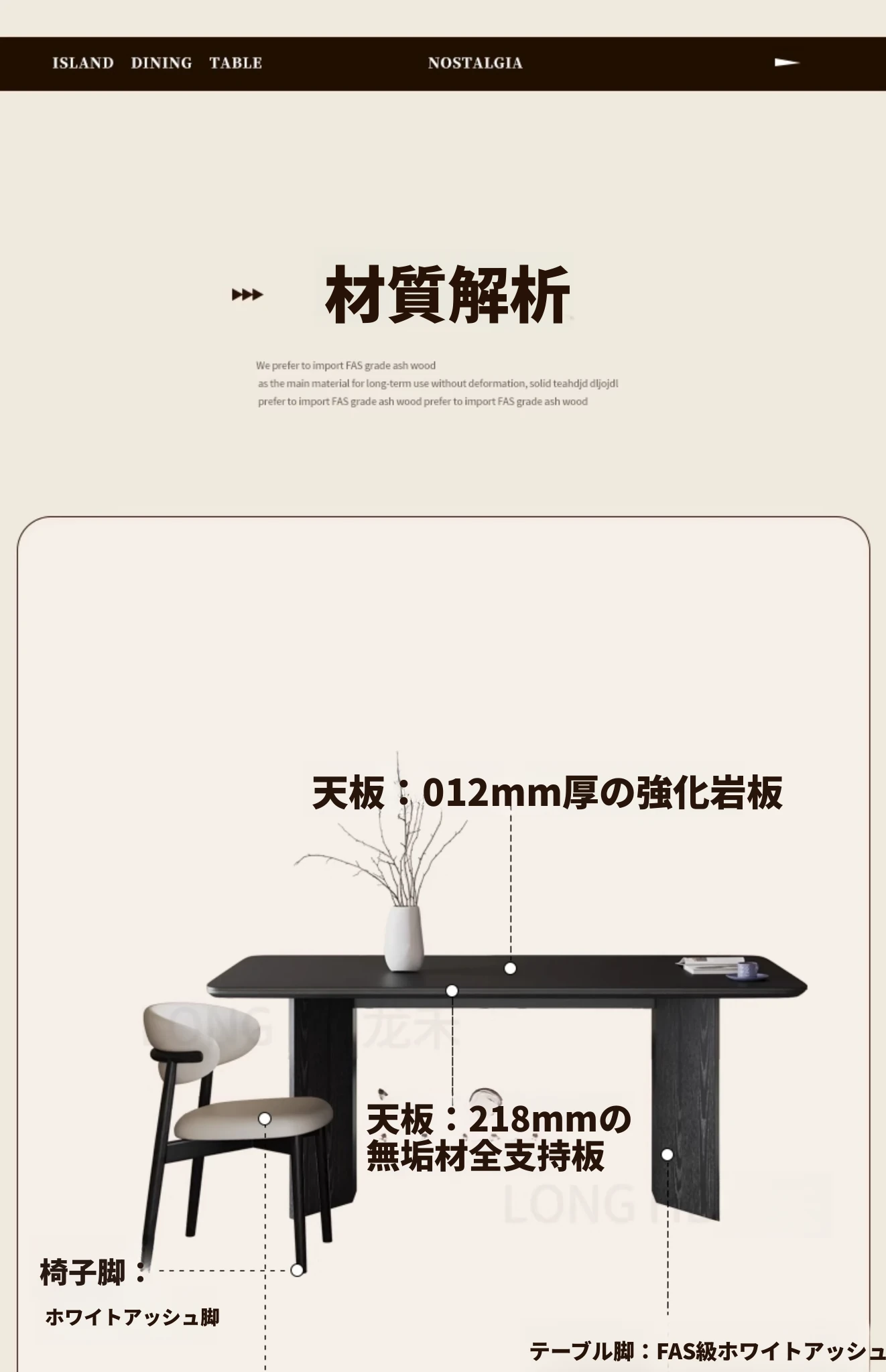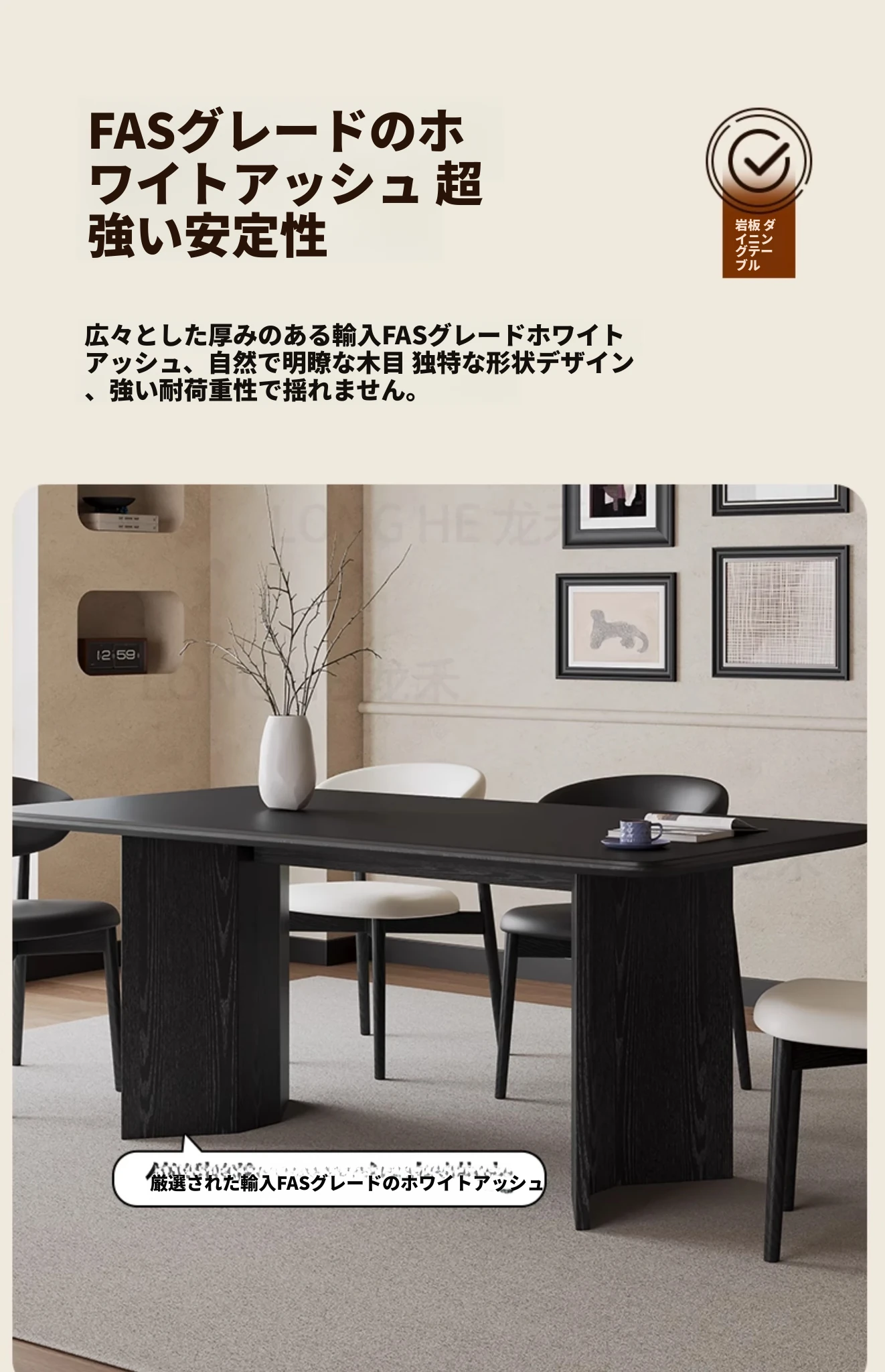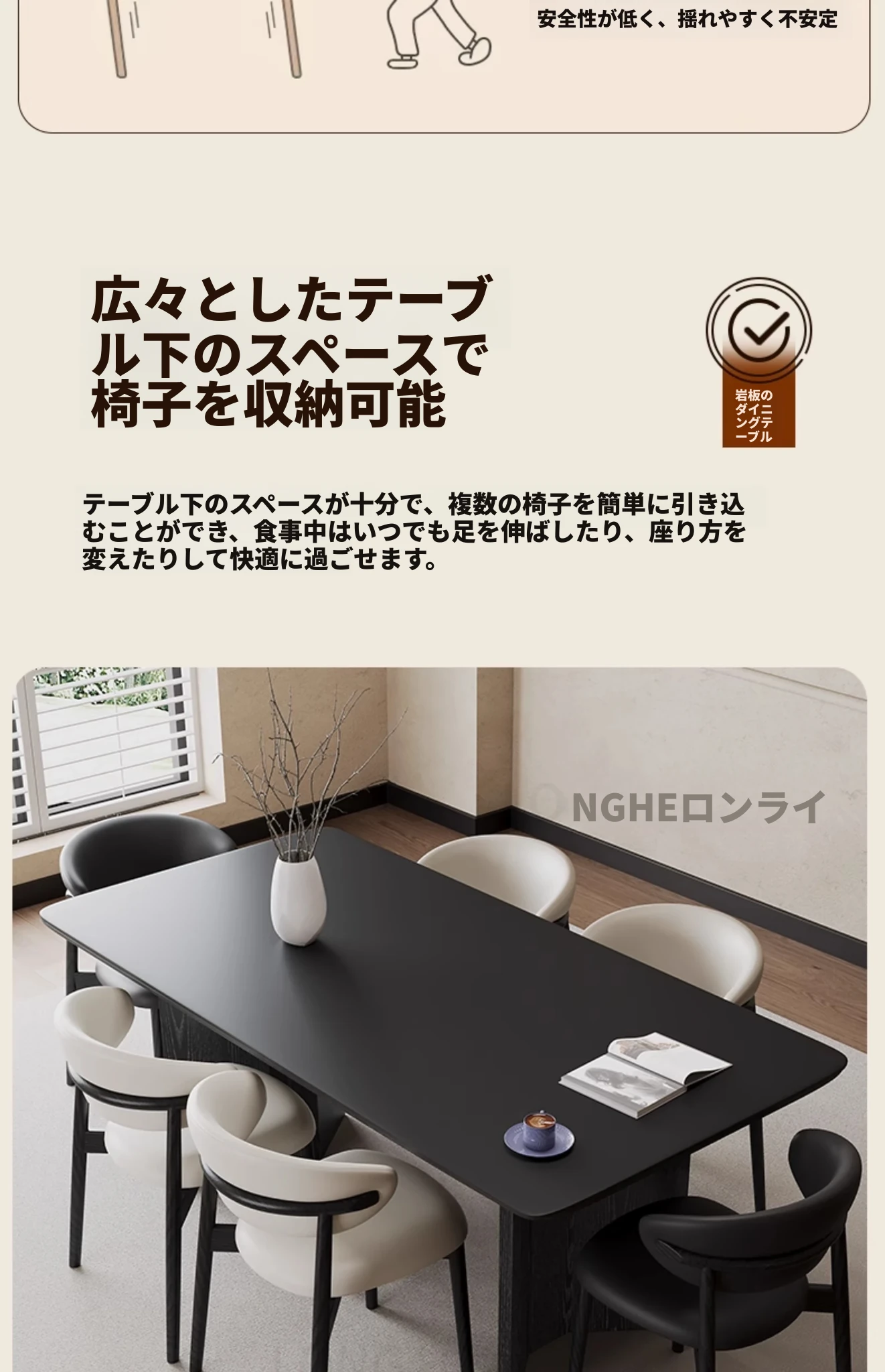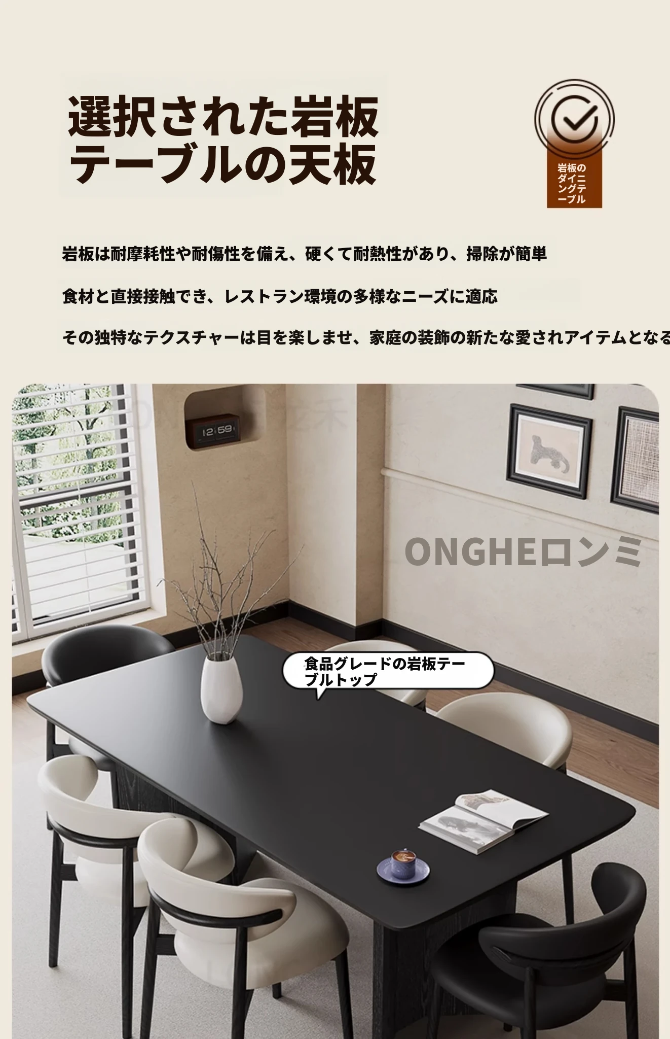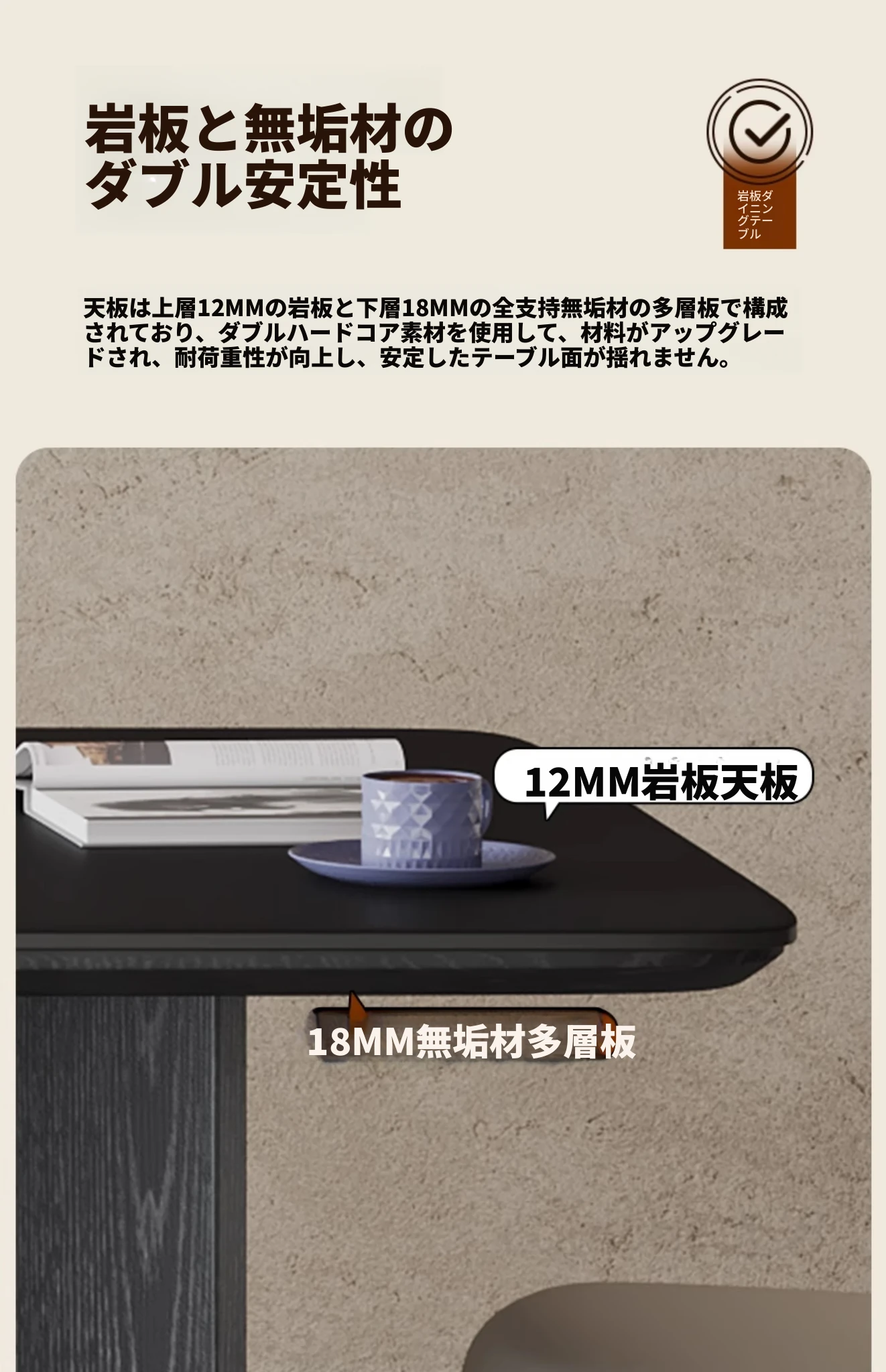 1.8*0.9m岩板ダイニングテーブル(正規品イーノ岩板)