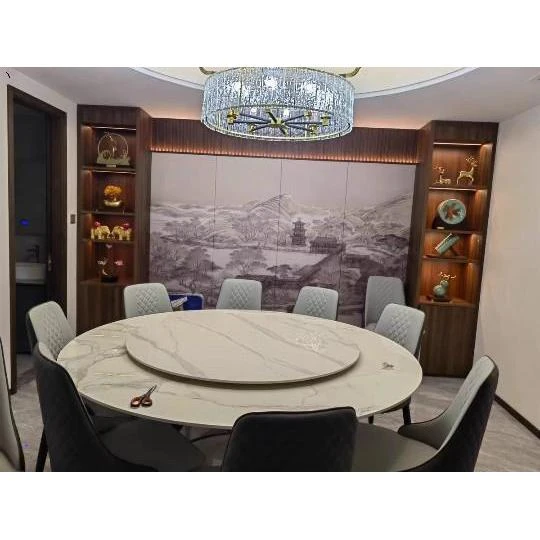 モダンな軽奢スタイルの1.8m円形ダイニングテーブル、電動回転機能付き!10人用の広々としたデザインで、別荘や家での特別なひとときを演出します。高級感あふれる岩板仕上げで、食事の時間をさらに特別に!