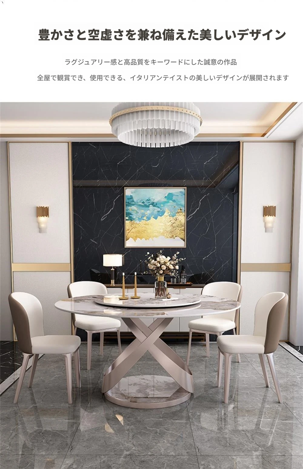1.35メートル岩板ダイニングテーブル【回転盤付き】+8椅子