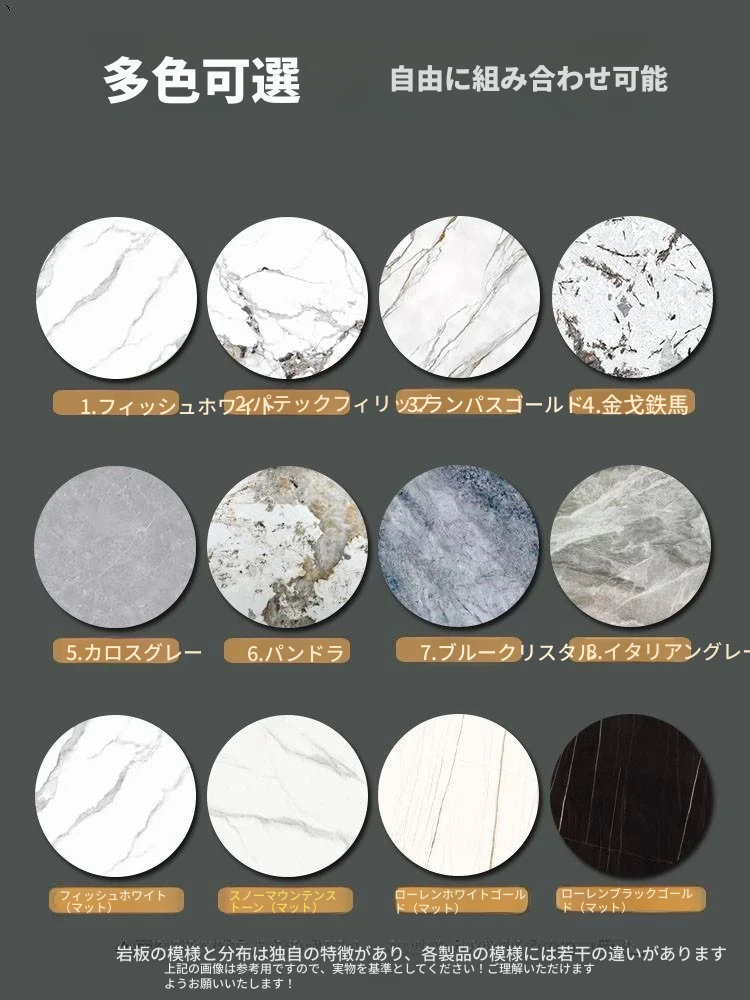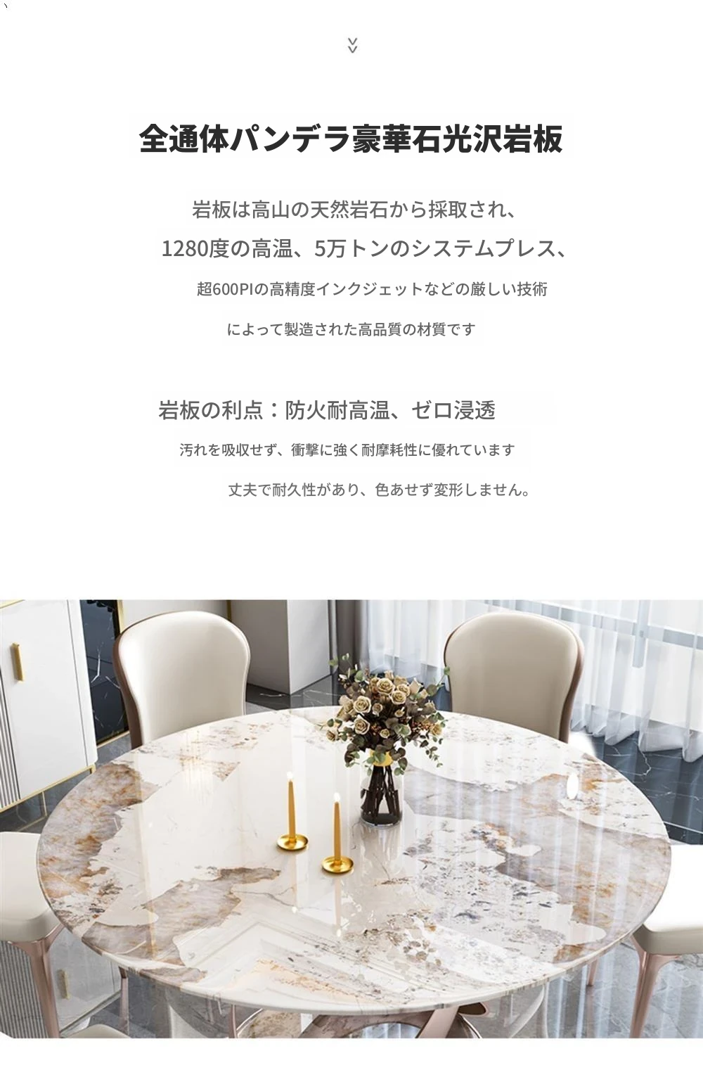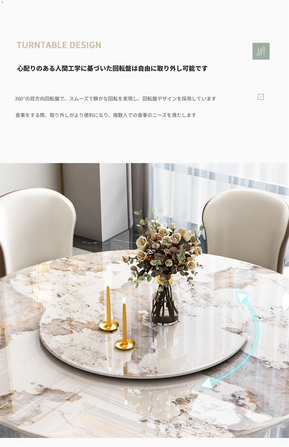 1.3メートル岩板ダイニングテーブル【回転盤付き】+6椅子