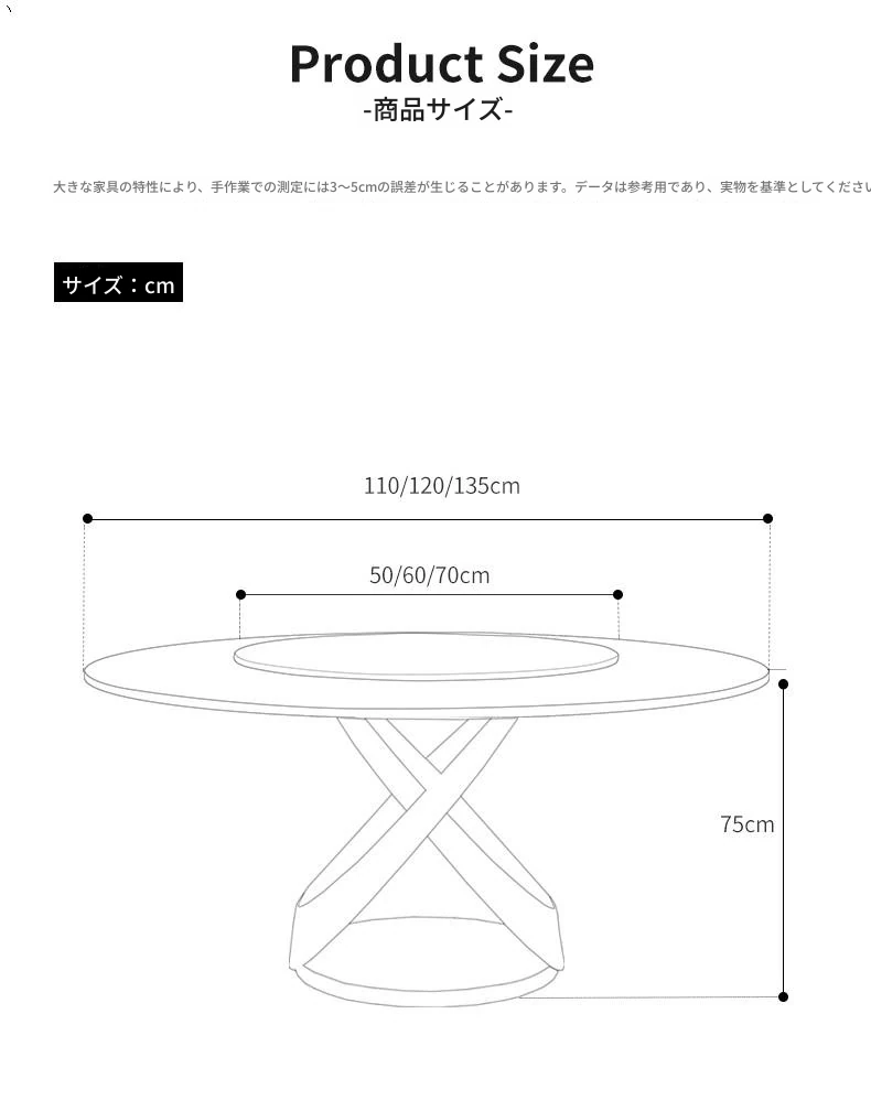1.35メートル岩板単テーブル【80CM回転盤付き】