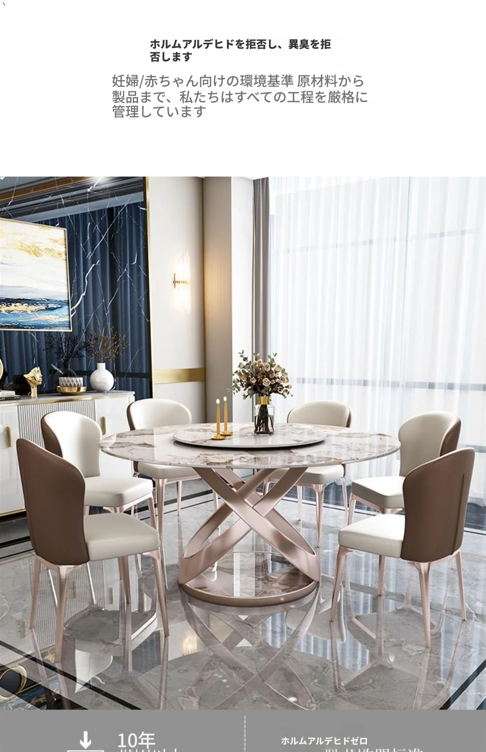 1.2メートル岩板ダイニングテーブル【回転盤付き】+6椅子