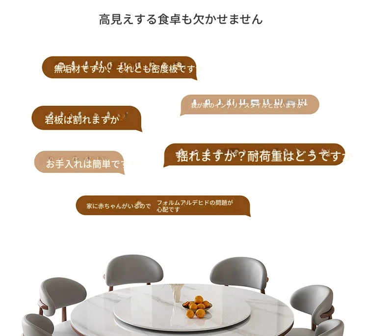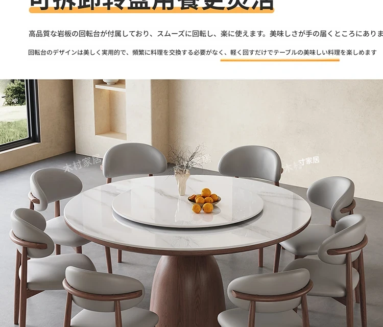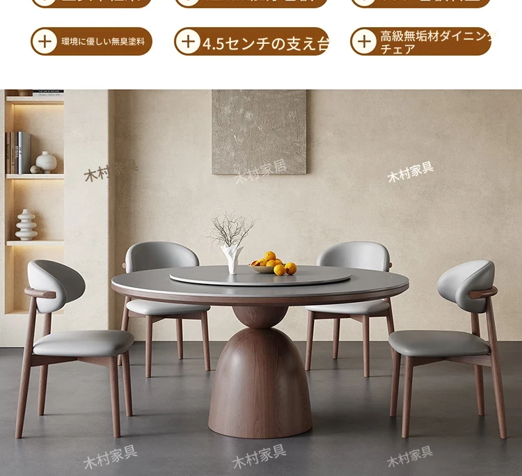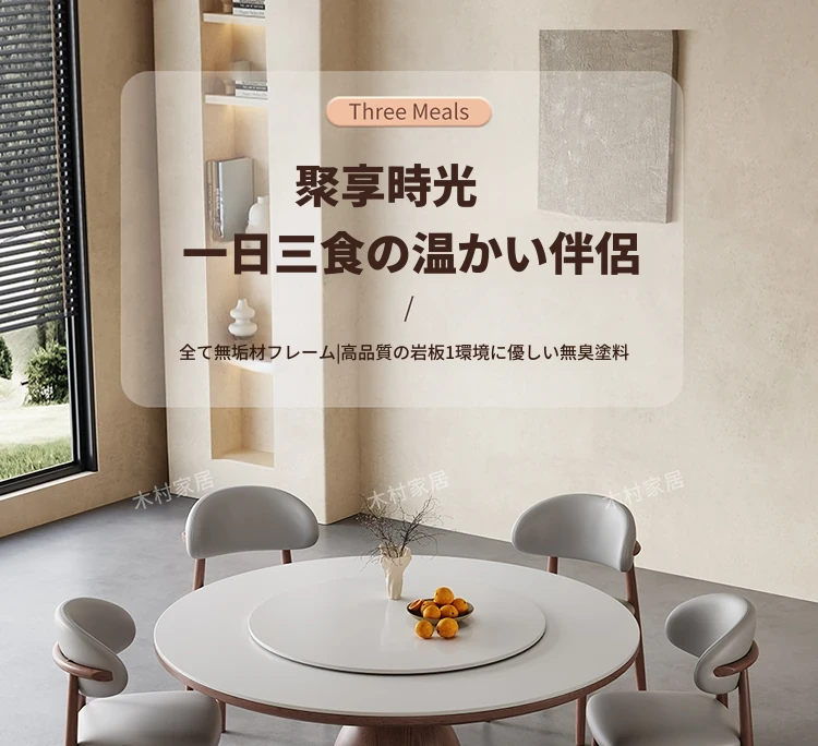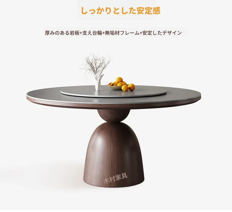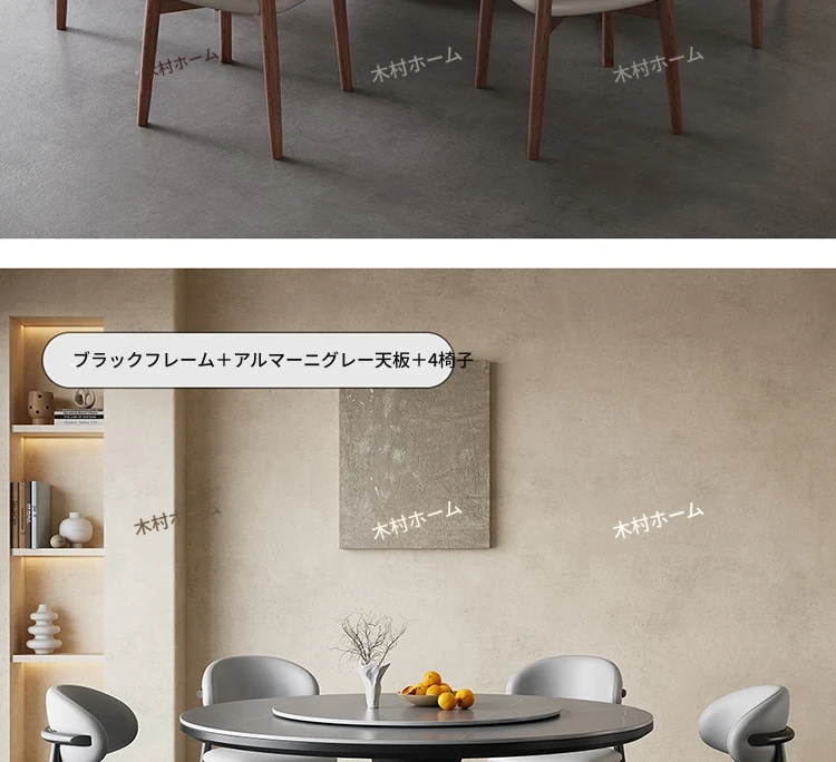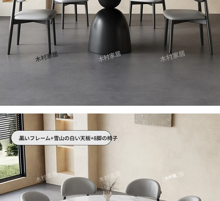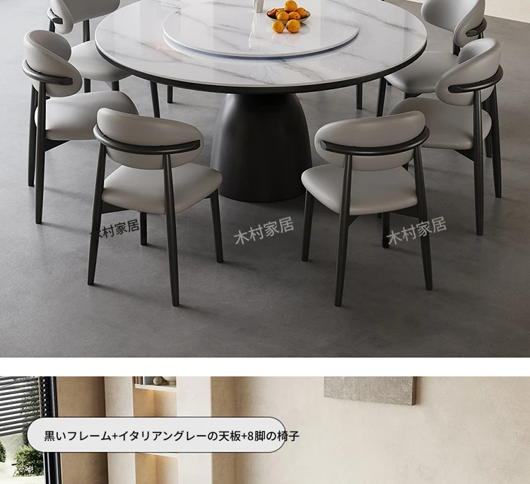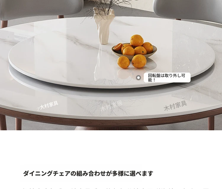 高級感溢れるモダンな円形岩板ダイニングテーブル&チェアセット - 小さなお部屋にもぴったり!シンプルで洗練されたデザインが、食卓を華やかに演出します。