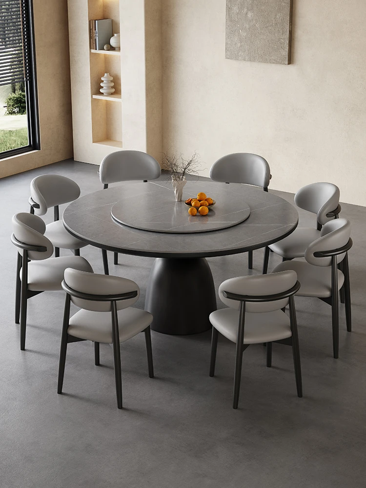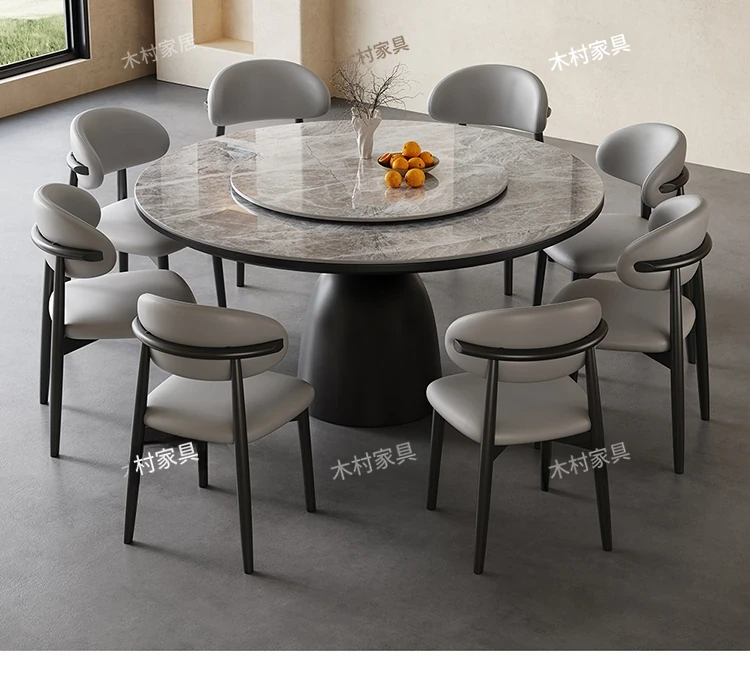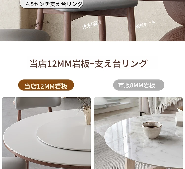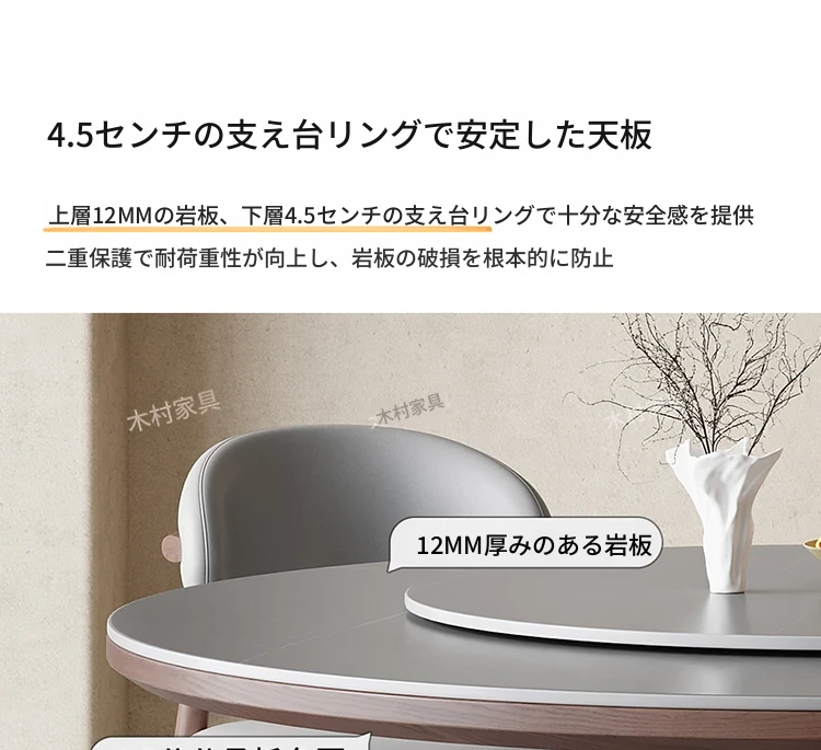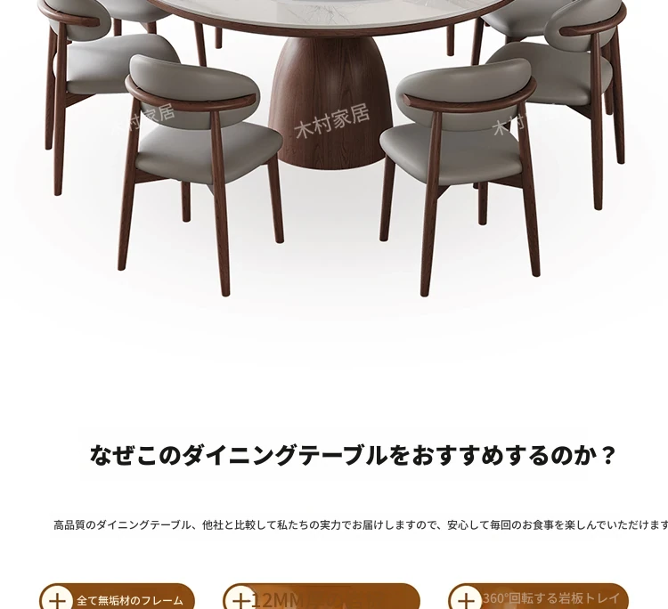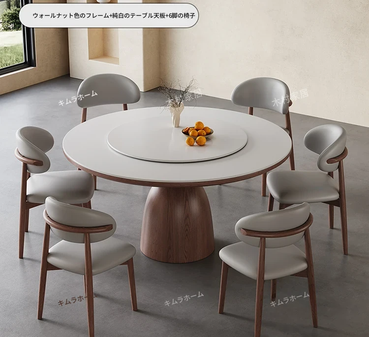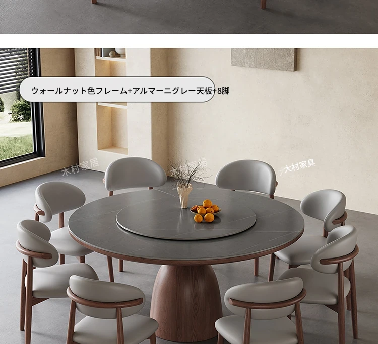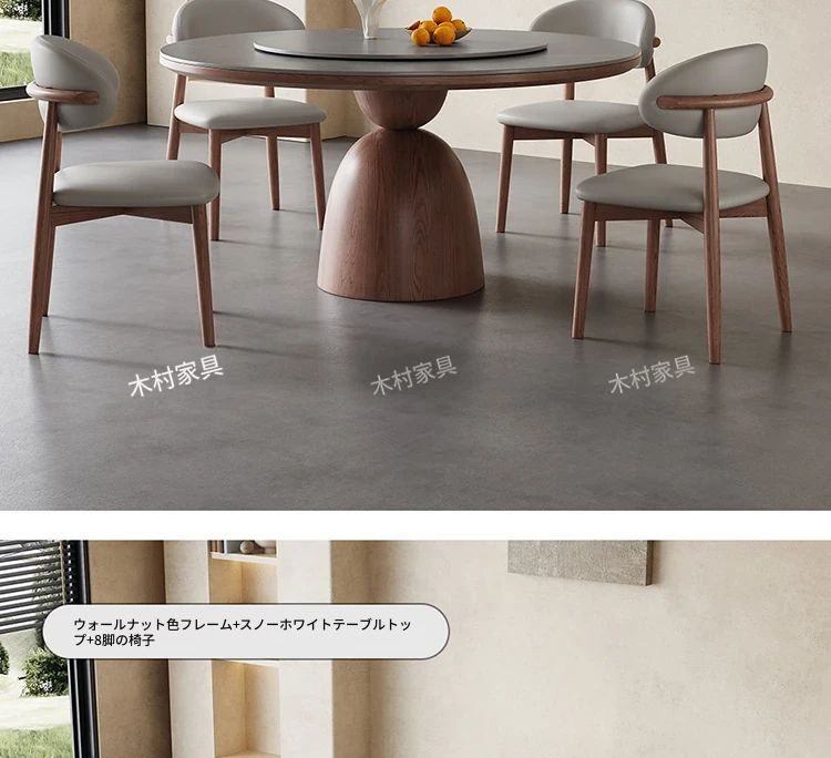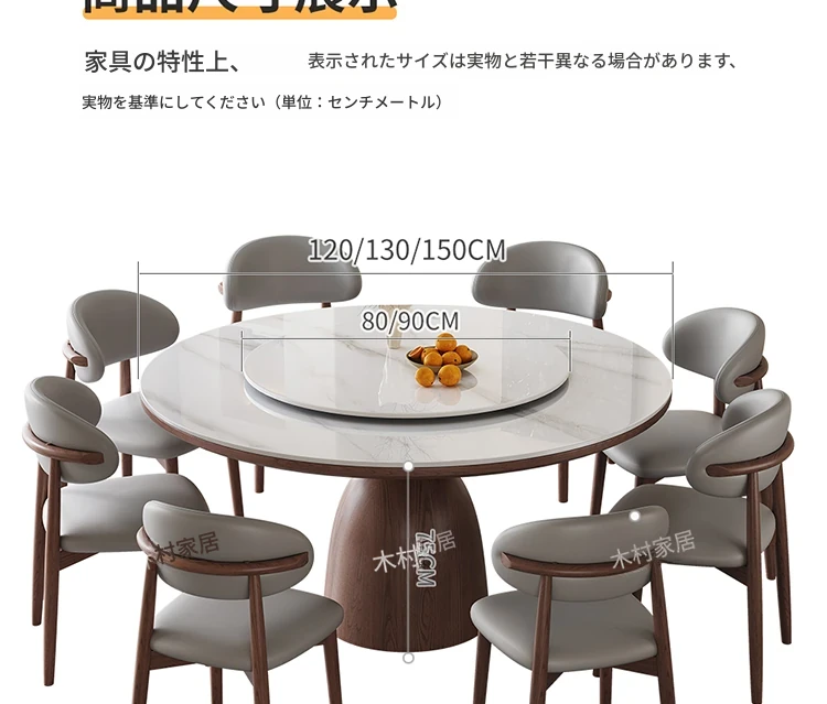 高級感溢れるモダンな円形岩板ダイニングテーブル&チェアセット - 小さなお部屋にもぴったり!シンプルで洗練されたデザインが、食卓を華やかに演出します。