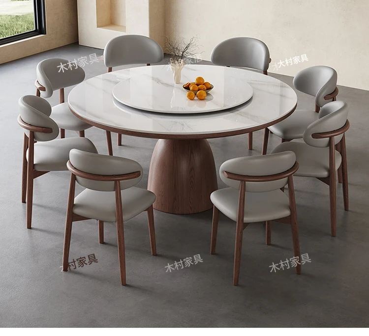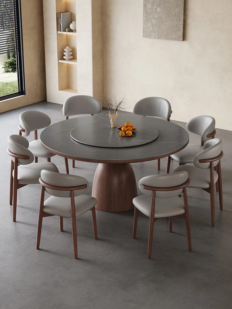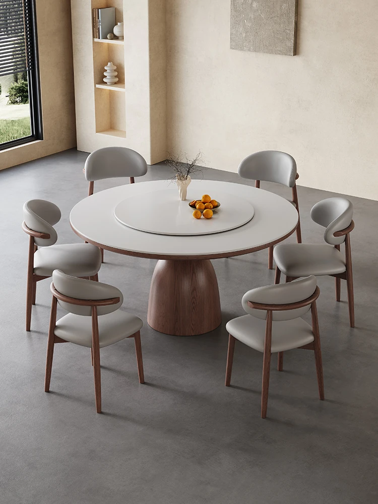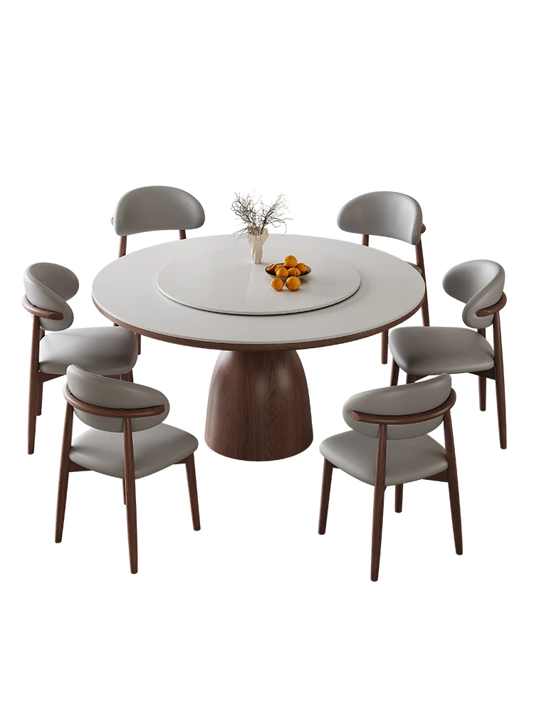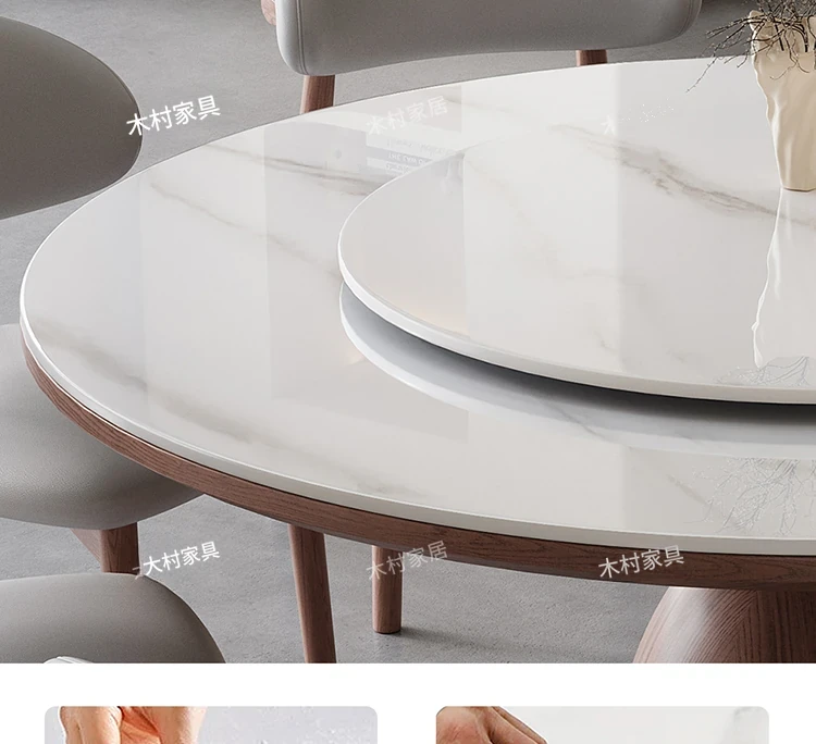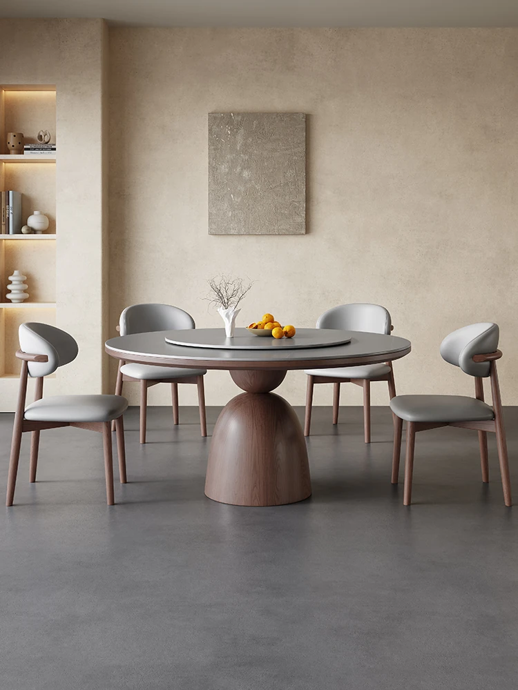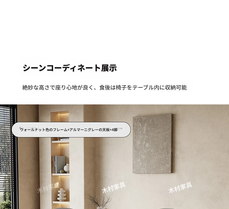 高級感溢れるモダンな円形岩板ダイニングテーブル&チェアセット - 小さなお部屋にもぴったり!シンプルで洗練されたデザインが、食卓を華やかに演出します。