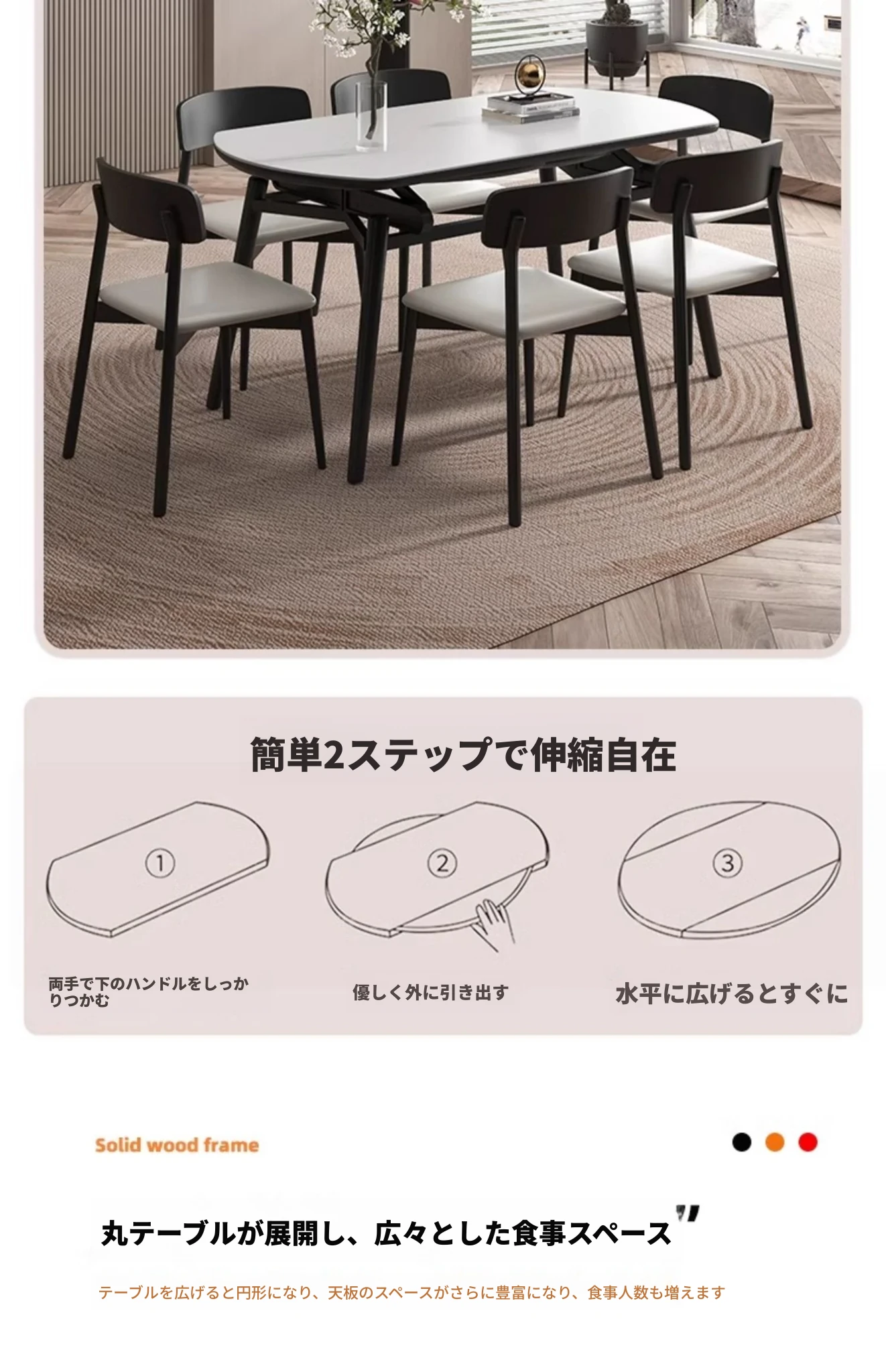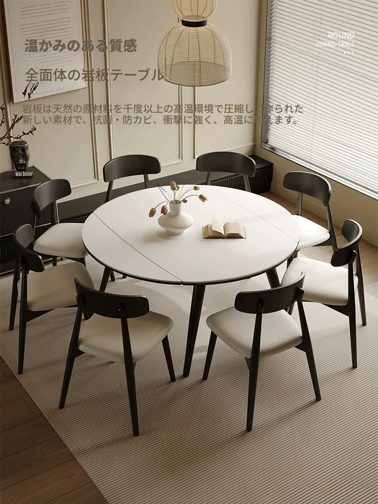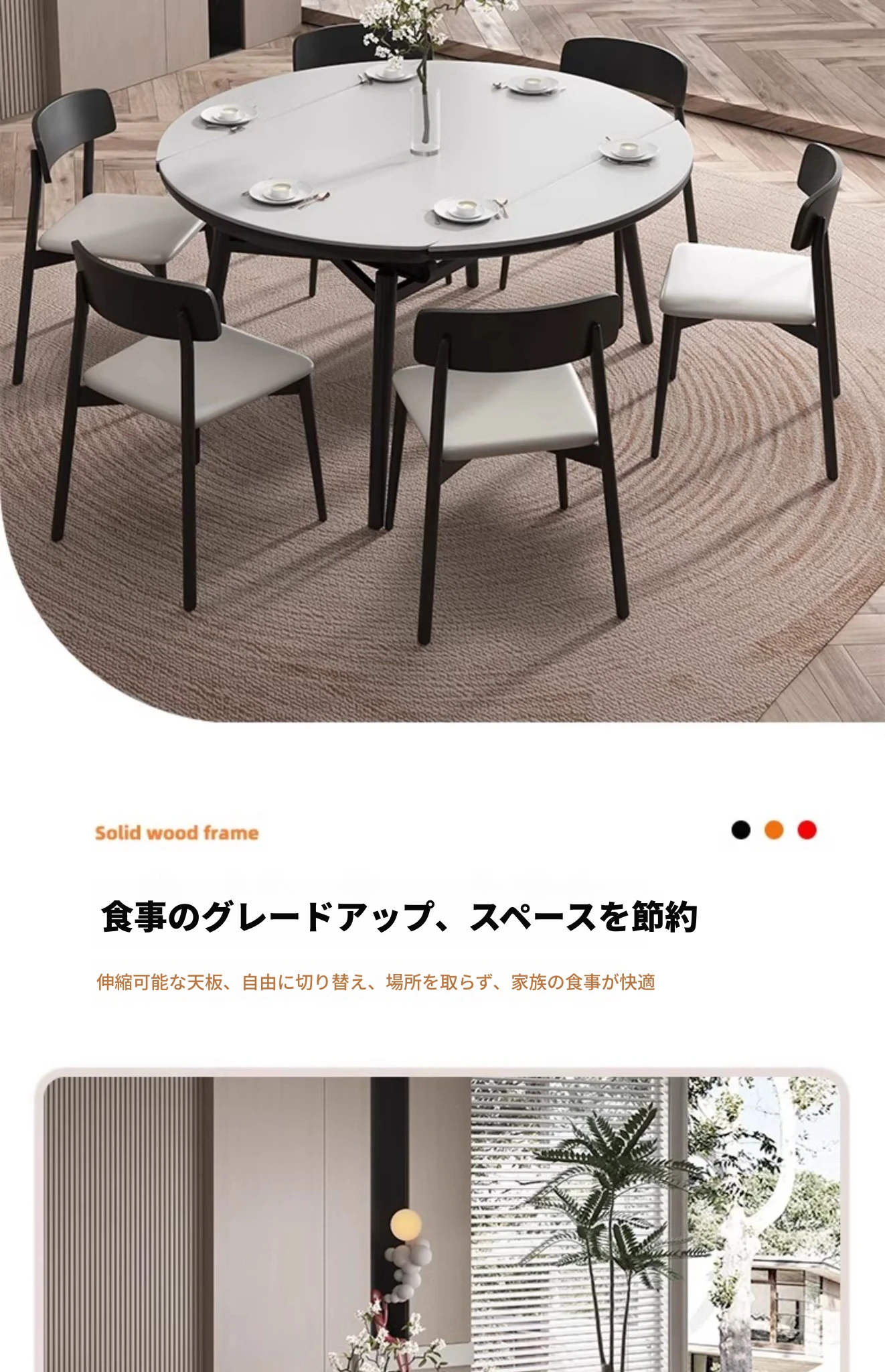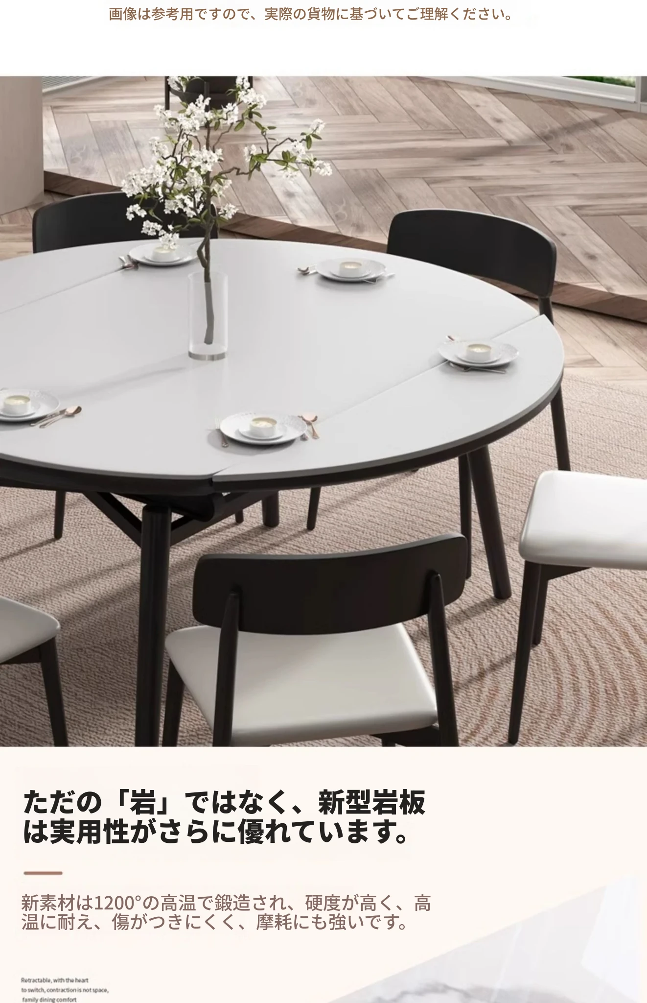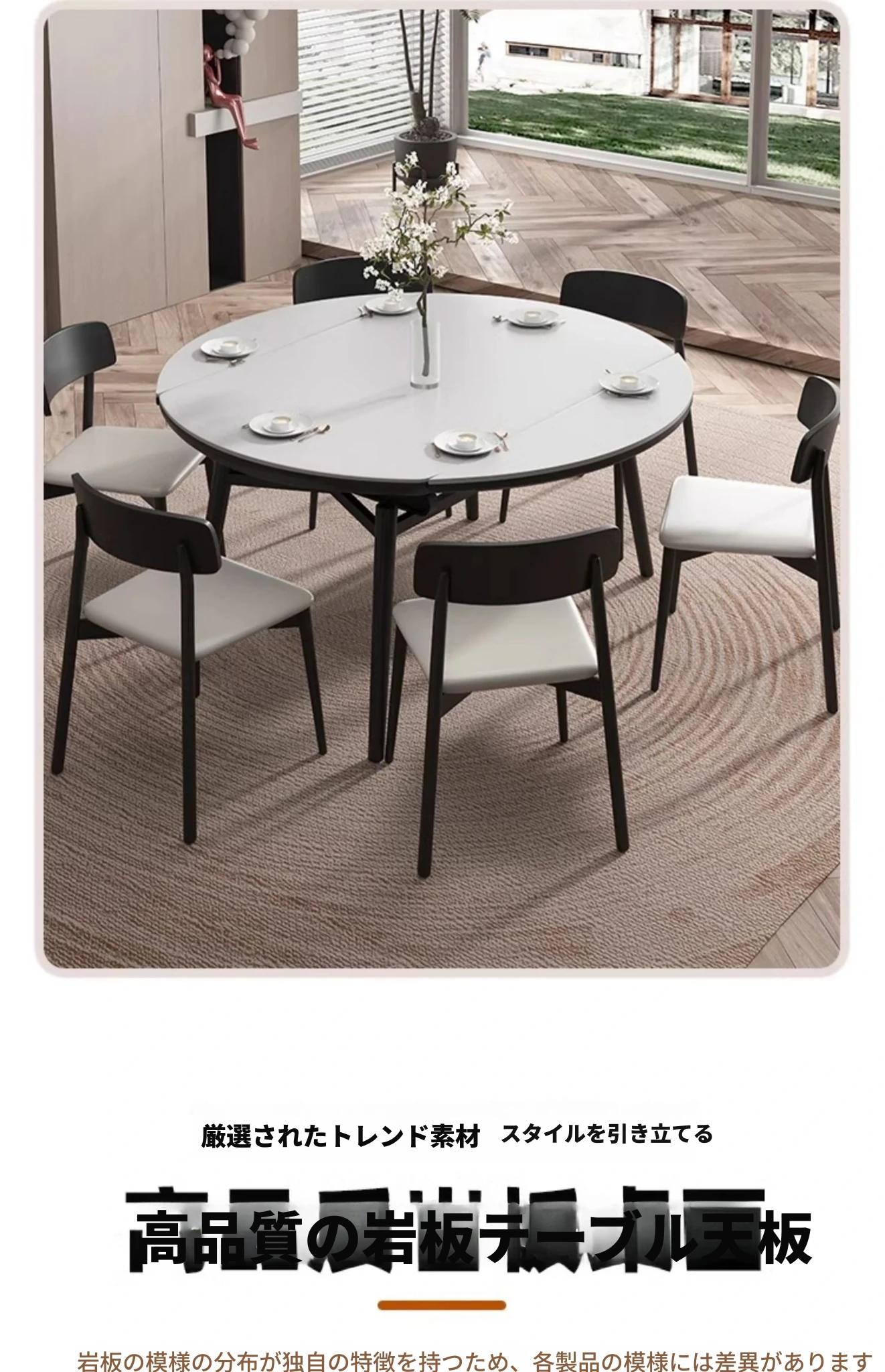 モダンシンプルな無垢材と岩板のダイニングテーブル - ブラック、伸縮可能で小型住宅に最適!四角と円形の2WAY折りたたみテーブルで、家族や友人との食事がもっと楽しくなる!