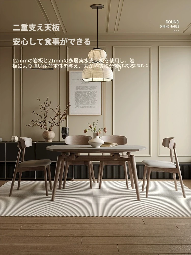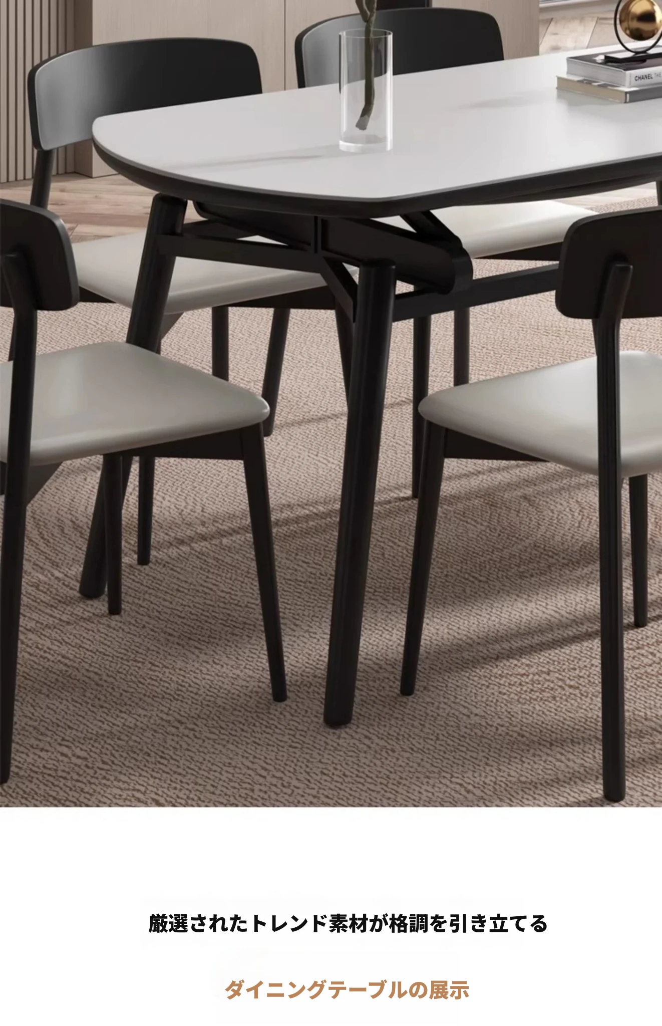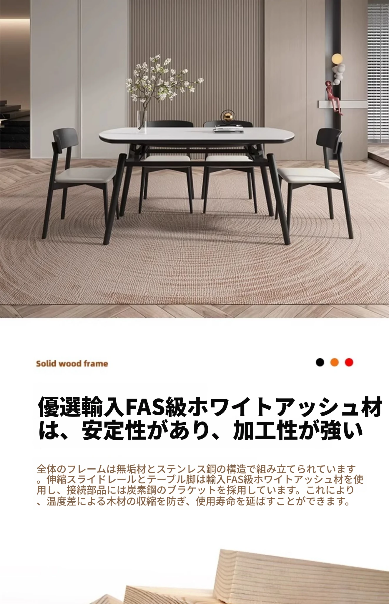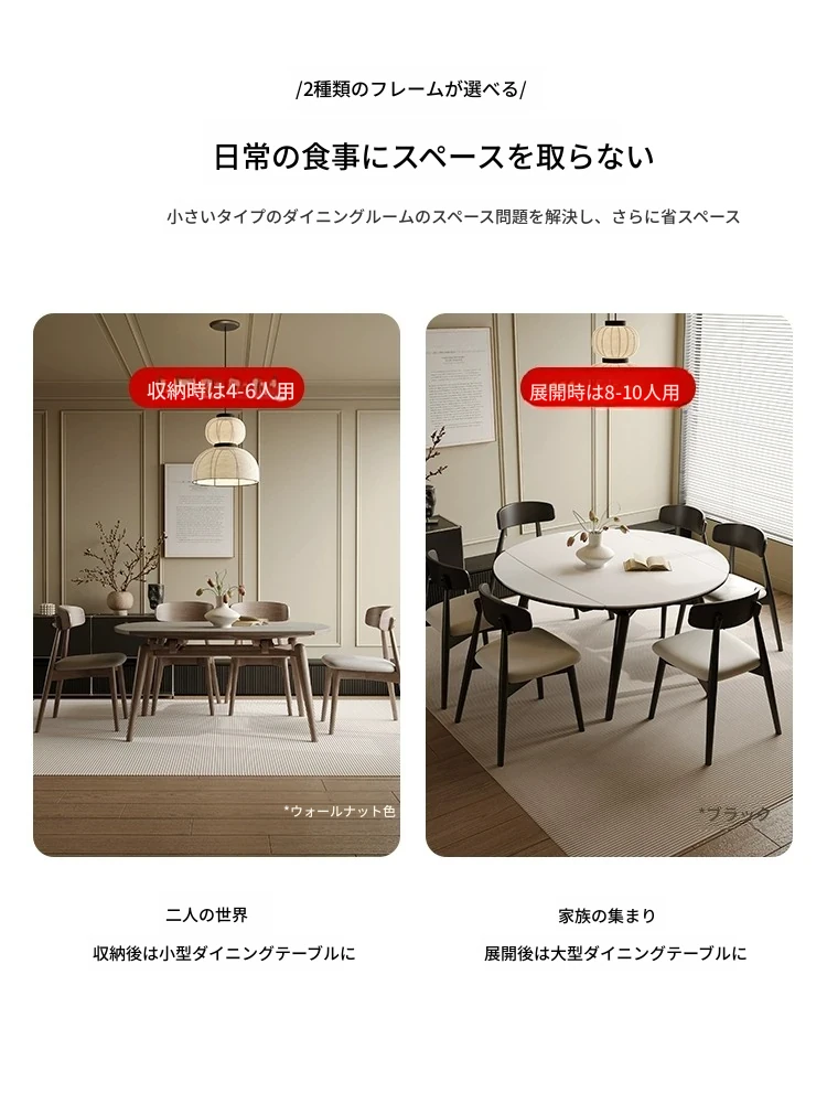 モダンシンプルな無垢材と岩板のダイニングテーブル - ブラック、伸縮可能で小型住宅に最適!四角と円形の2WAY折りたたみテーブルで、家族や友人との食事がもっと楽しくなる!