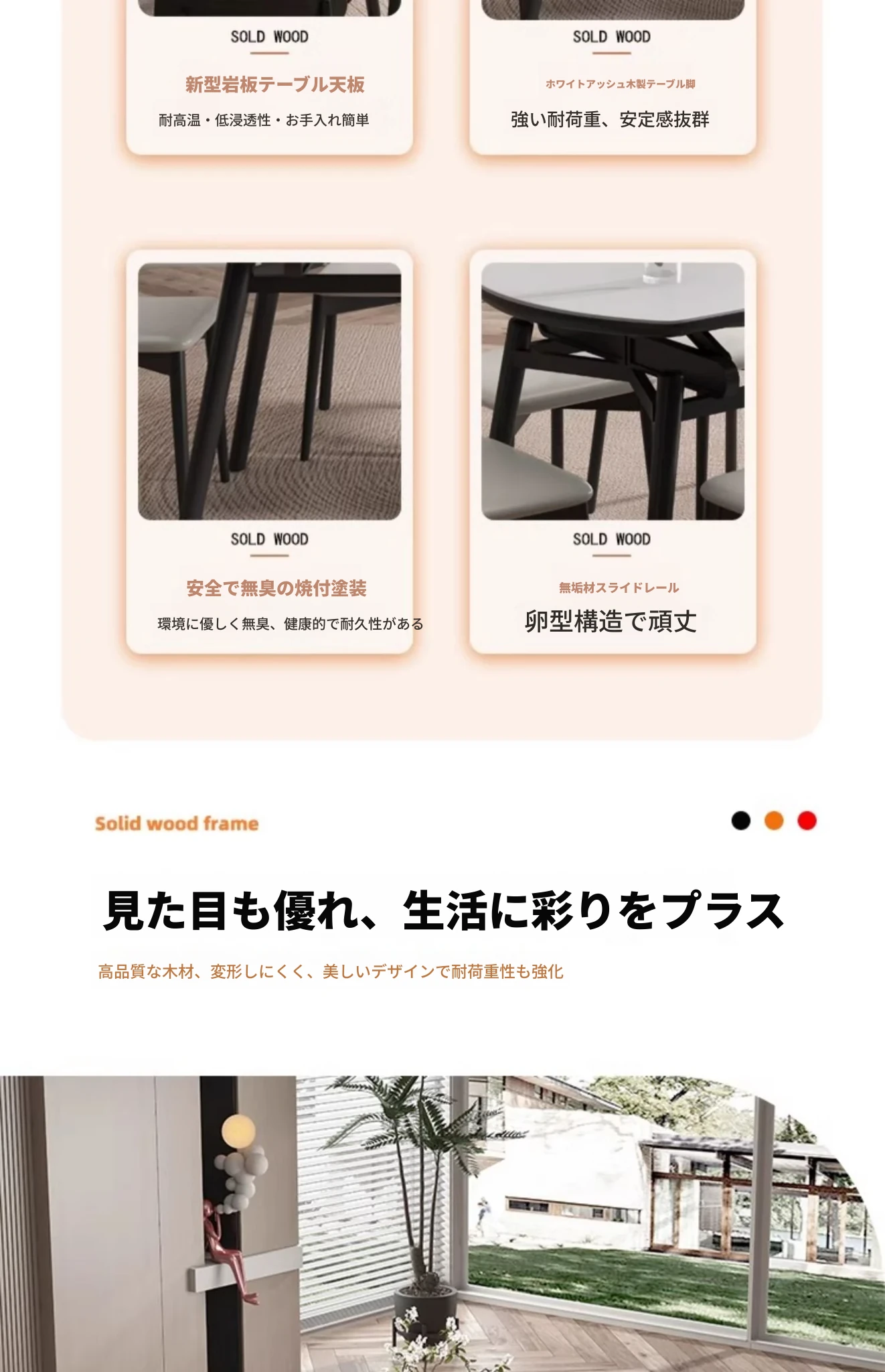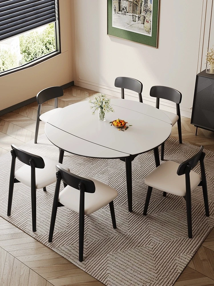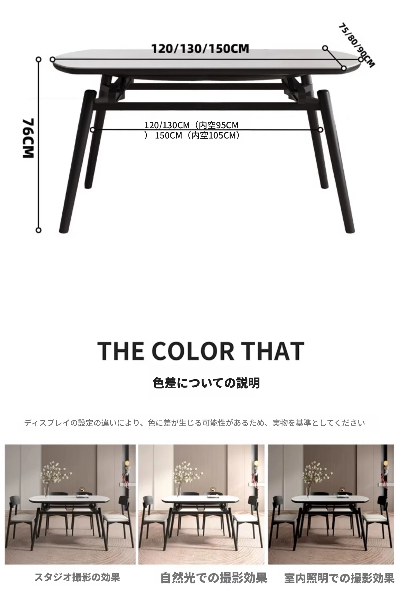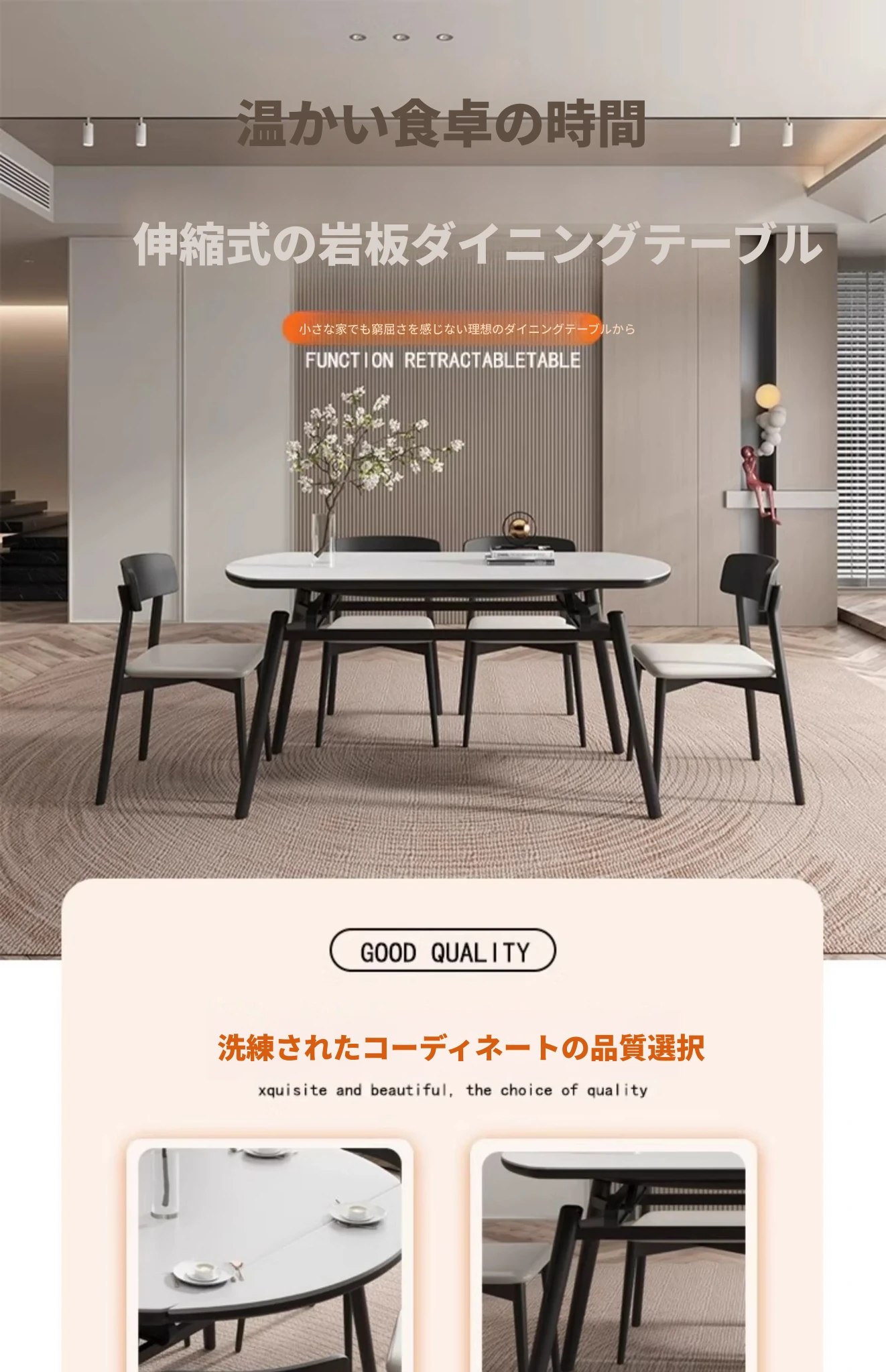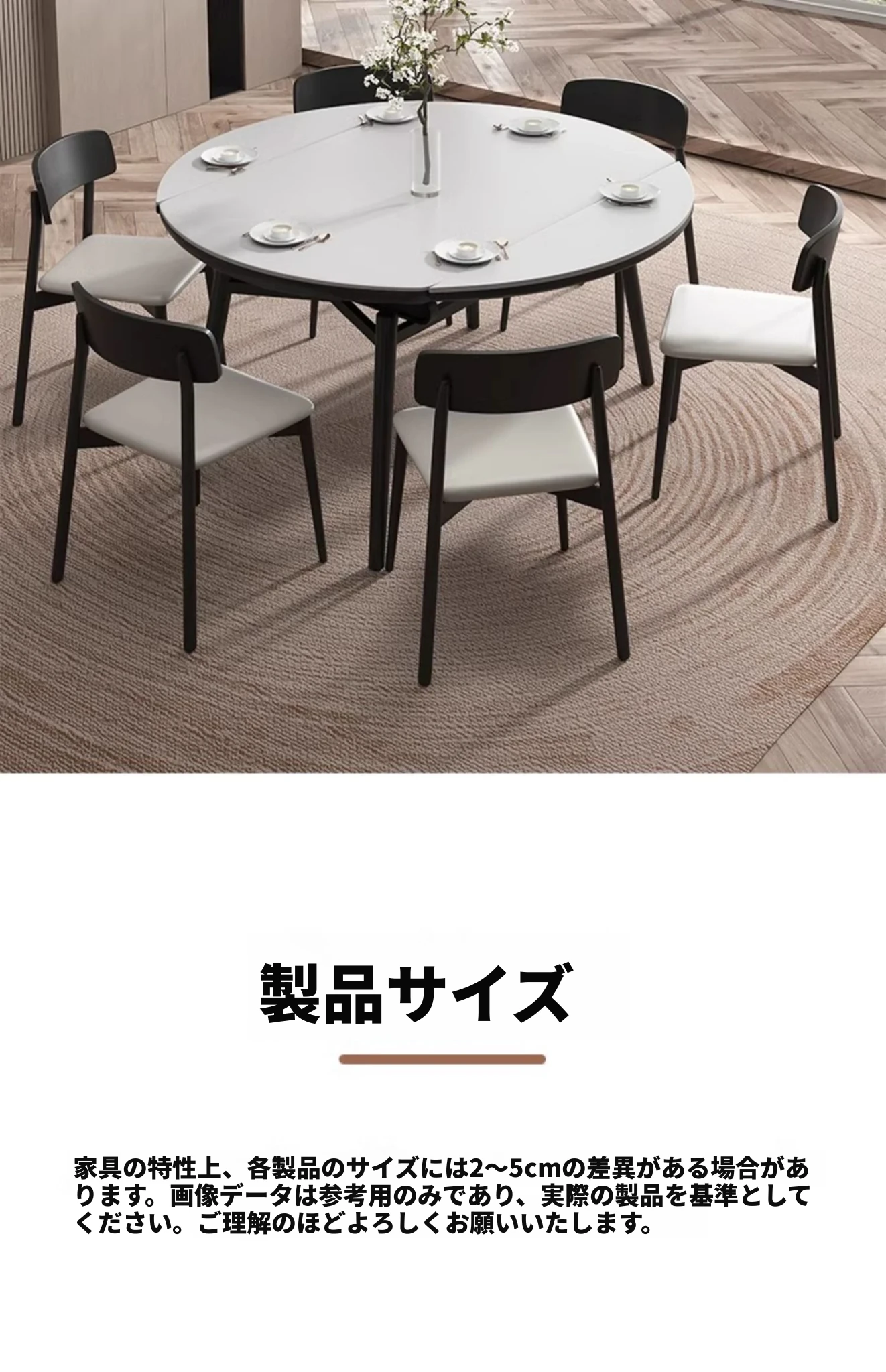 モダンシンプルな無垢材と岩板のダイニングテーブル - ブラック、伸縮可能で小型住宅に最適!四角と円形の2WAY折りたたみテーブルで、家族や友人との食事がもっと楽しくなる!