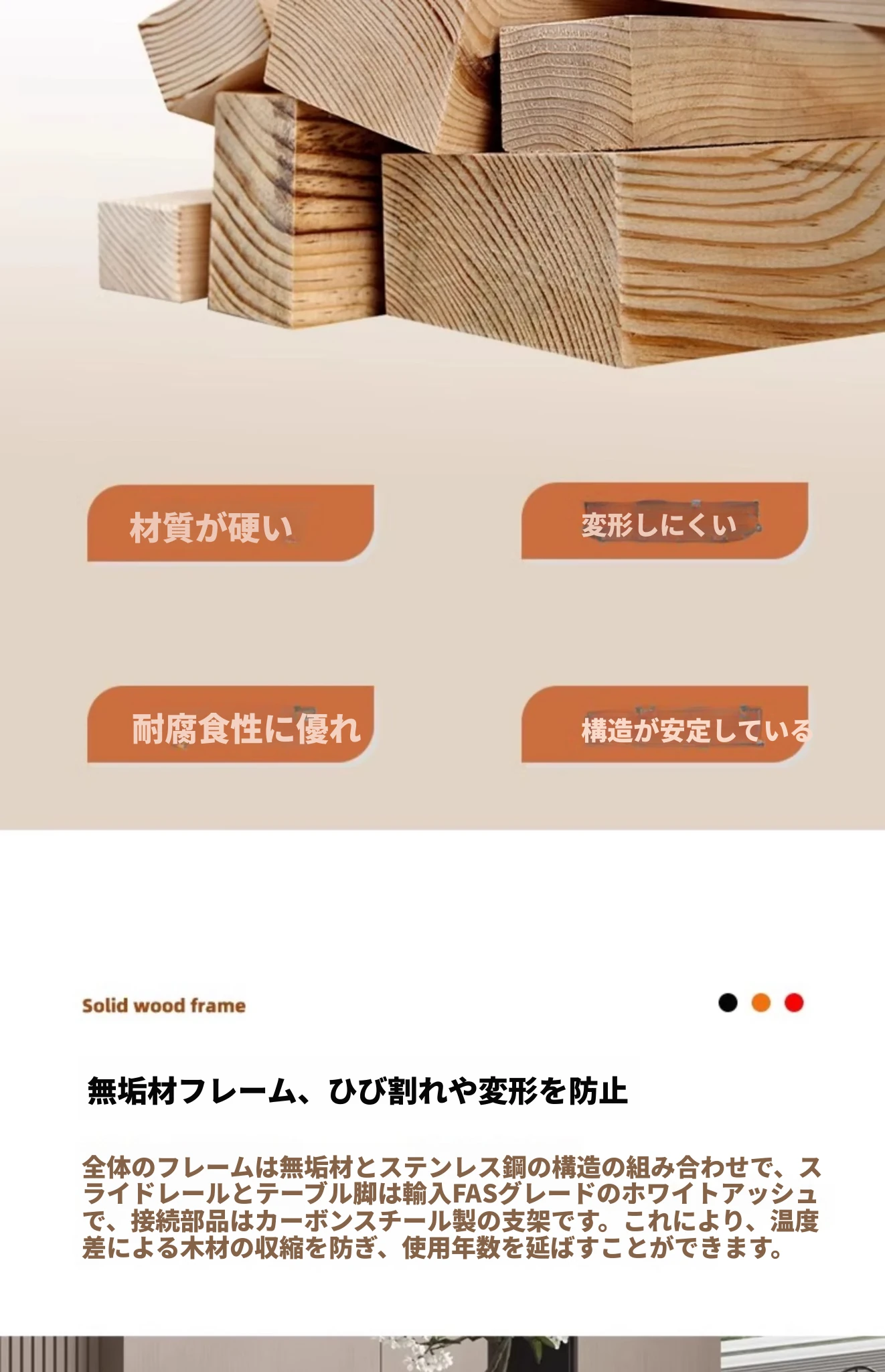 1.5メートル伸縮式ダイニングテーブル(全て無垢材ベース)