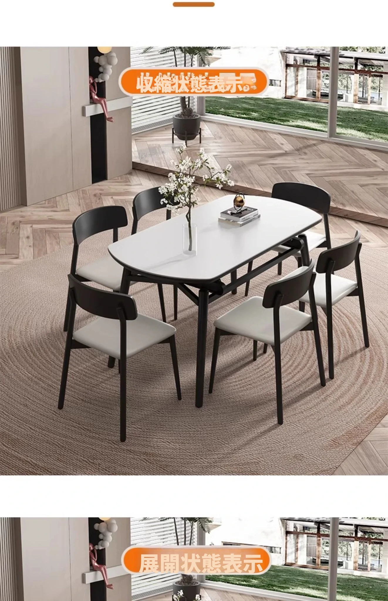 1.2メートル伸縮式ダイニングテーブル+6脚無垢材チェア