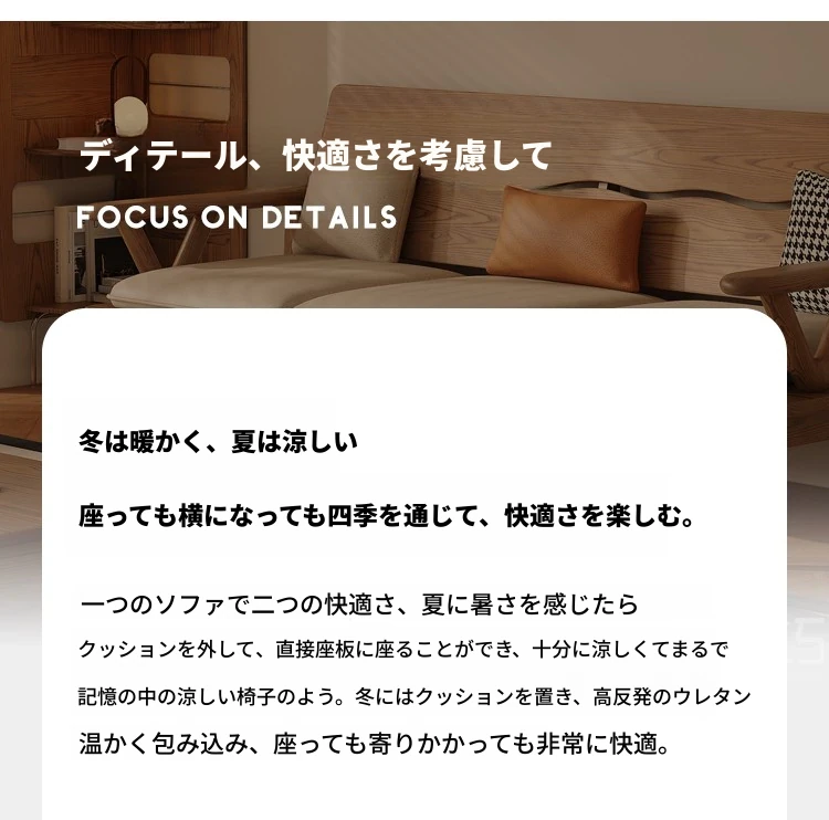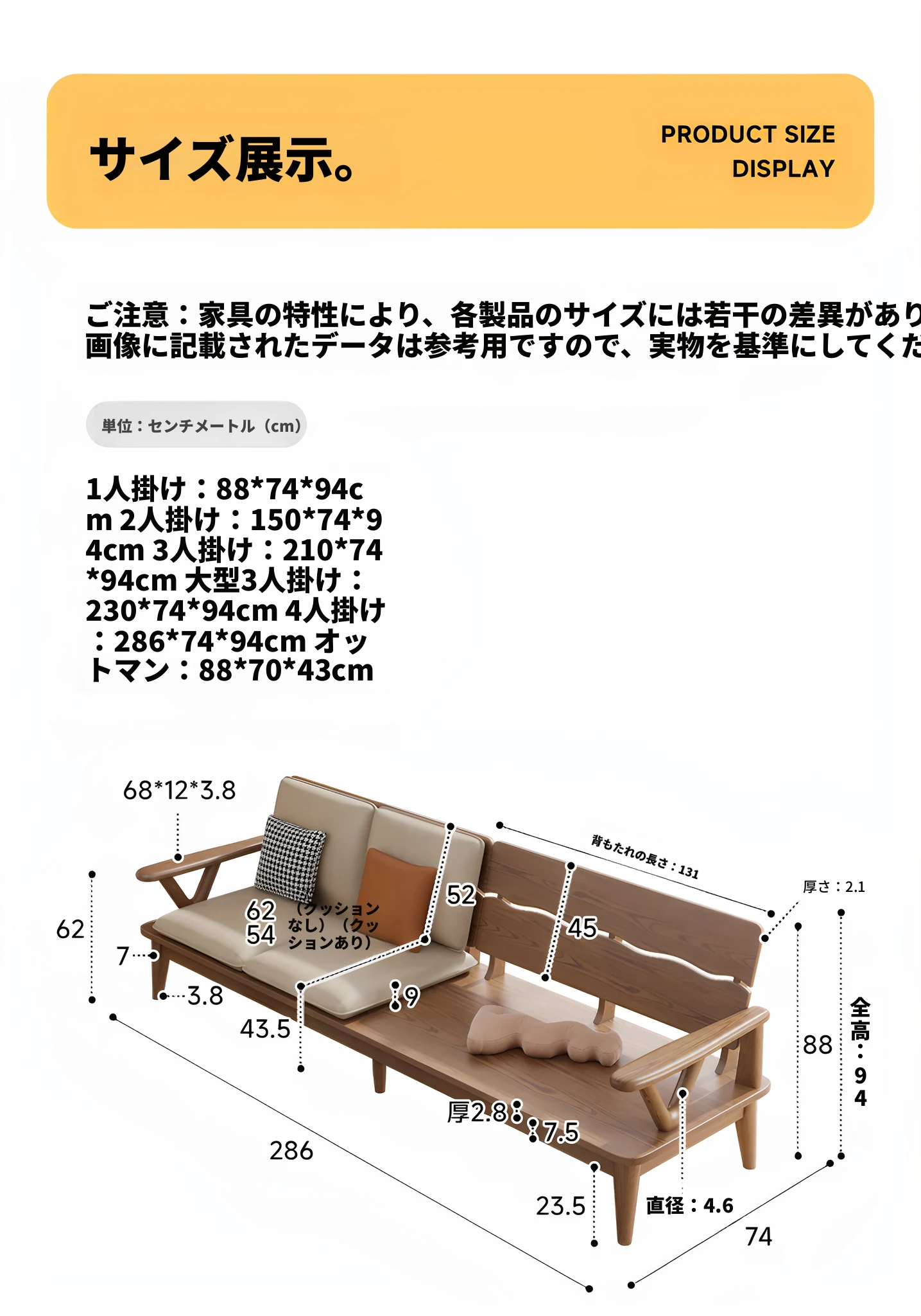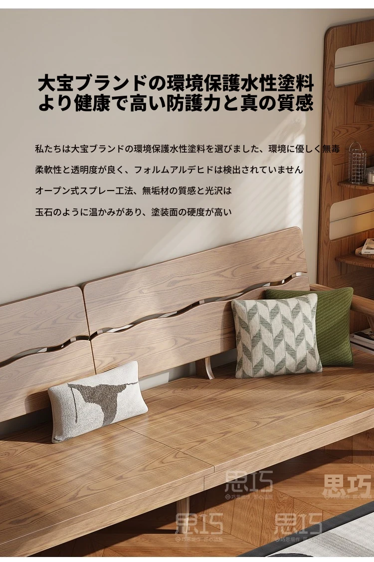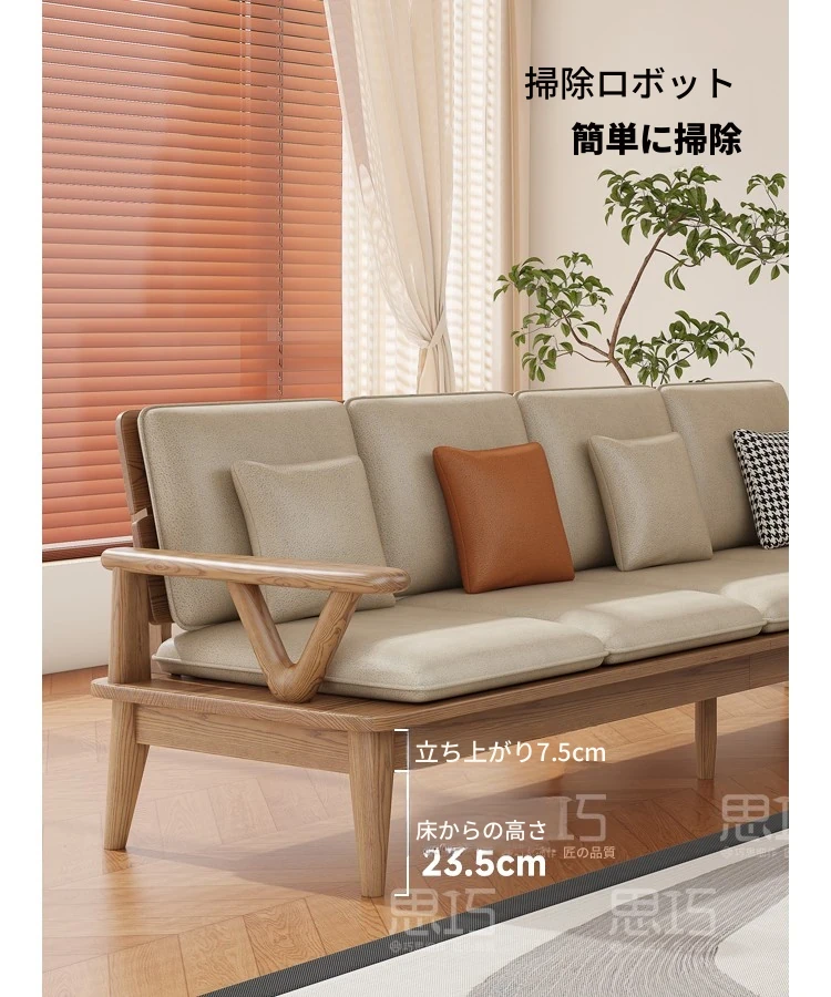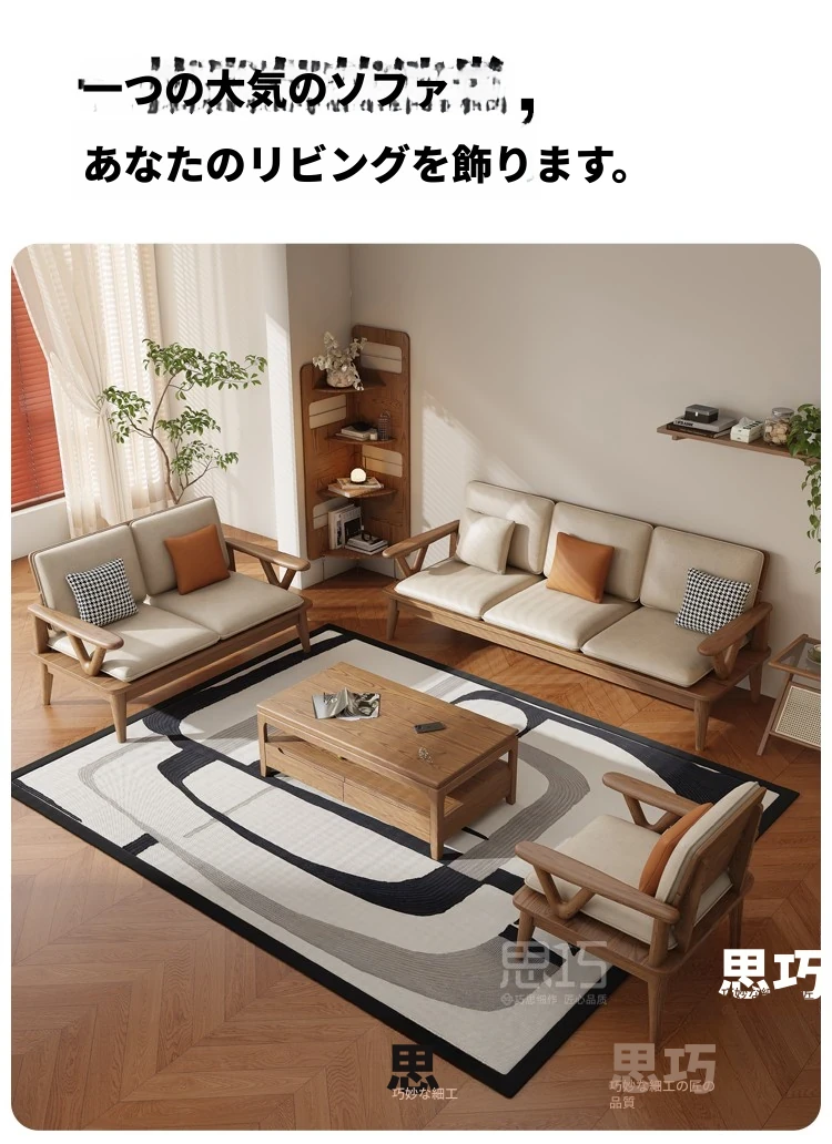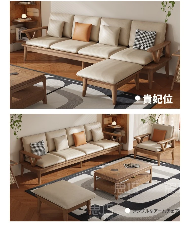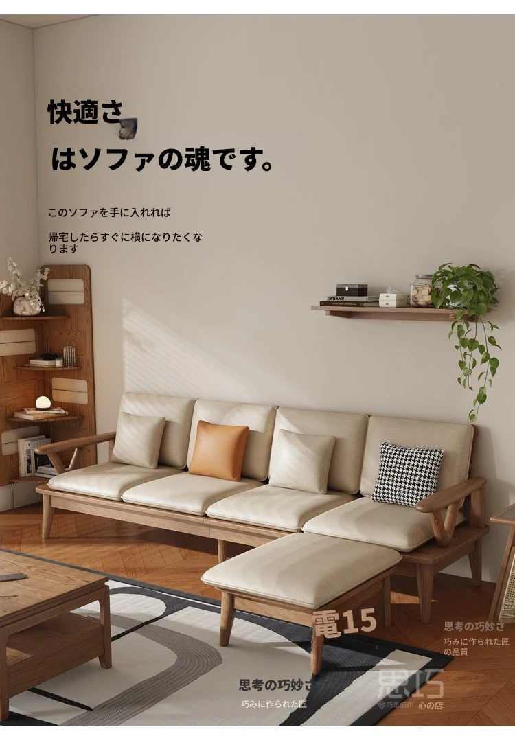 シンプルでモダンな無垢材ソファ - 新中式スタイルのリビングに最適!小型住宅向け、3人掛け・4人掛けのホワイトアッシュ無垢ソファ。洗練されたデザインで、居心地の良い空間を演出します。