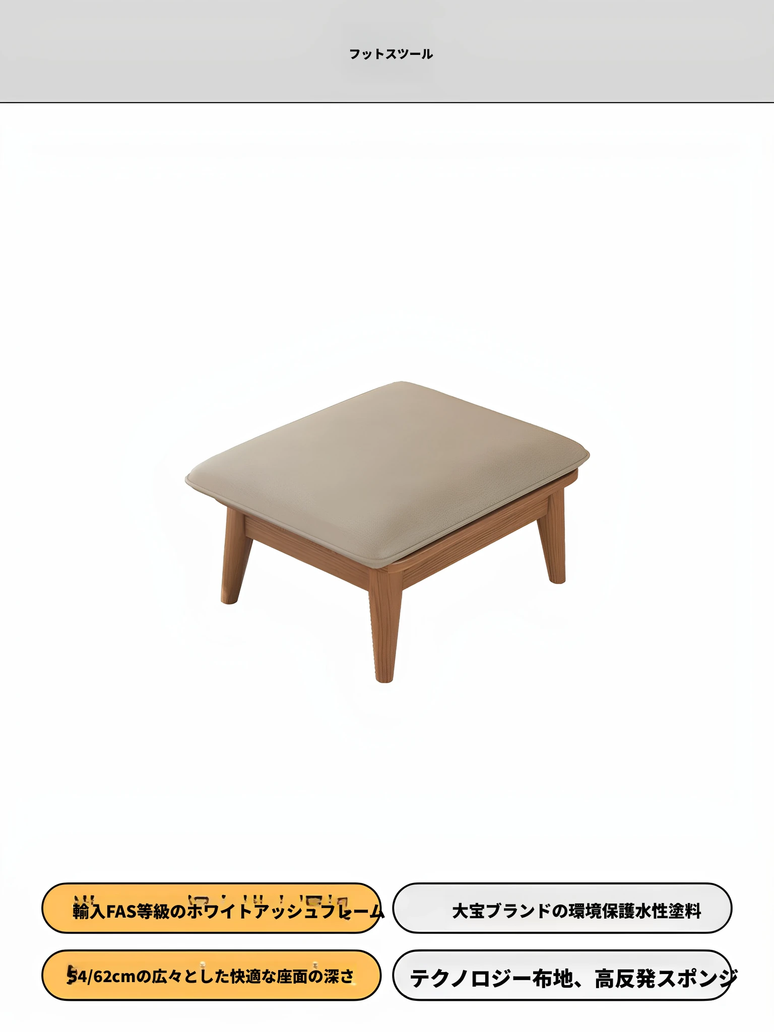 三人用+フットスツール【輸入ホワイトアッシュ】