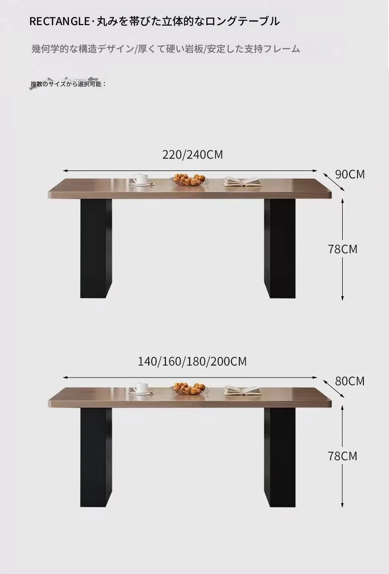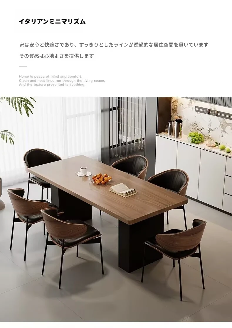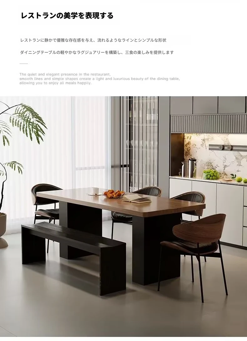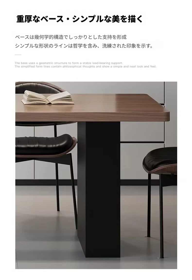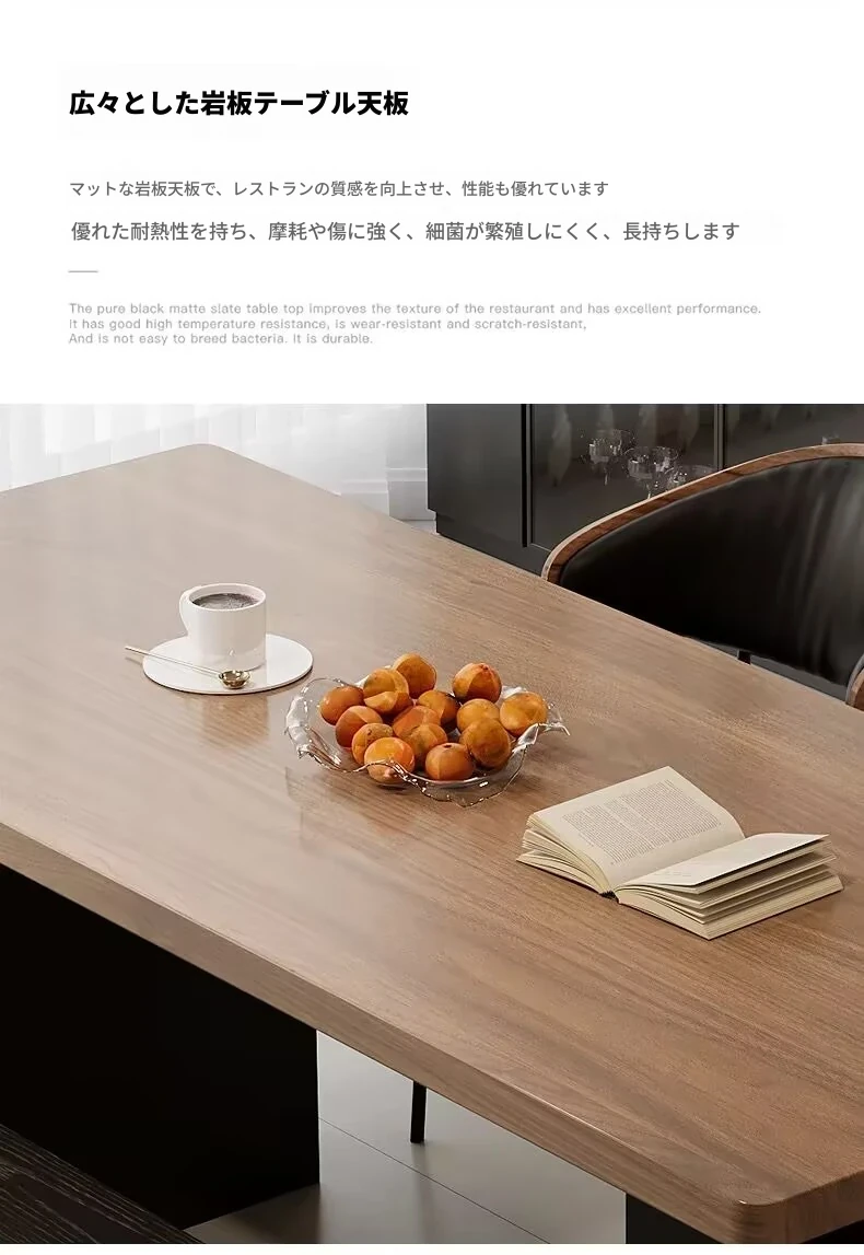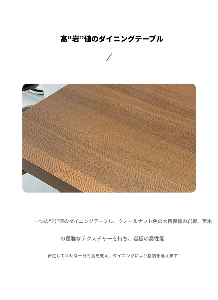 モダンで洗練された中古風のロックプレートダイニングテーブル&チェアセット。侘寂の美しさを感じるくるみ色の厚手長方形テーブルで、上質な食事体験をお楽しみください。