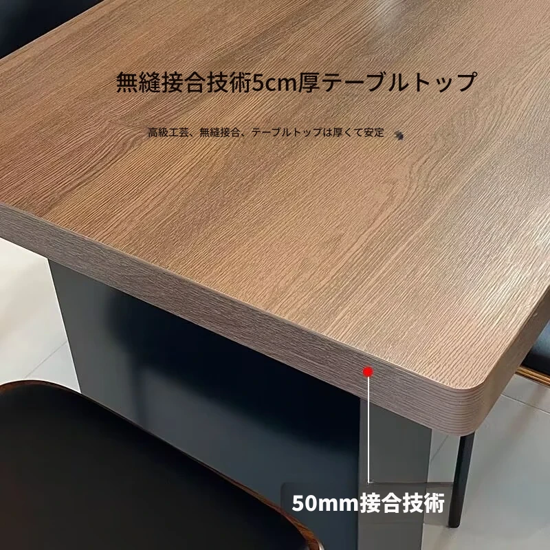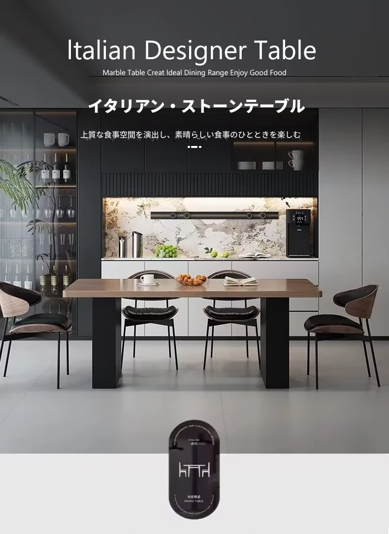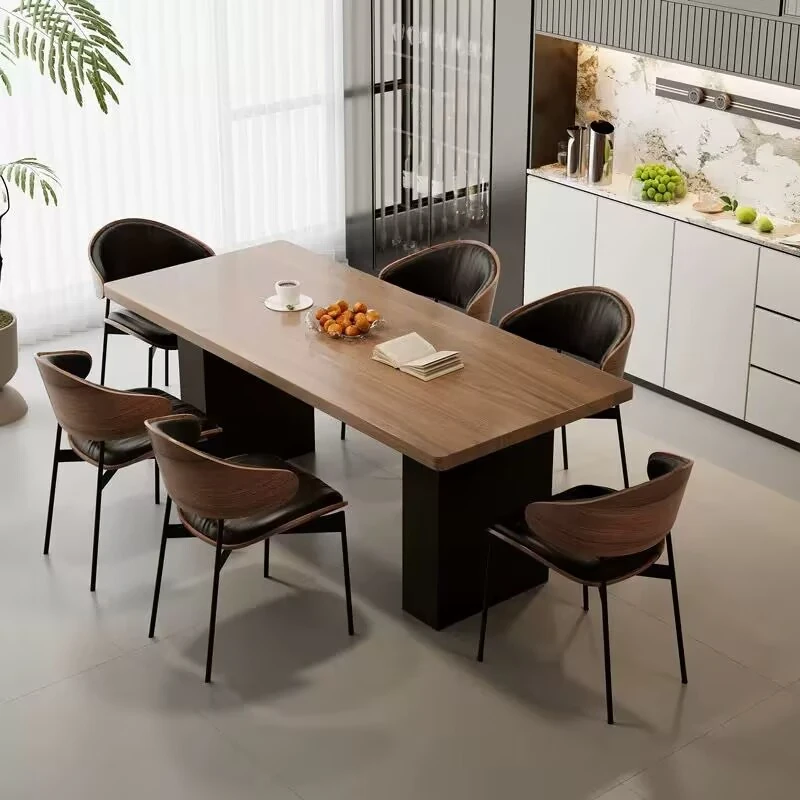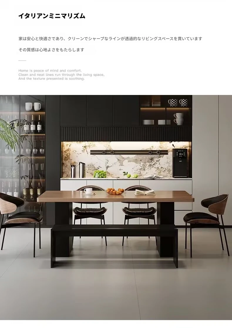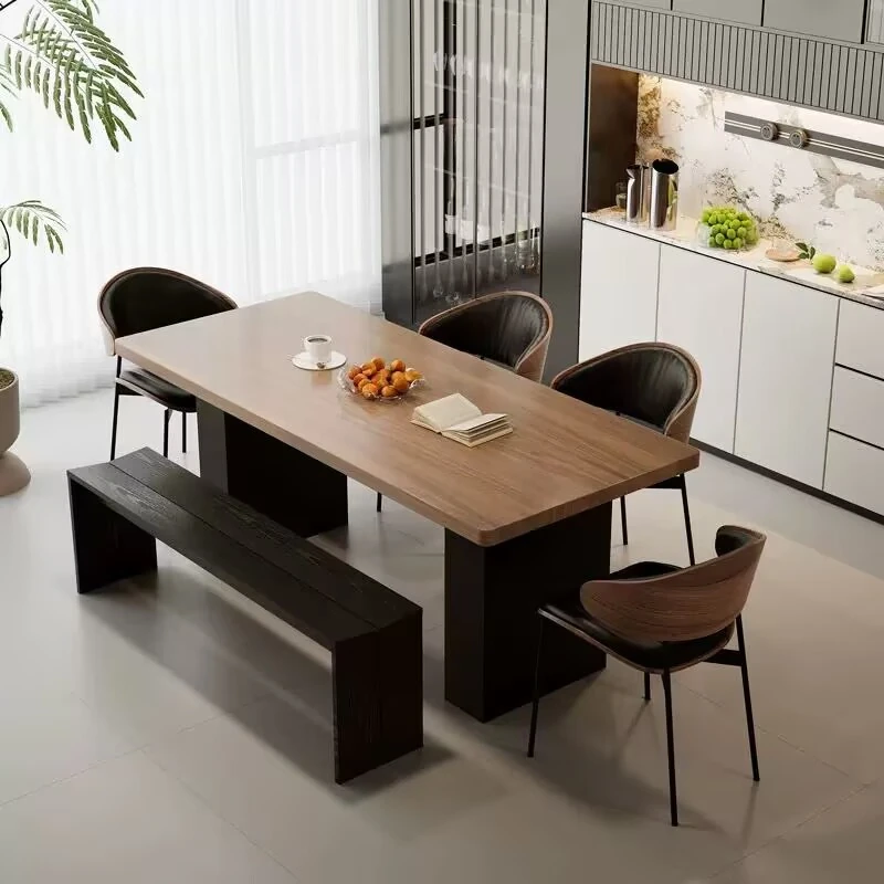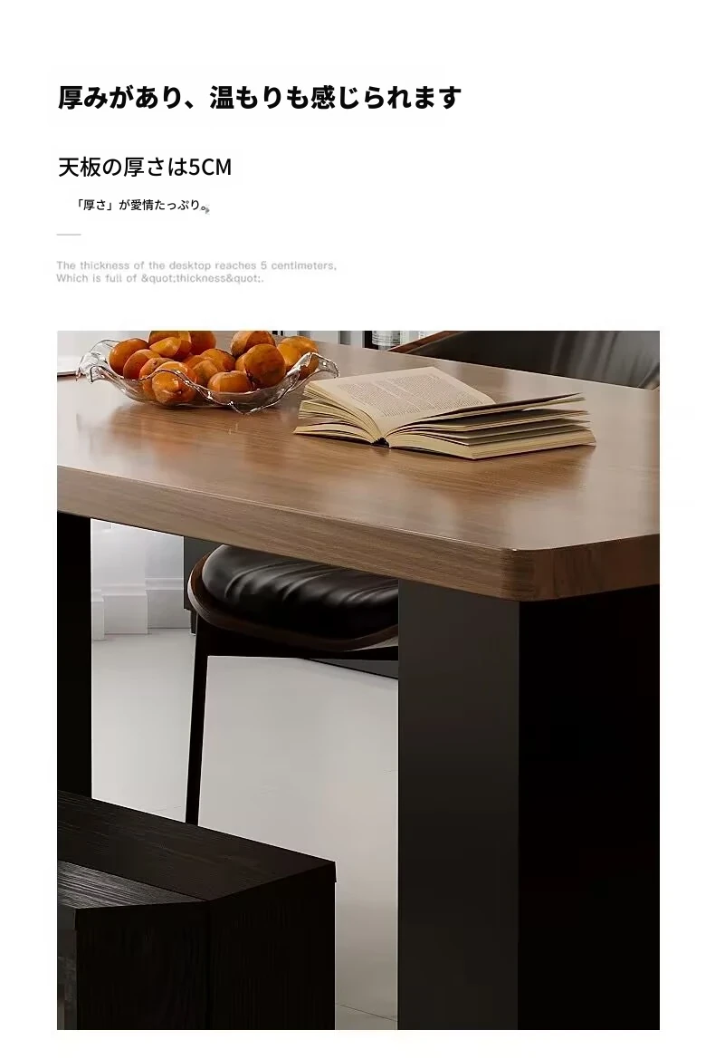 モダンで洗練された中古風のロックプレートダイニングテーブル&チェアセット。侘寂の美しさを感じるくるみ色の厚手長方形テーブルで、上質な食事体験をお楽しみください。