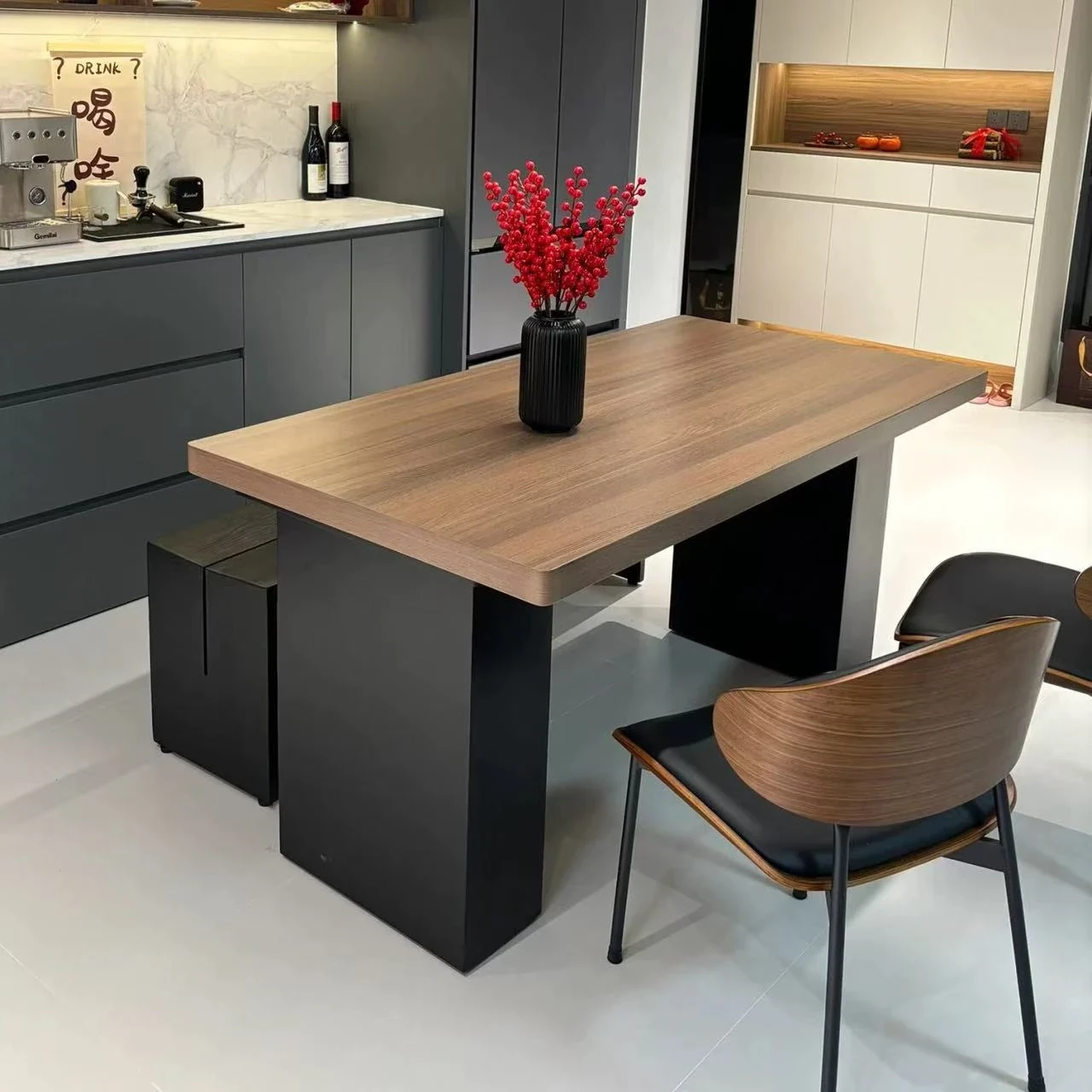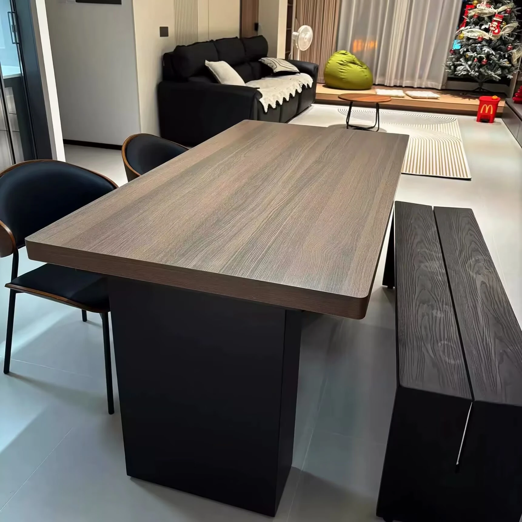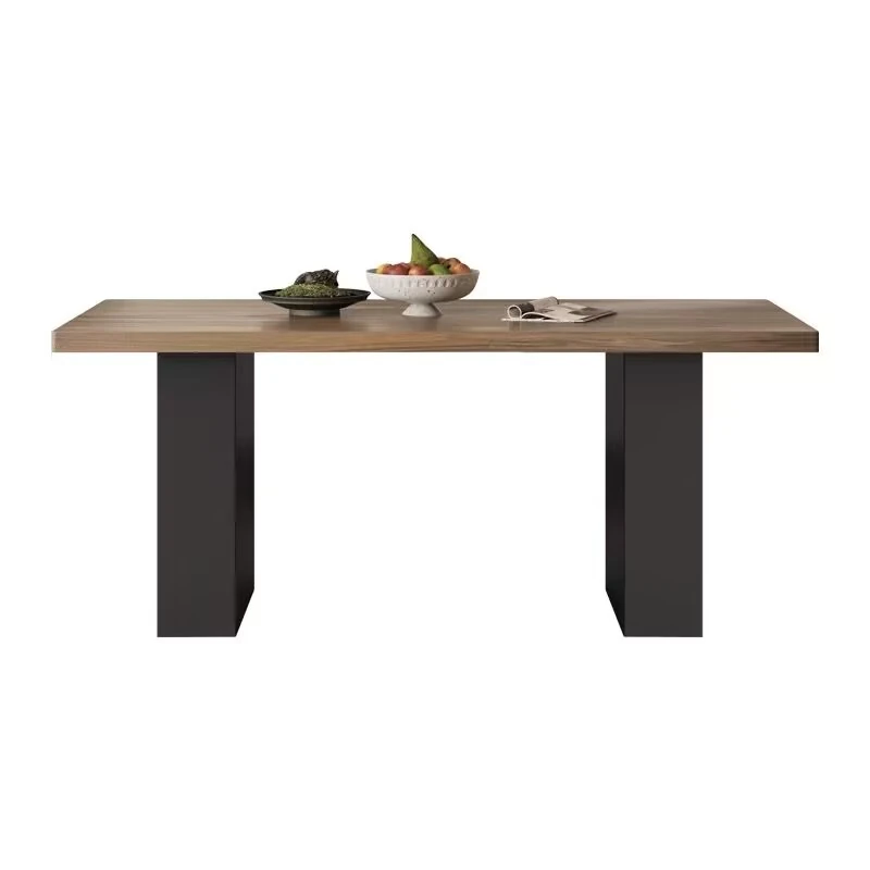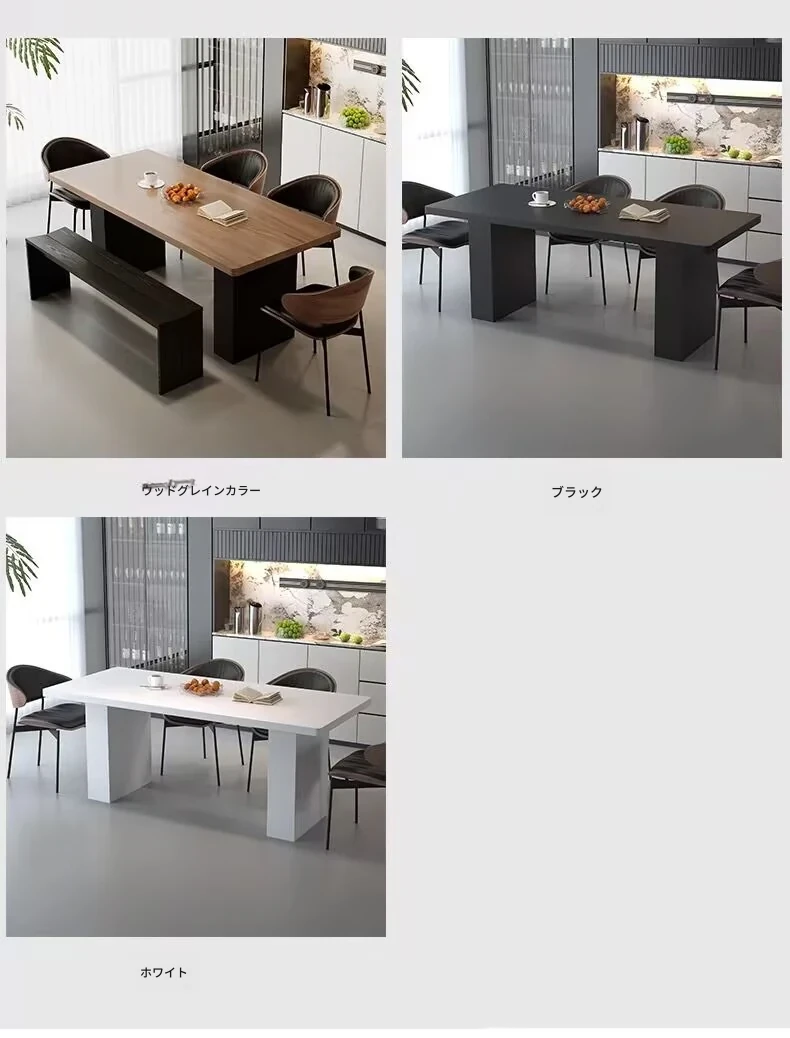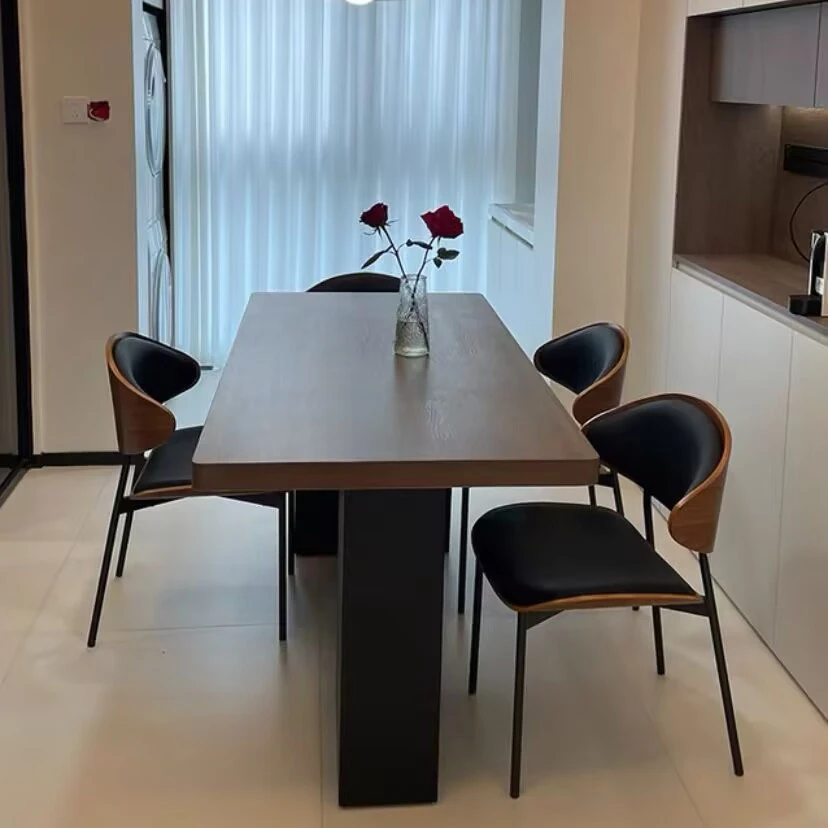 モダンで洗練された中古風のロックプレートダイニングテーブル&チェアセット。侘寂の美しさを感じるくるみ色の厚手長方形テーブルで、上質な食事体験をお楽しみください。