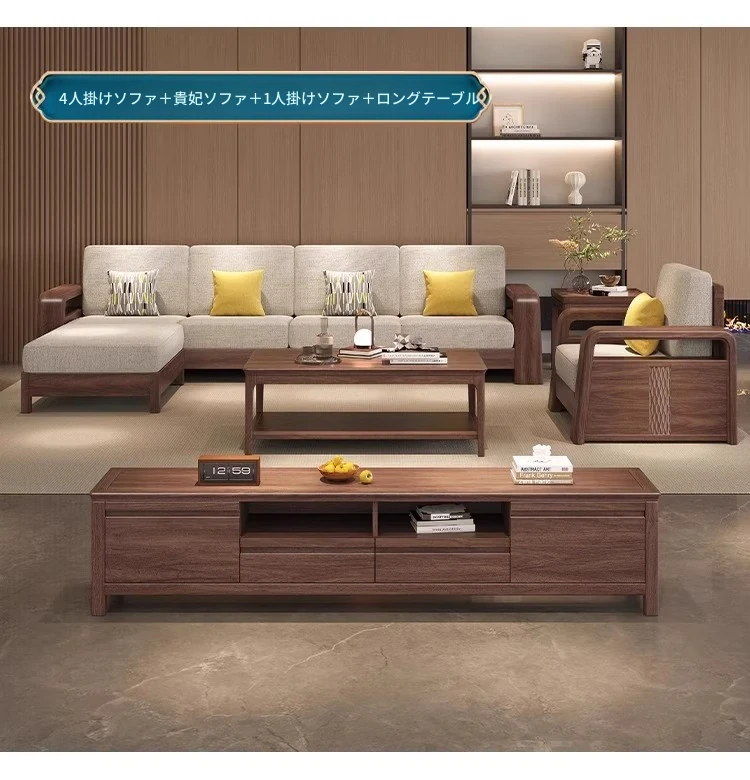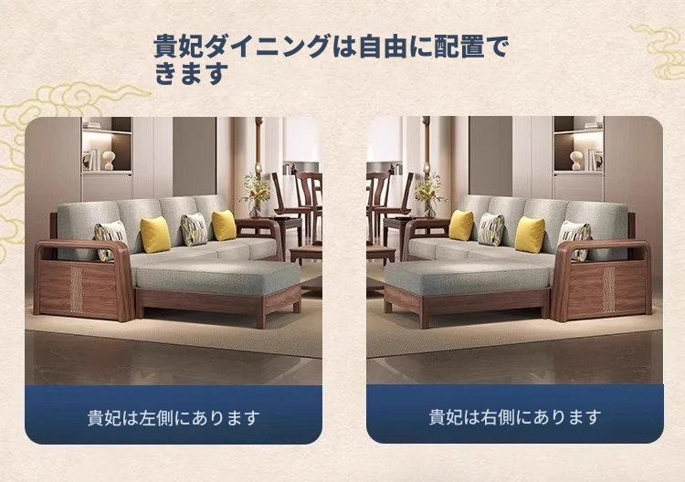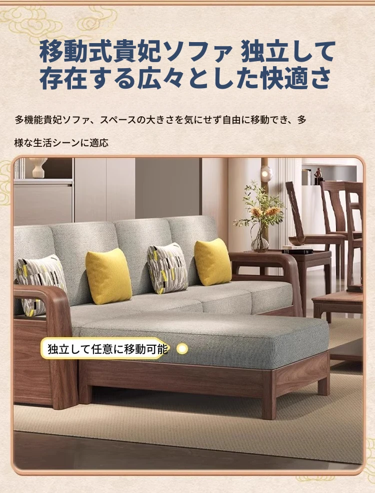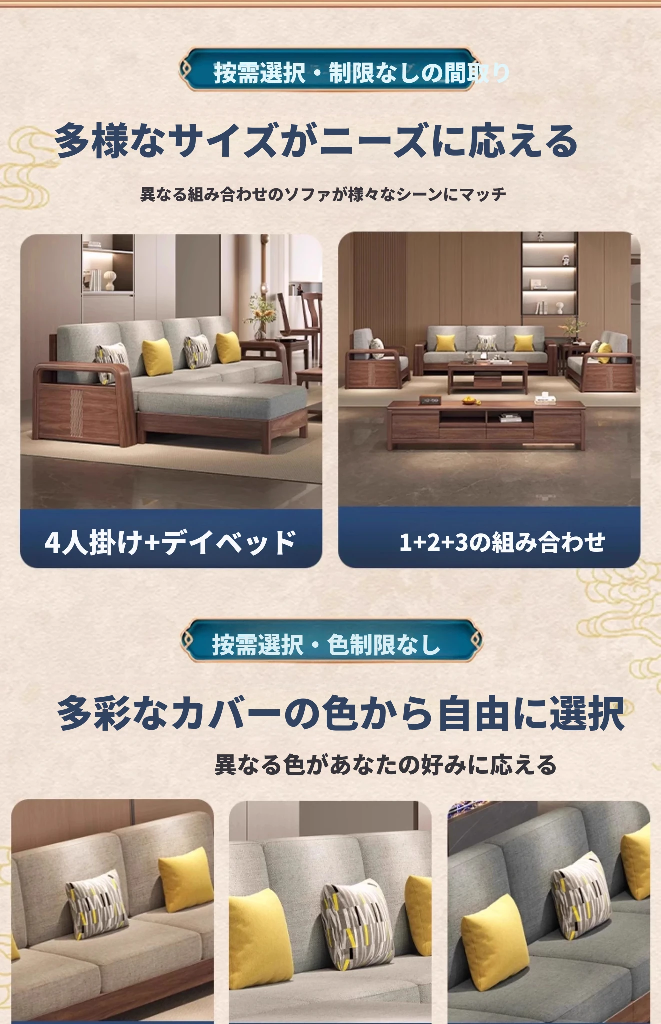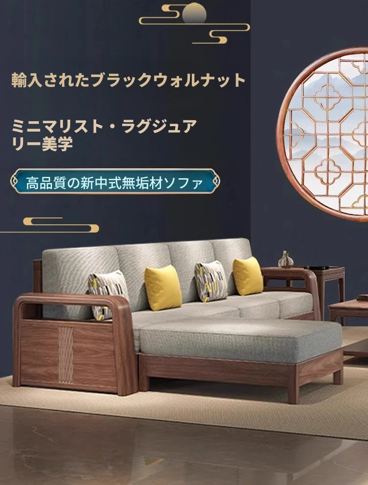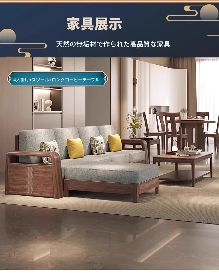 現代的シンプルなデザイン!ブラックウォールナット無垢材製のリビング用直線型コーナーソファ。冬夏兼用のファブリックソファで、収納スペースも完備。居心地の良い空間を演出します!