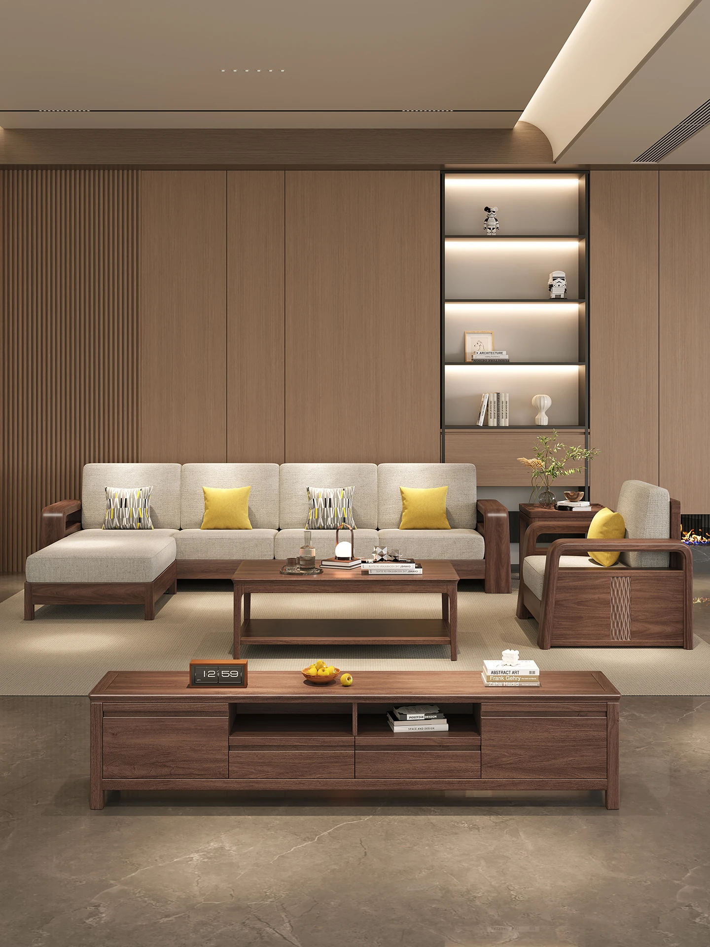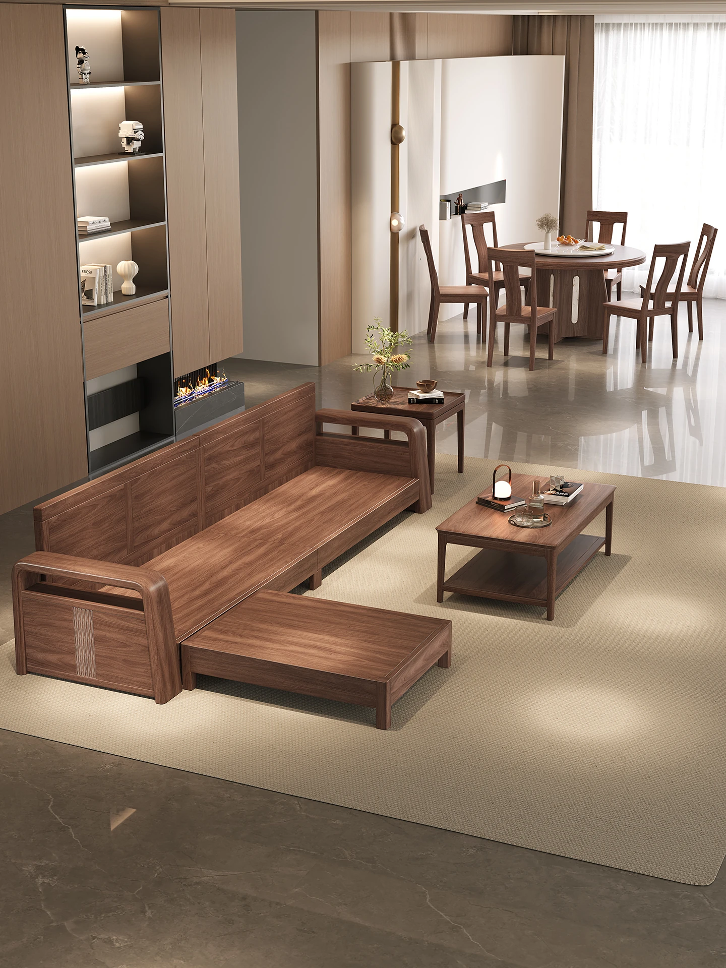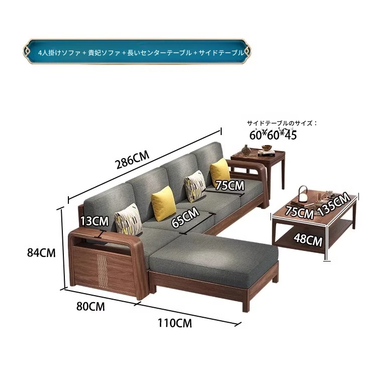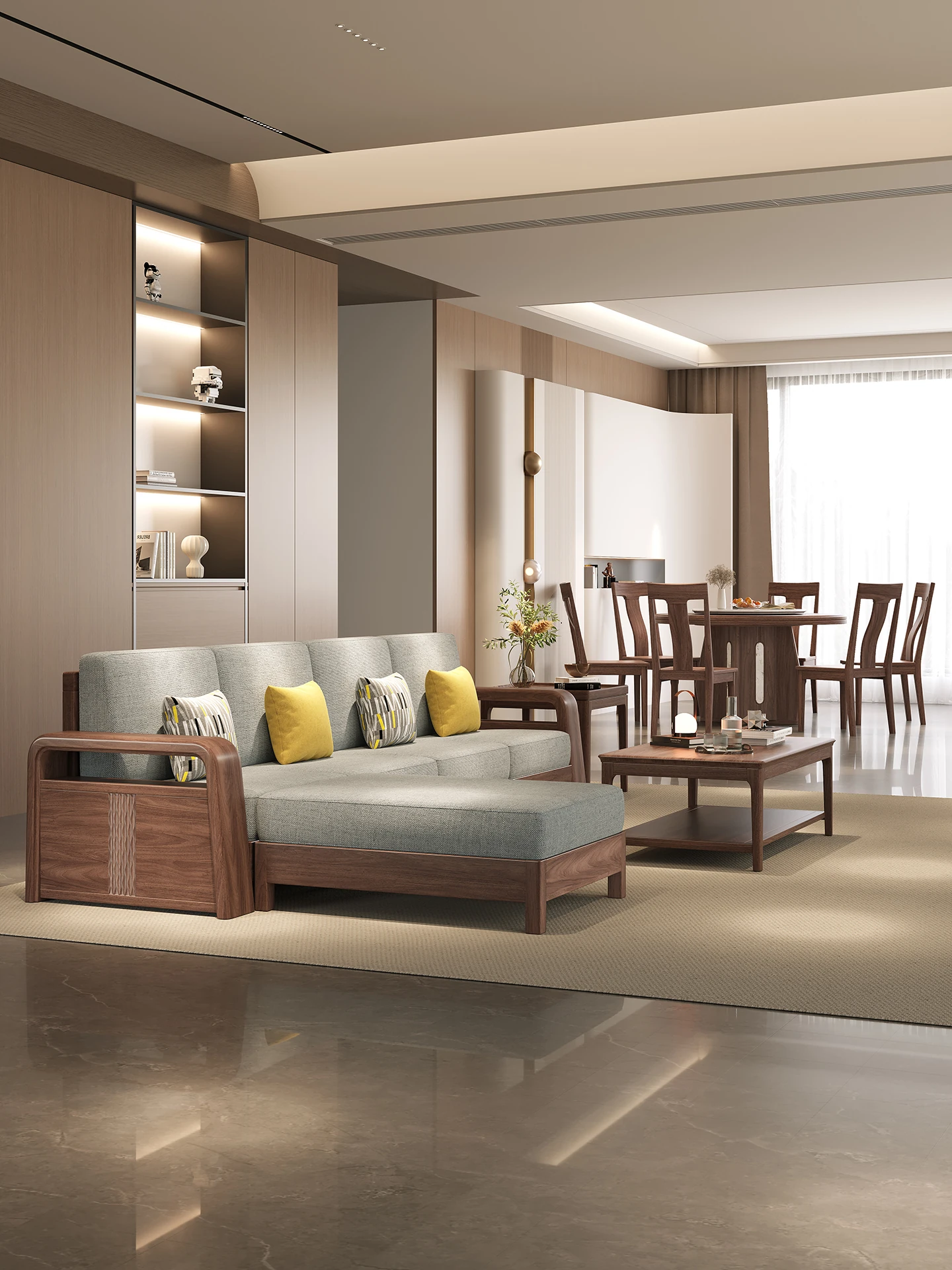 現代的シンプルなデザイン!ブラックウォールナット無垢材製のリビング用直線型コーナーソファ。冬夏兼用のファブリックソファで、収納スペースも完備。居心地の良い空間を演出します!