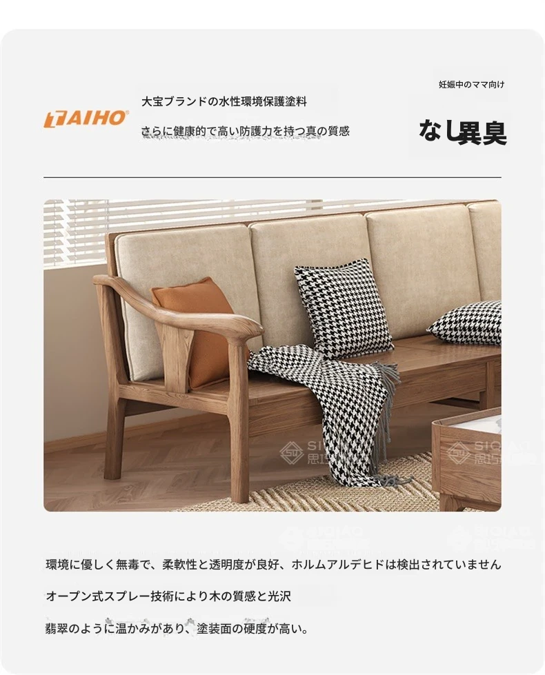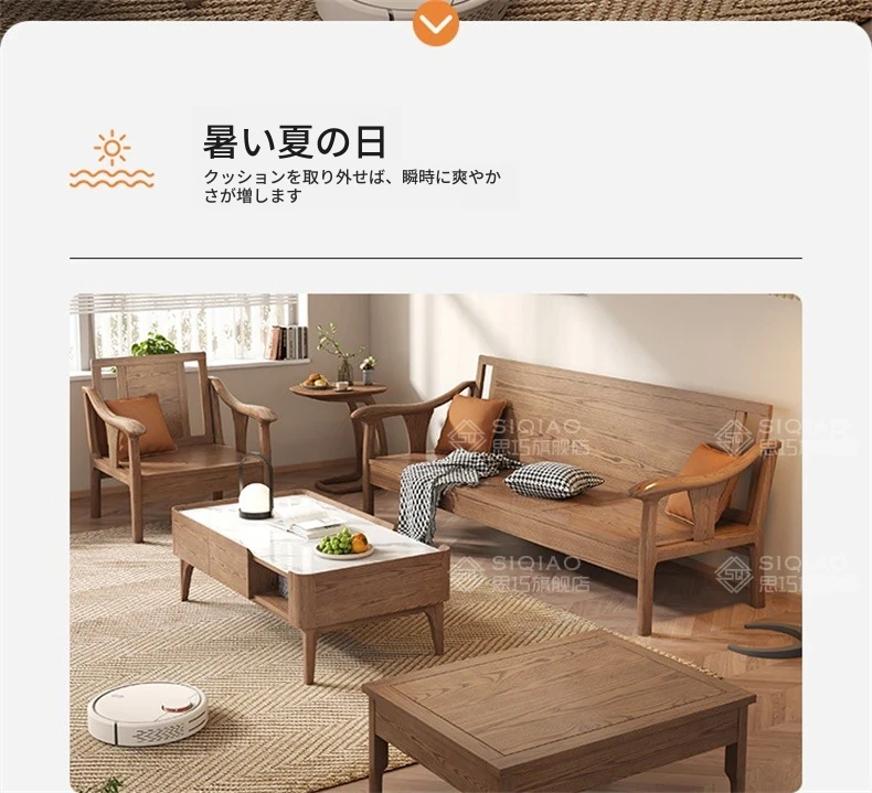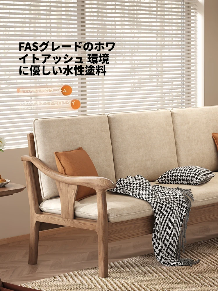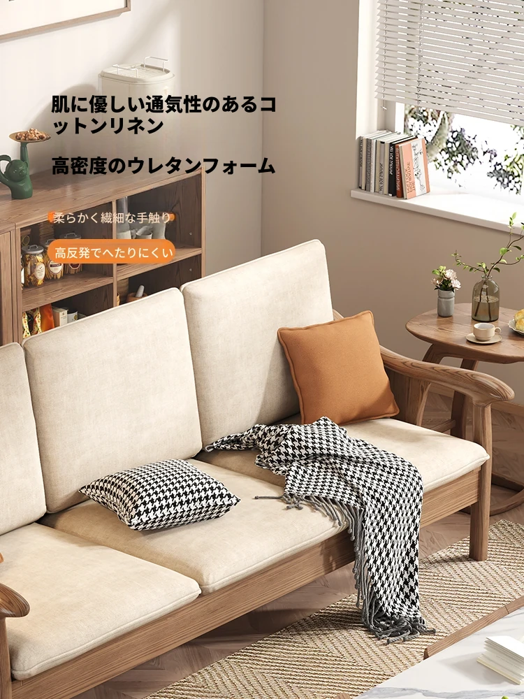 北欧スタイルのモダン3人掛け・4人掛けソファ、シンプルで洗練されたデザイン!小さなリビングにもぴったり。冬も夏も快適に使える新中式の無垢材ソファで、心地よい空間を実現!
