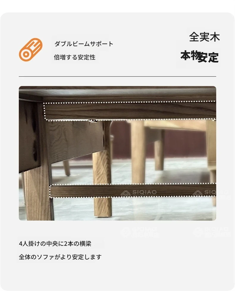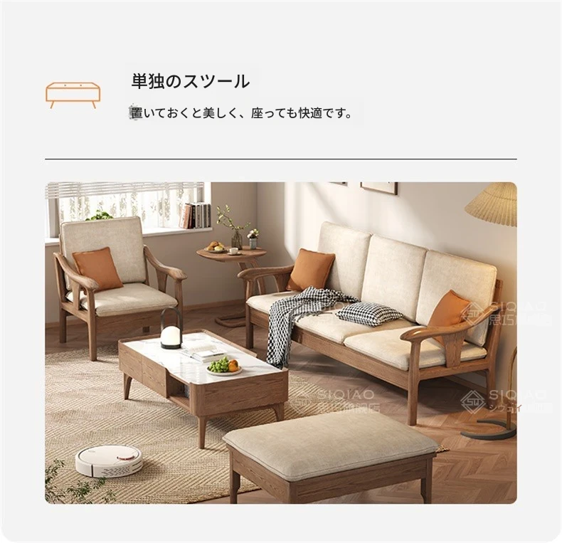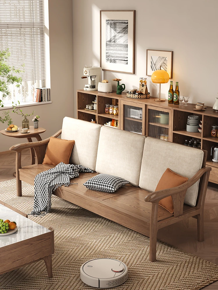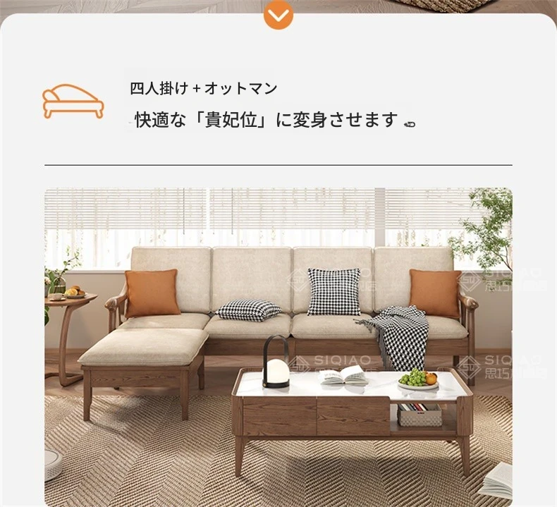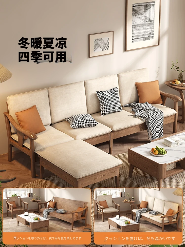 北欧スタイルのモダン3人掛け・4人掛けソファ、シンプルで洗練されたデザイン!小さなリビングにもぴったり。冬も夏も快適に使える新中式の無垢材ソファで、心地よい空間を実現!