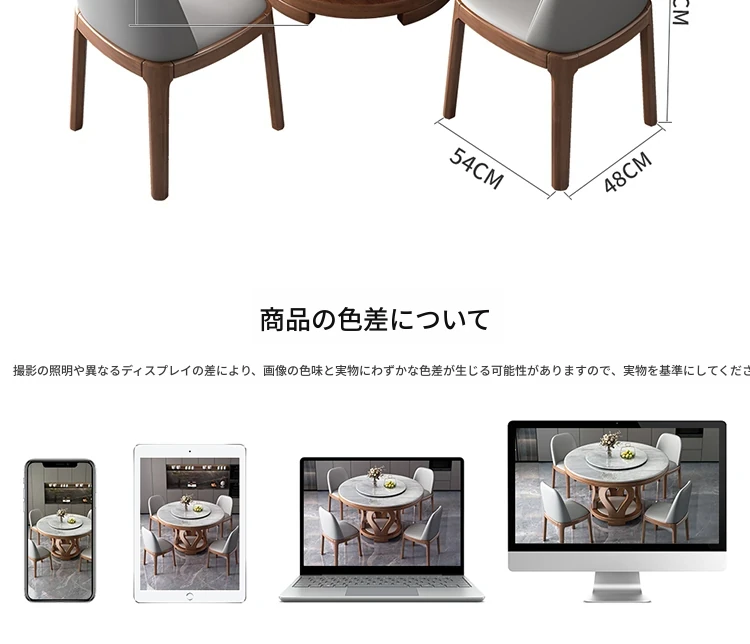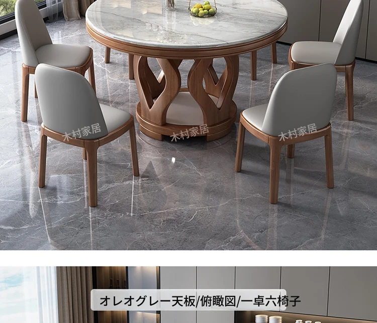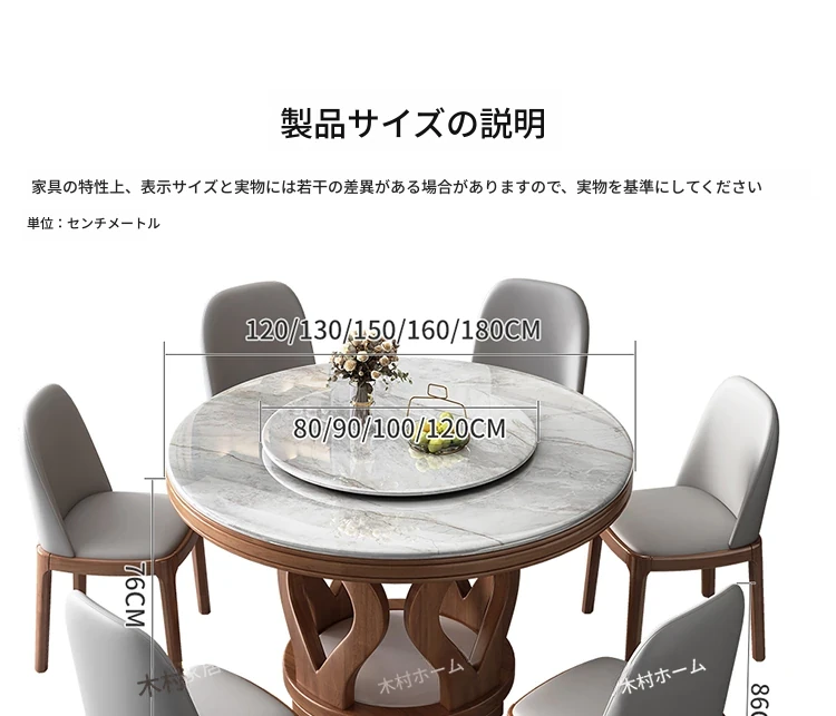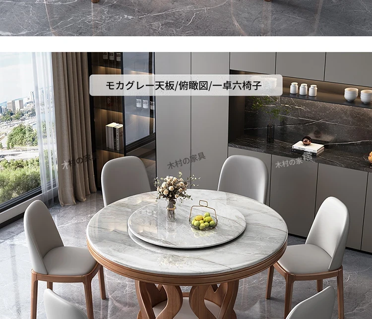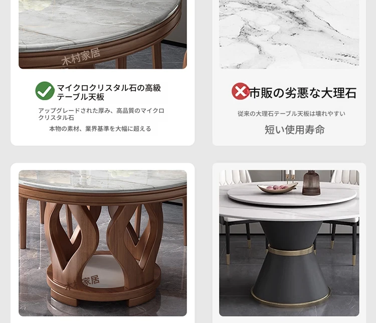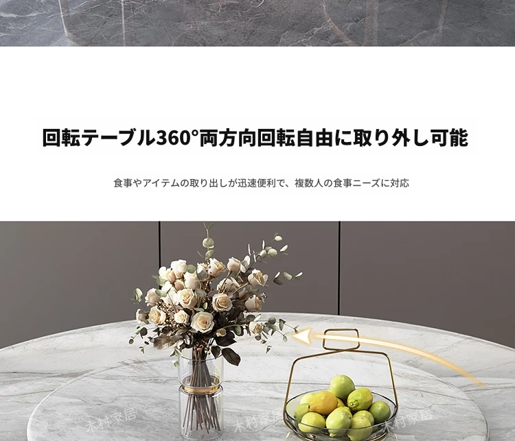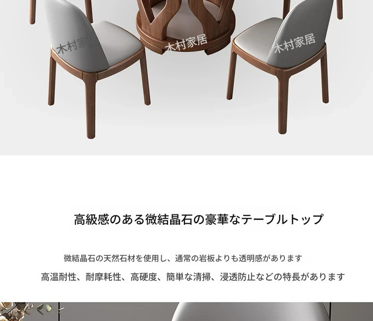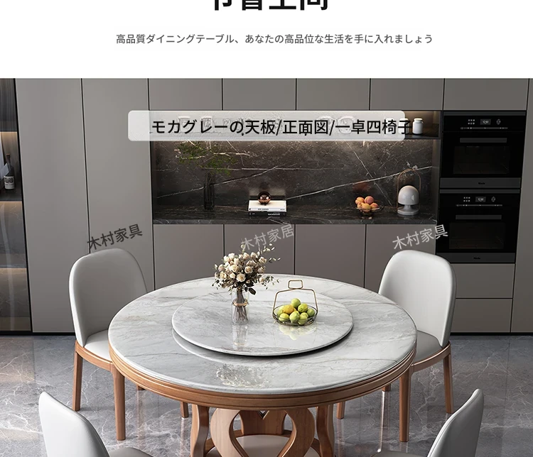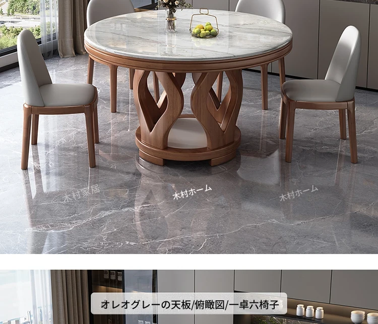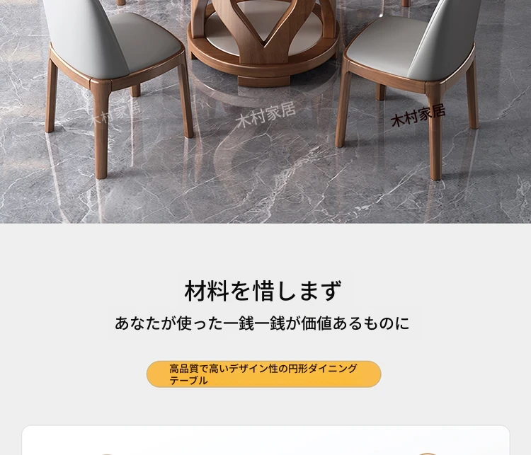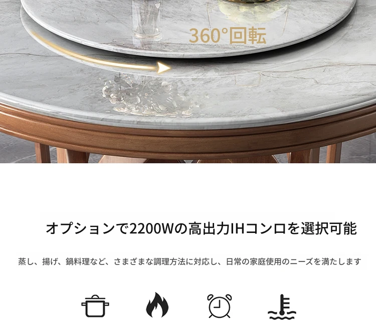 高級感溢れる天然木と大理石のダイニングテーブルセット!小型住宅に最適な円形デザイン、回転盤付きで使い勝手抜群。家族や友人との楽しい食事を演出します。おしゃれで機能的な食卓を手に入れましょう!