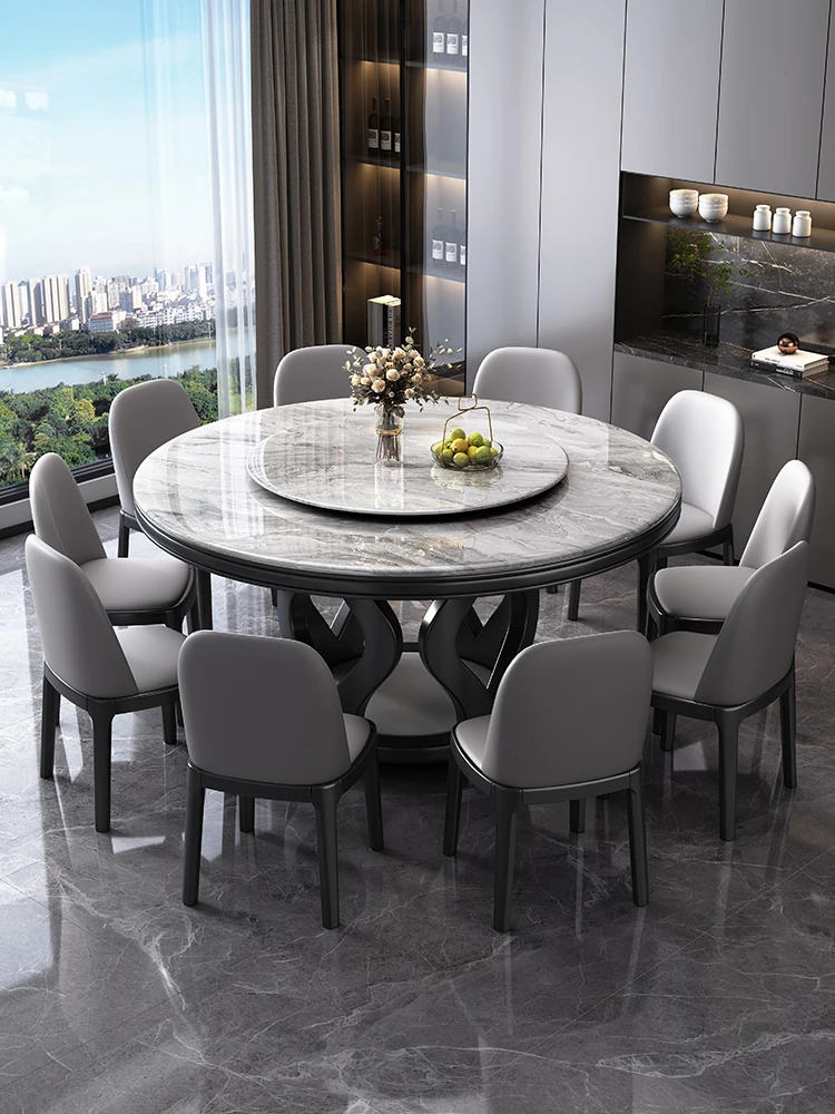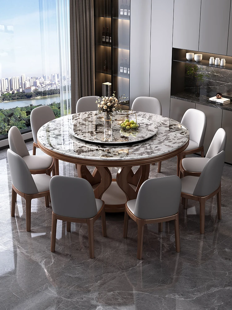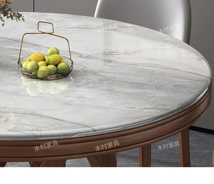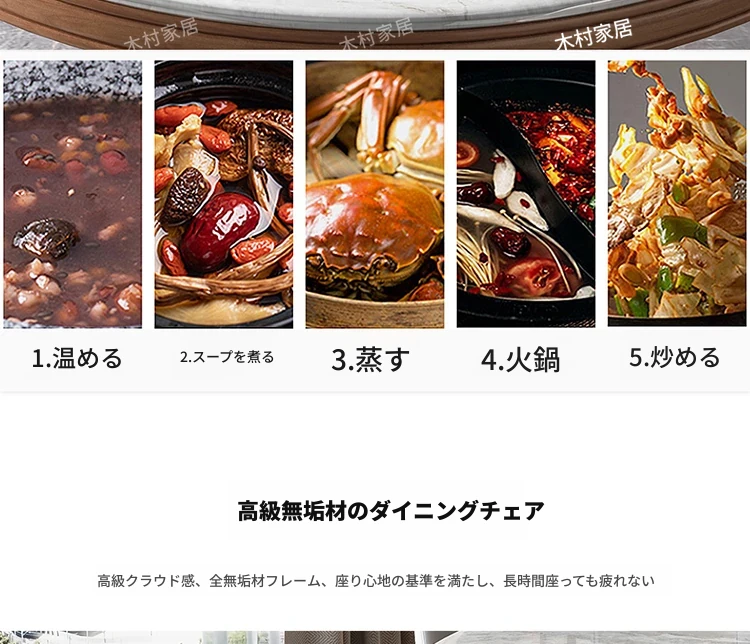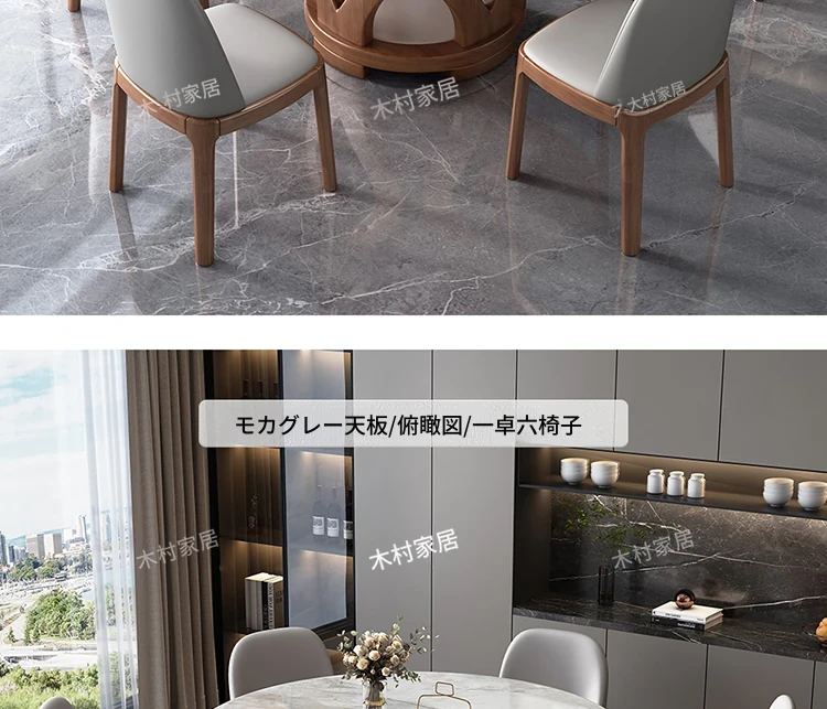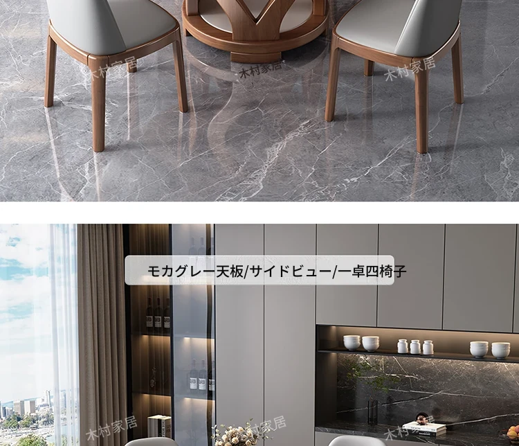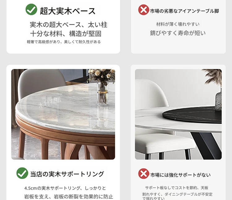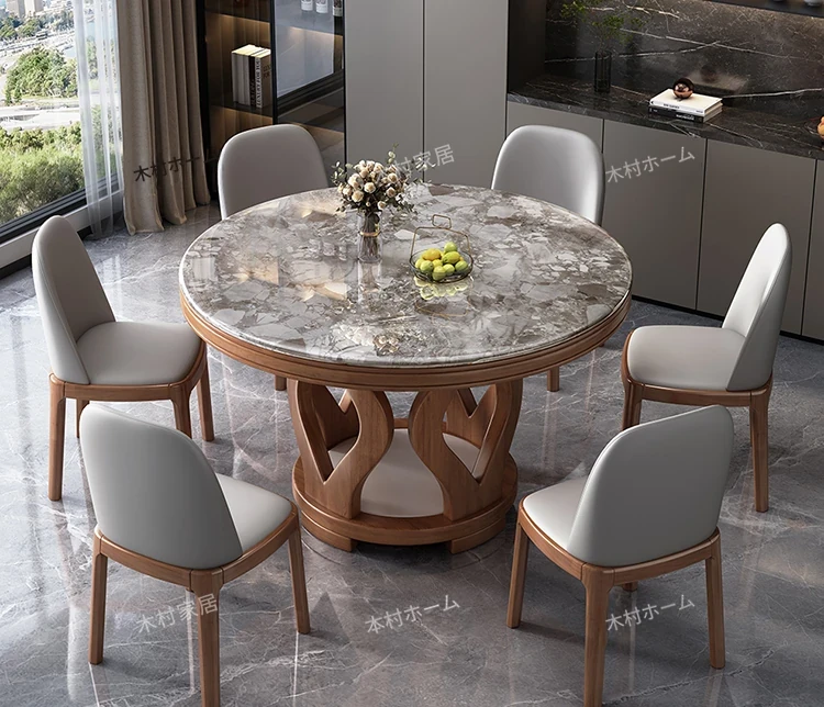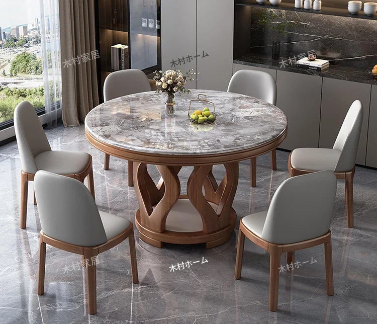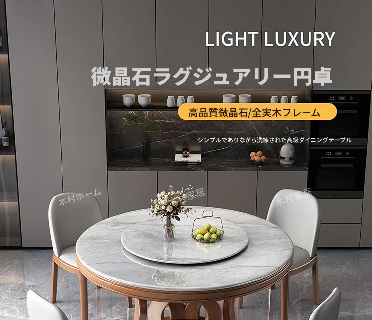 高級感溢れる天然木と大理石のダイニングテーブルセット!小型住宅に最適な円形デザイン、回転盤付きで使い勝手抜群。家族や友人との楽しい食事を演出します。おしゃれで機能的な食卓を手に入れましょう!