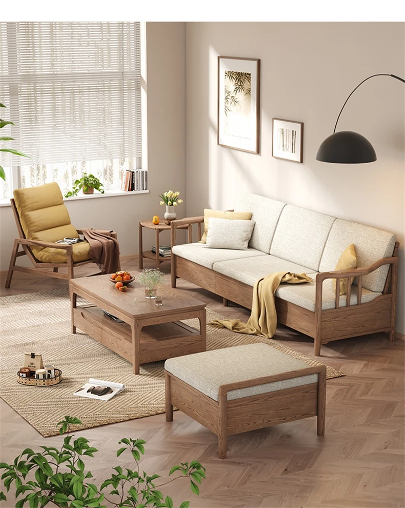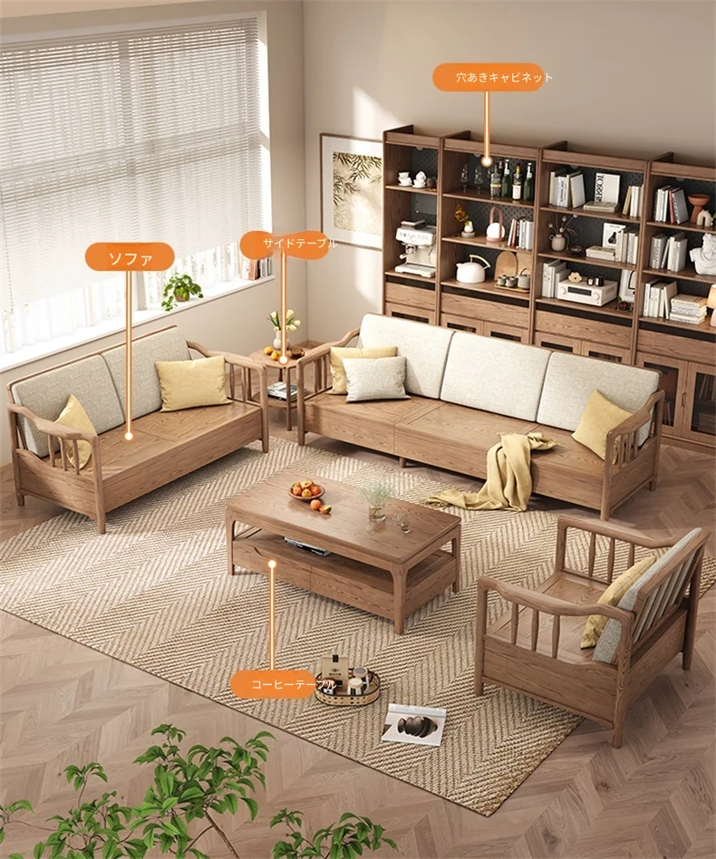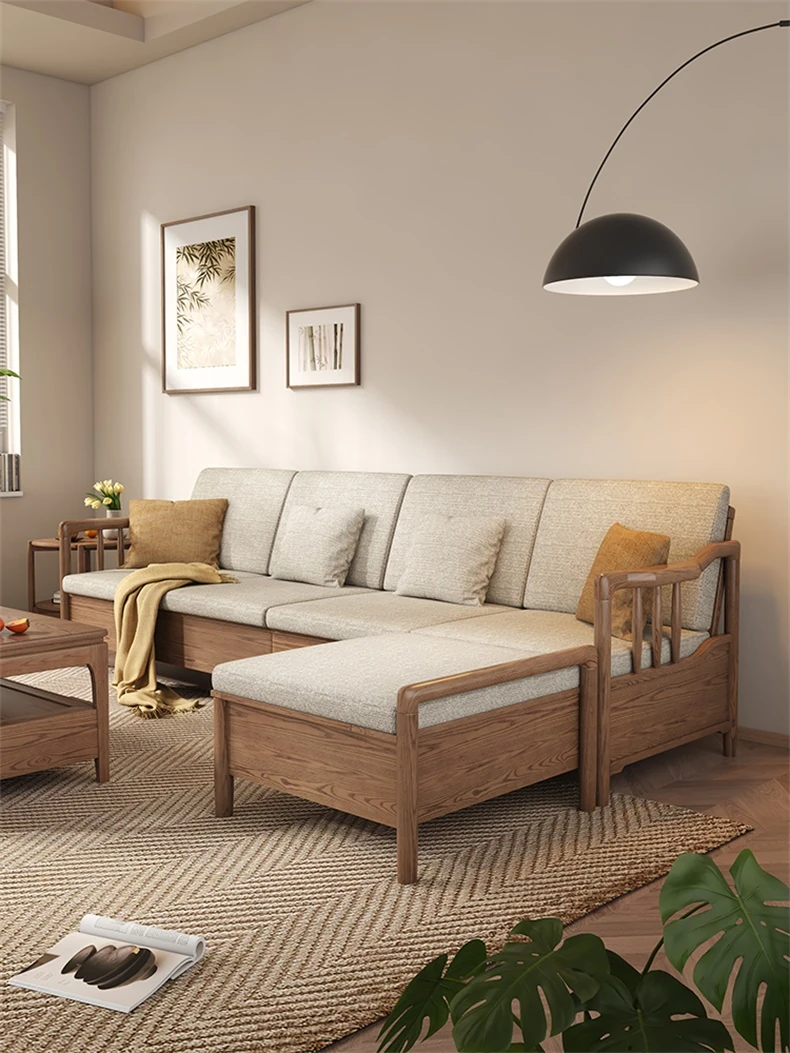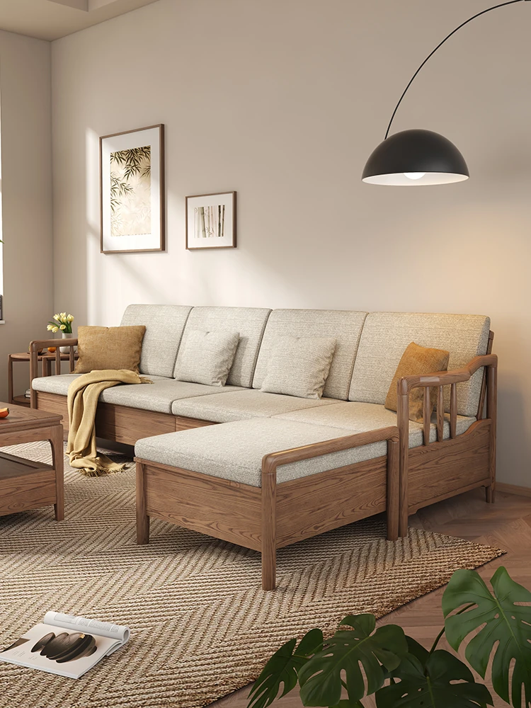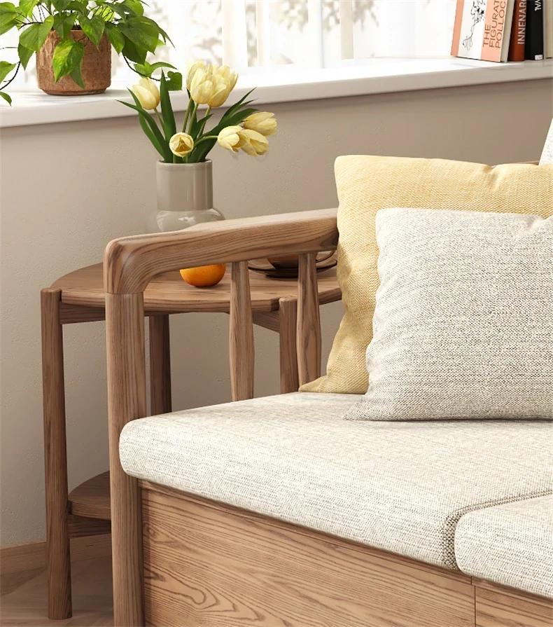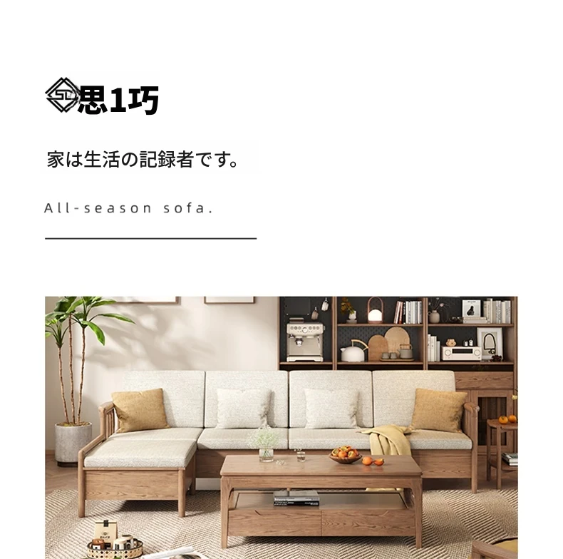 新中式デザインの実木ソファ、冬夏兼用!白アリの木を使用したコンパクトサイズの3人用ソファ。収納ボックス付きで、限られたスペースを有効活用。快適なリビング空間を実現します!