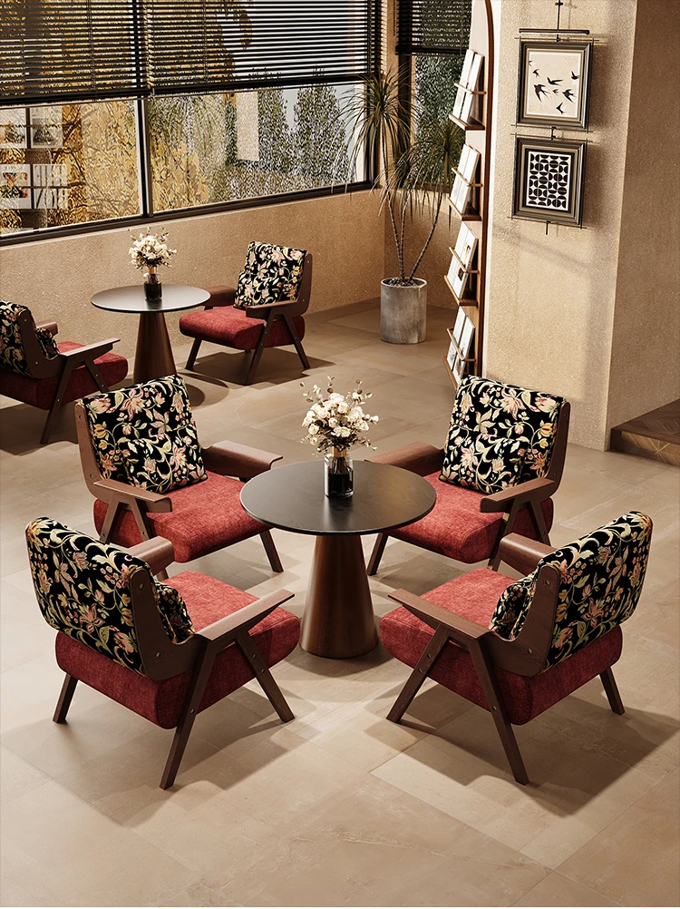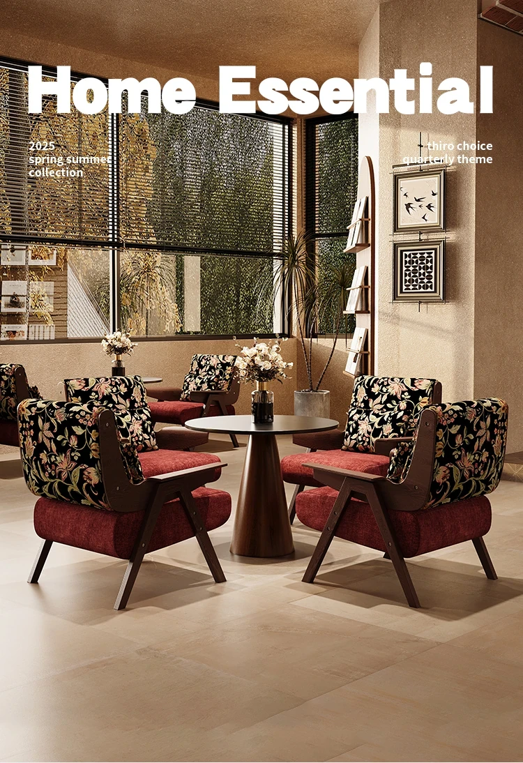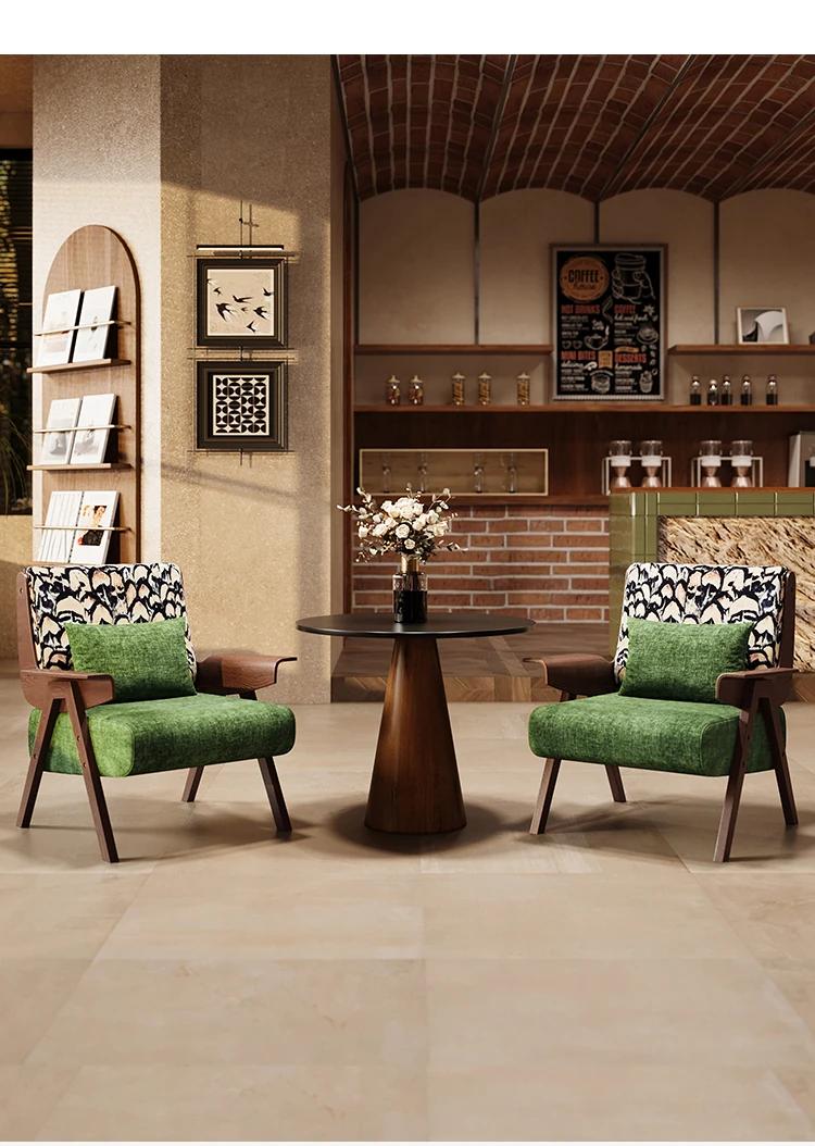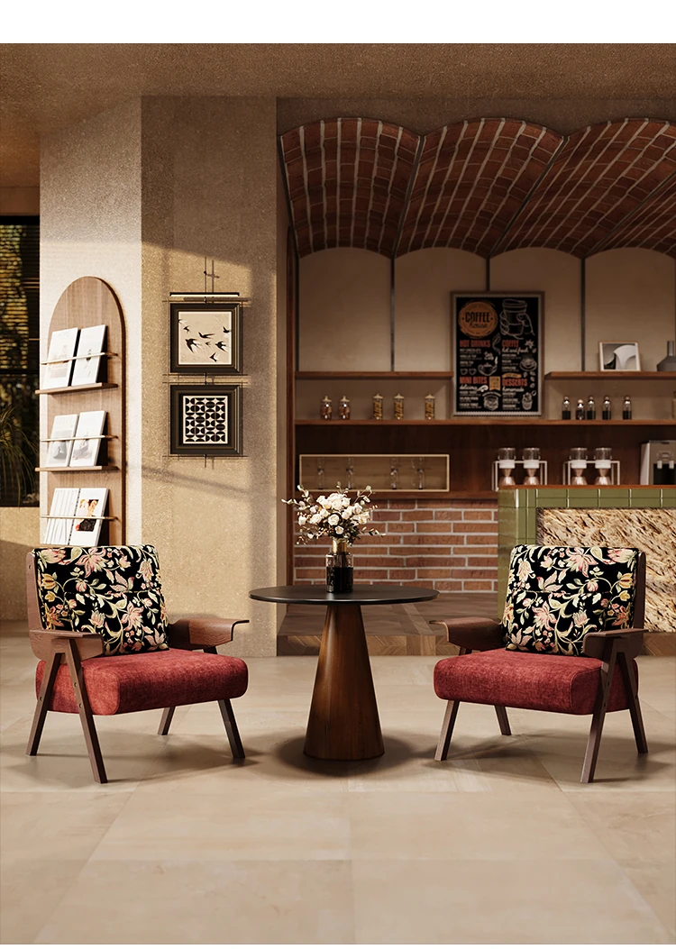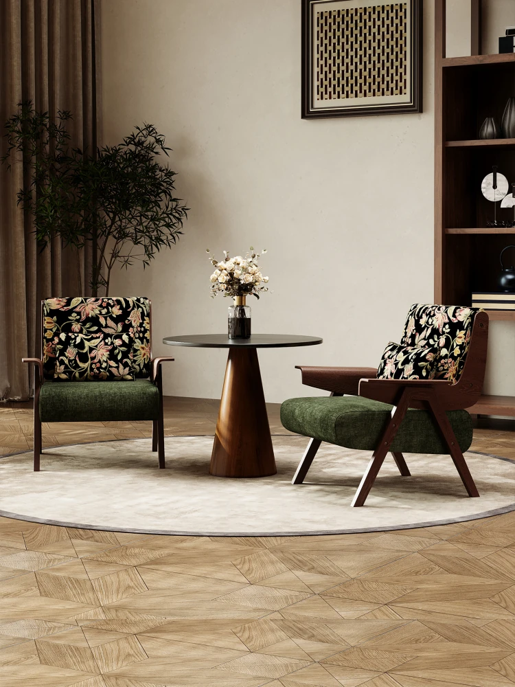 フランス風レトロ一人掛けソファチェア|商談・接客に最適|ホテル・カフェ・レストランにぴったりの実木製リラックスチェア|おしゃれな民宿にもおすすめ!