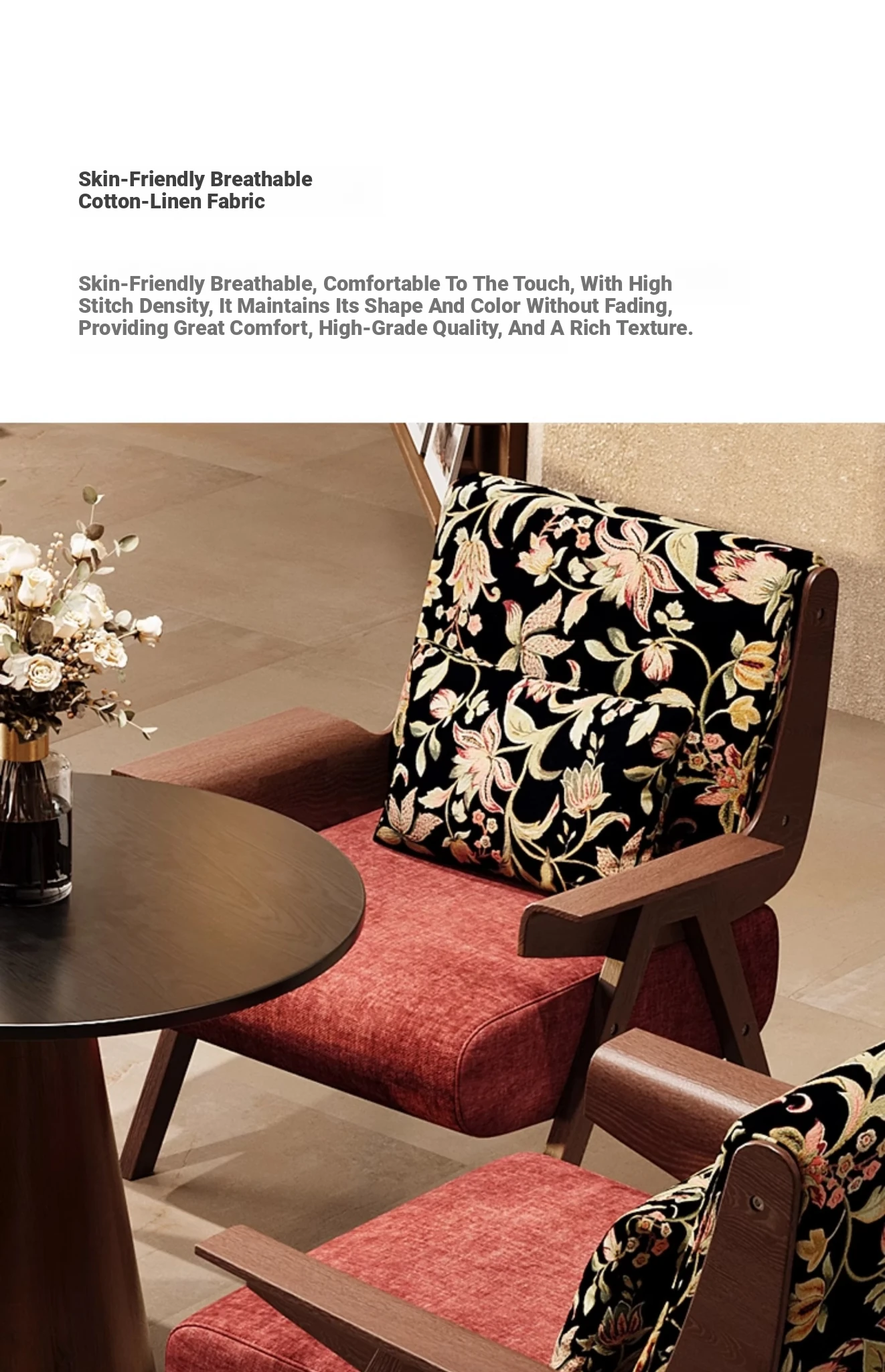 ホワイトアッシュ-【赤い花】クッション付き