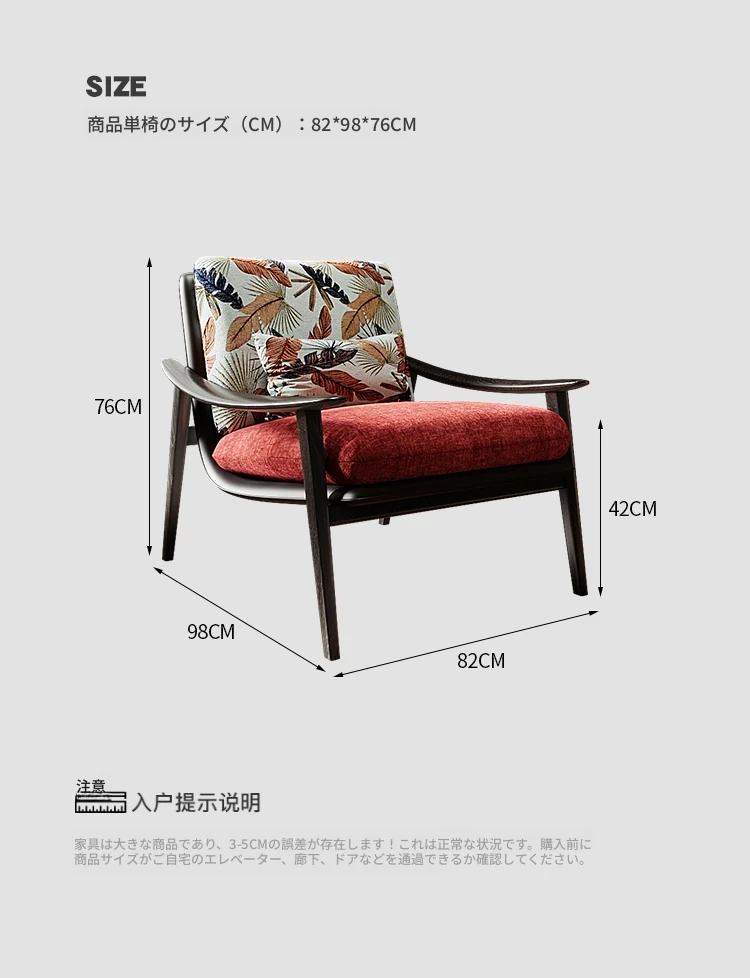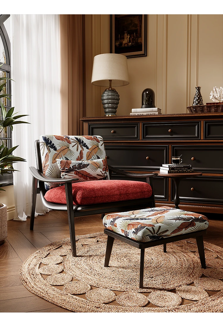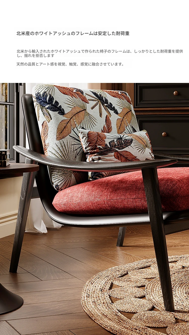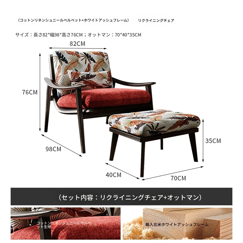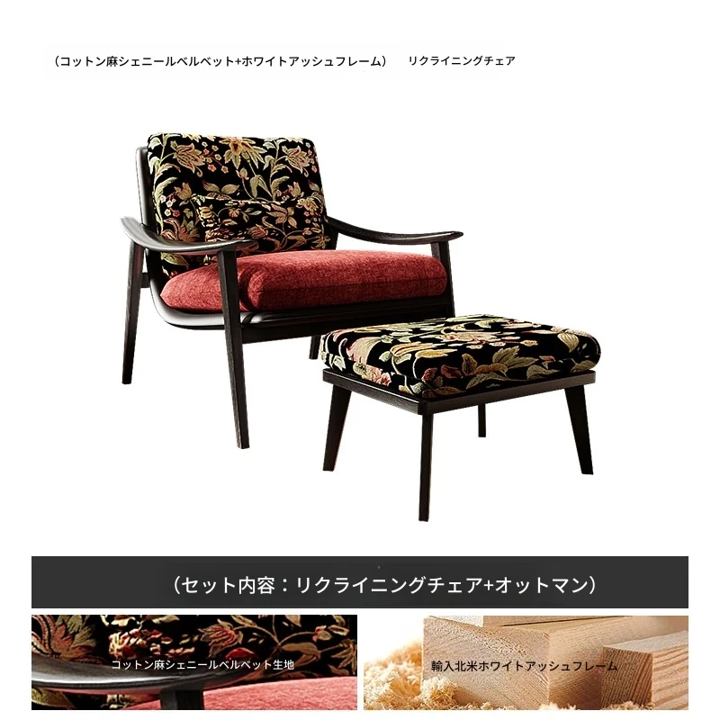 レッドフラワーパッケージ:取り外し可能-ホワイトアッシュアームチェア+無垢材オットマン(同款クッション付き)