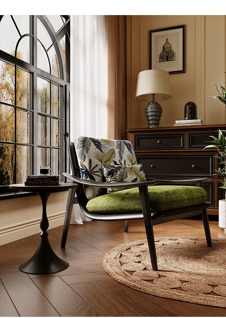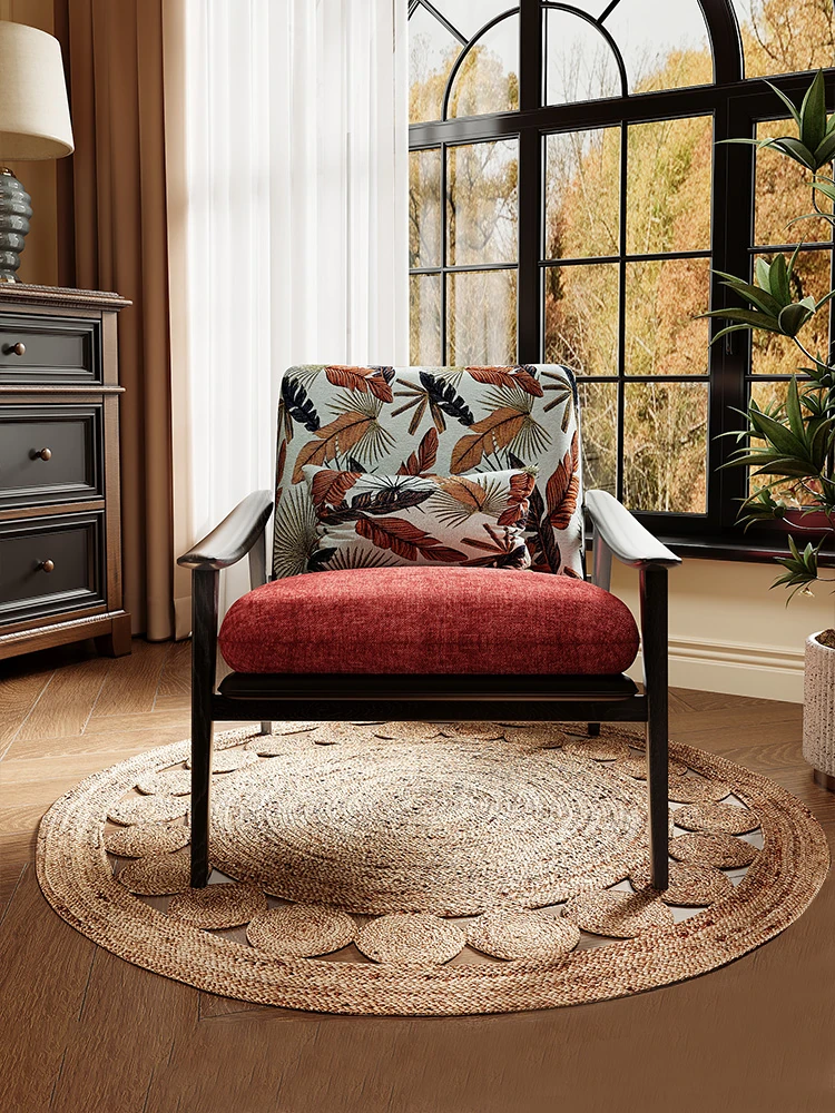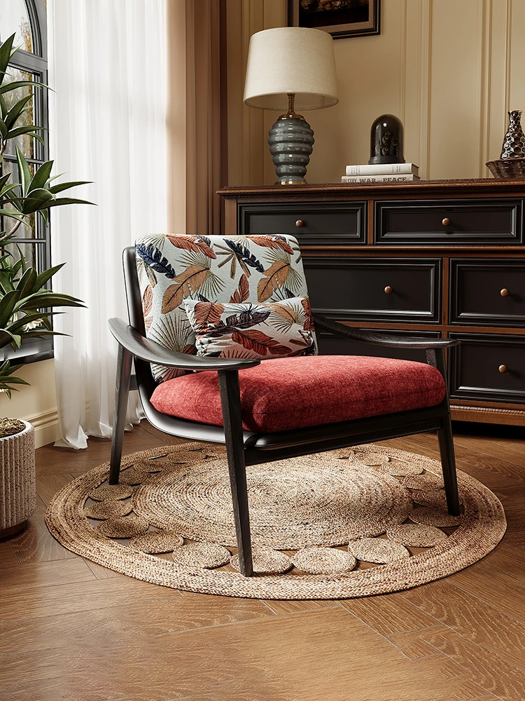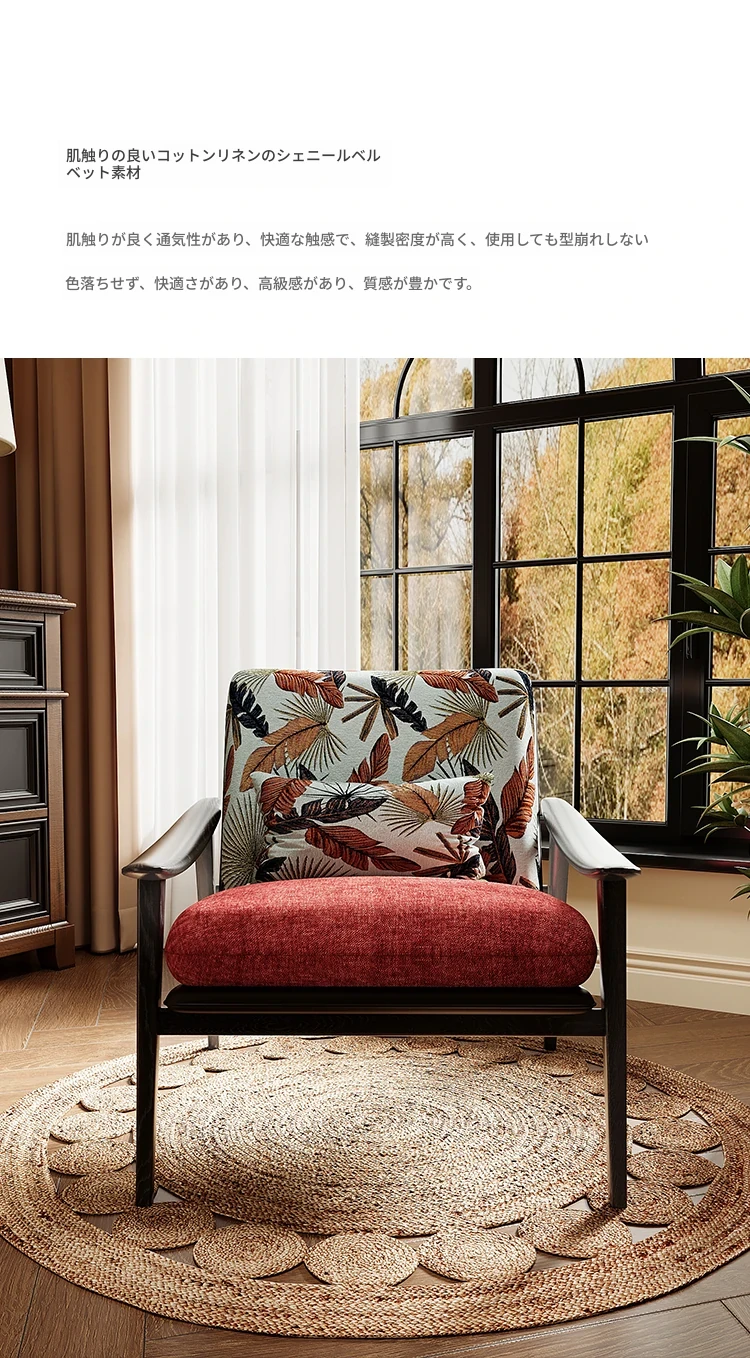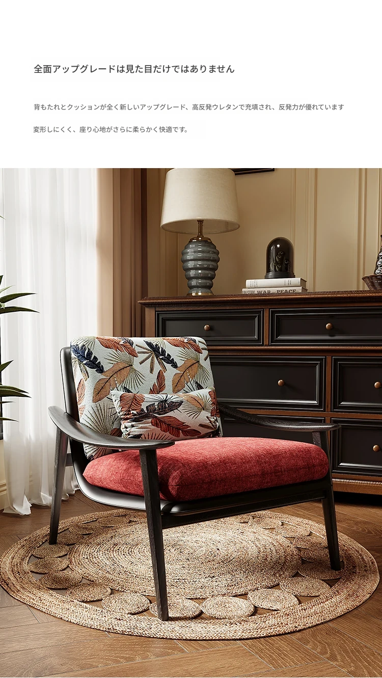 ヴィンテージ風の洗える一人用ソファチェア - 天然木製フレンチデザインのデザイナーズ民宿向けレトロモダンリビング用リラックスチェア
