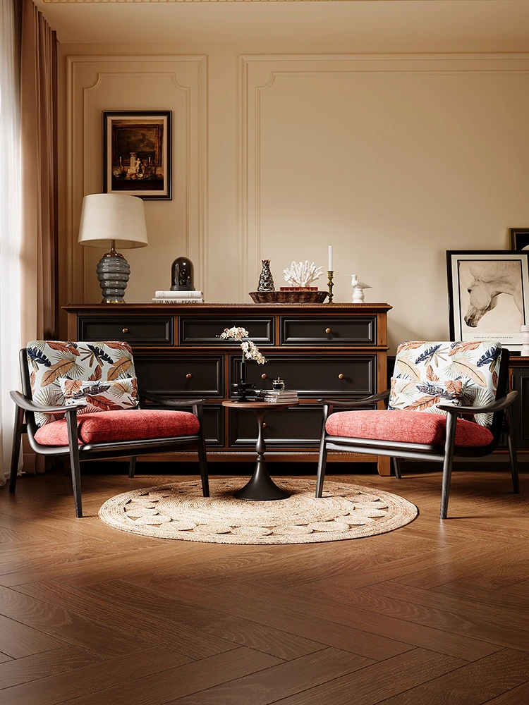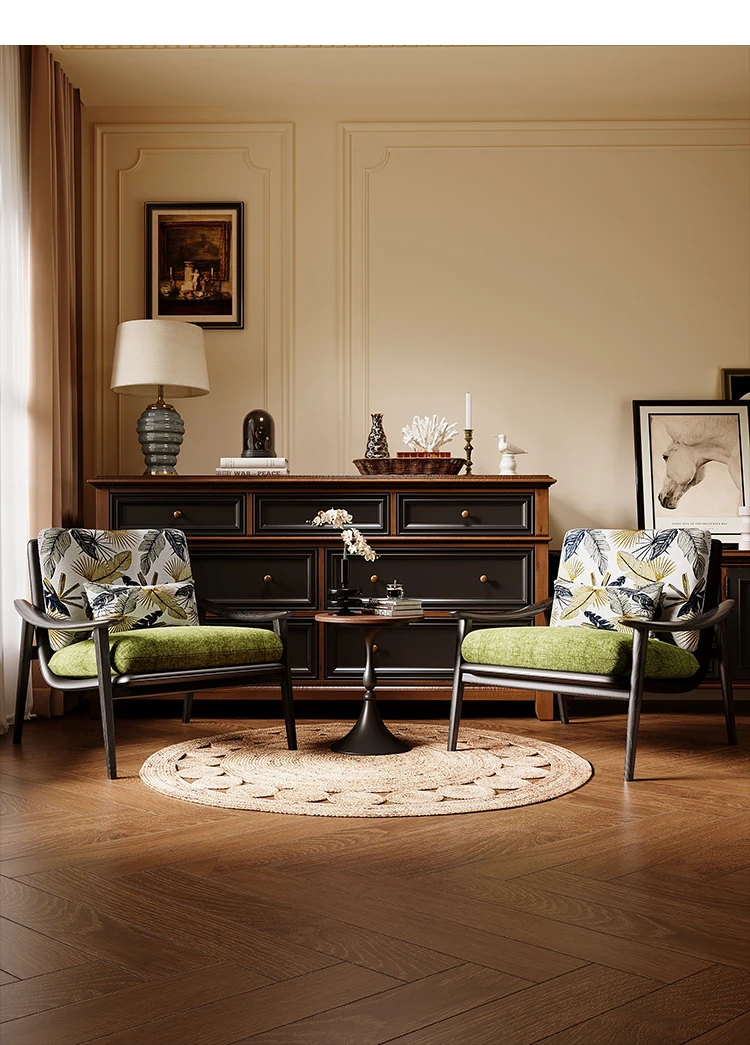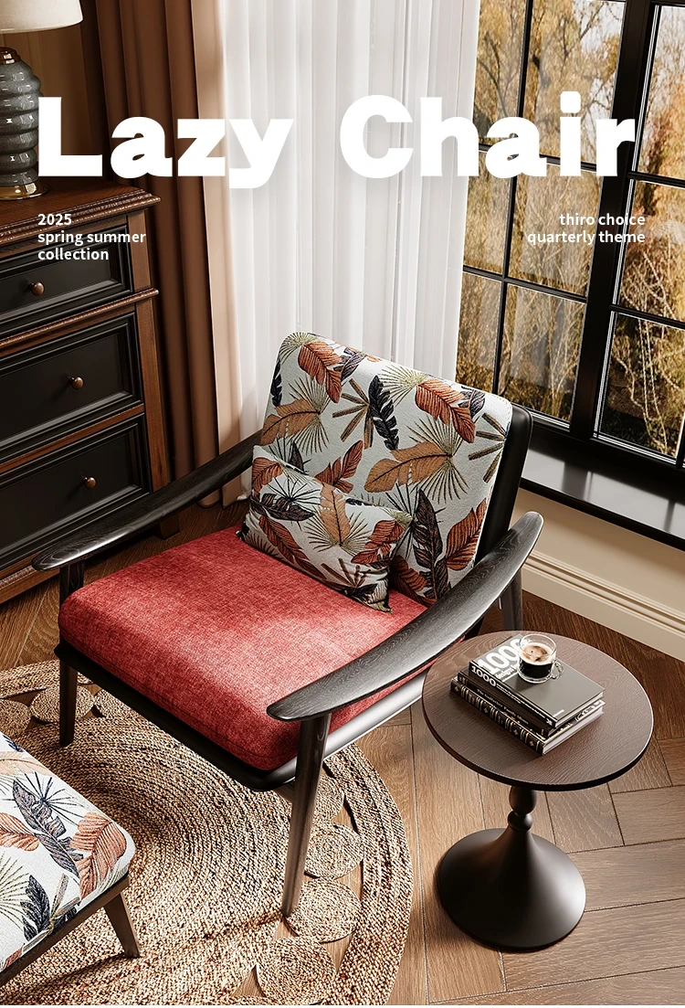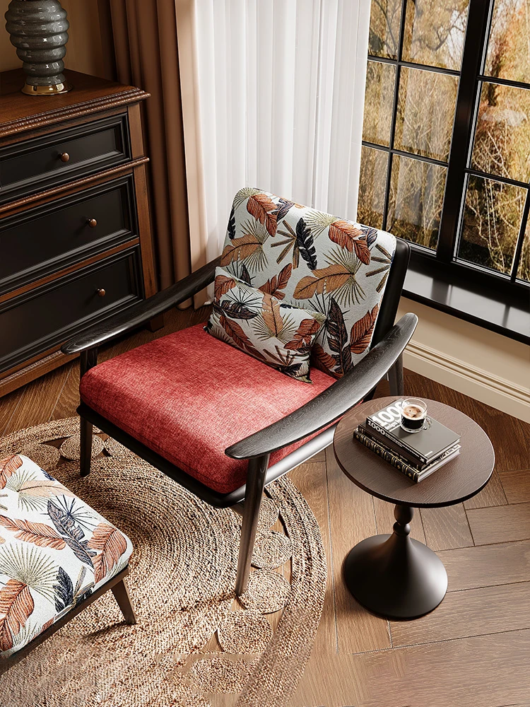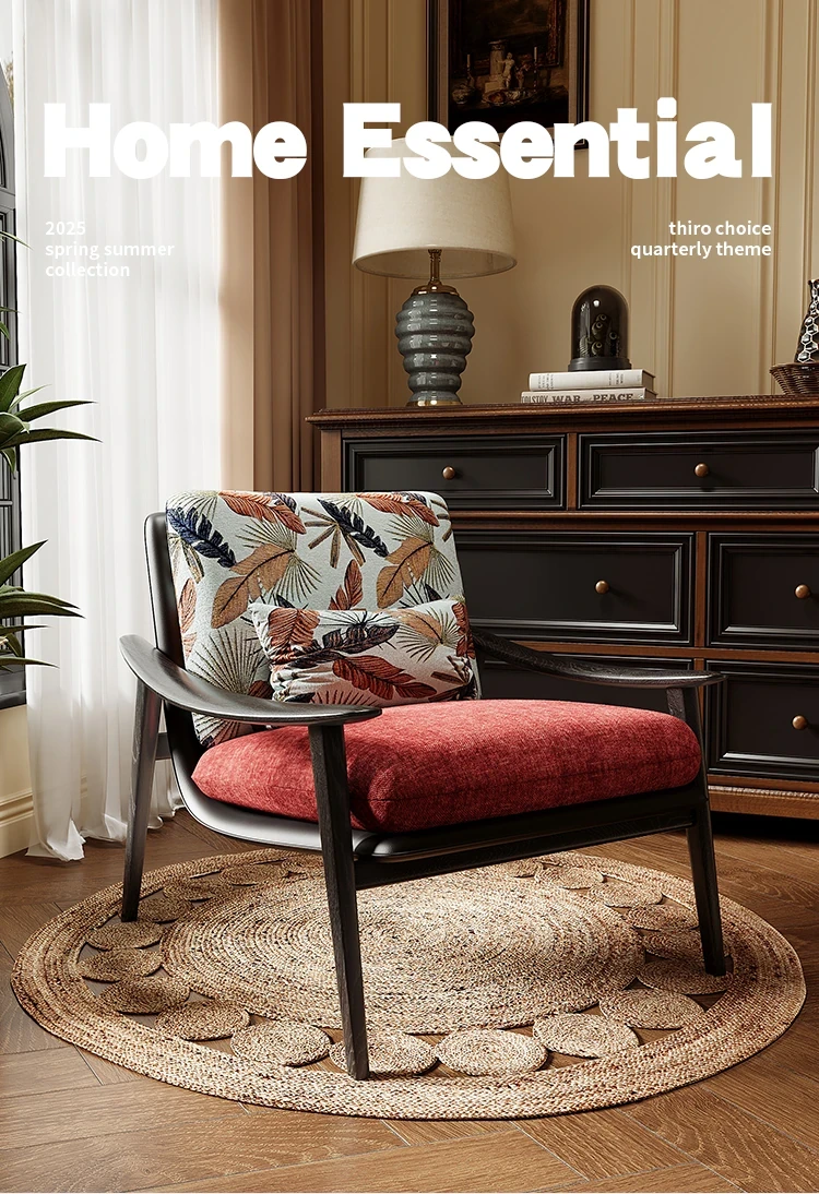 ヴィンテージ風の洗える一人用ソファチェア - 天然木製フレンチデザインのデザイナーズ民宿向けレトロモダンリビング用リラックスチェア