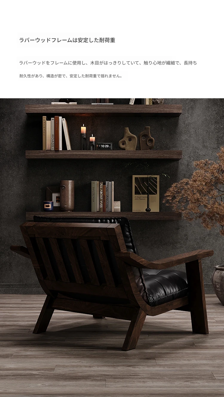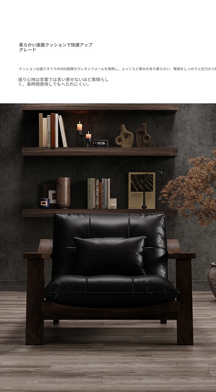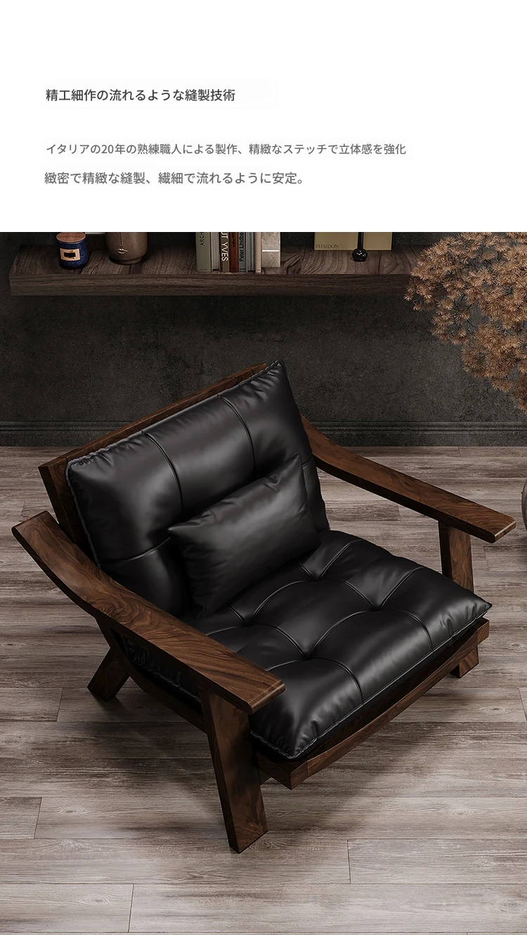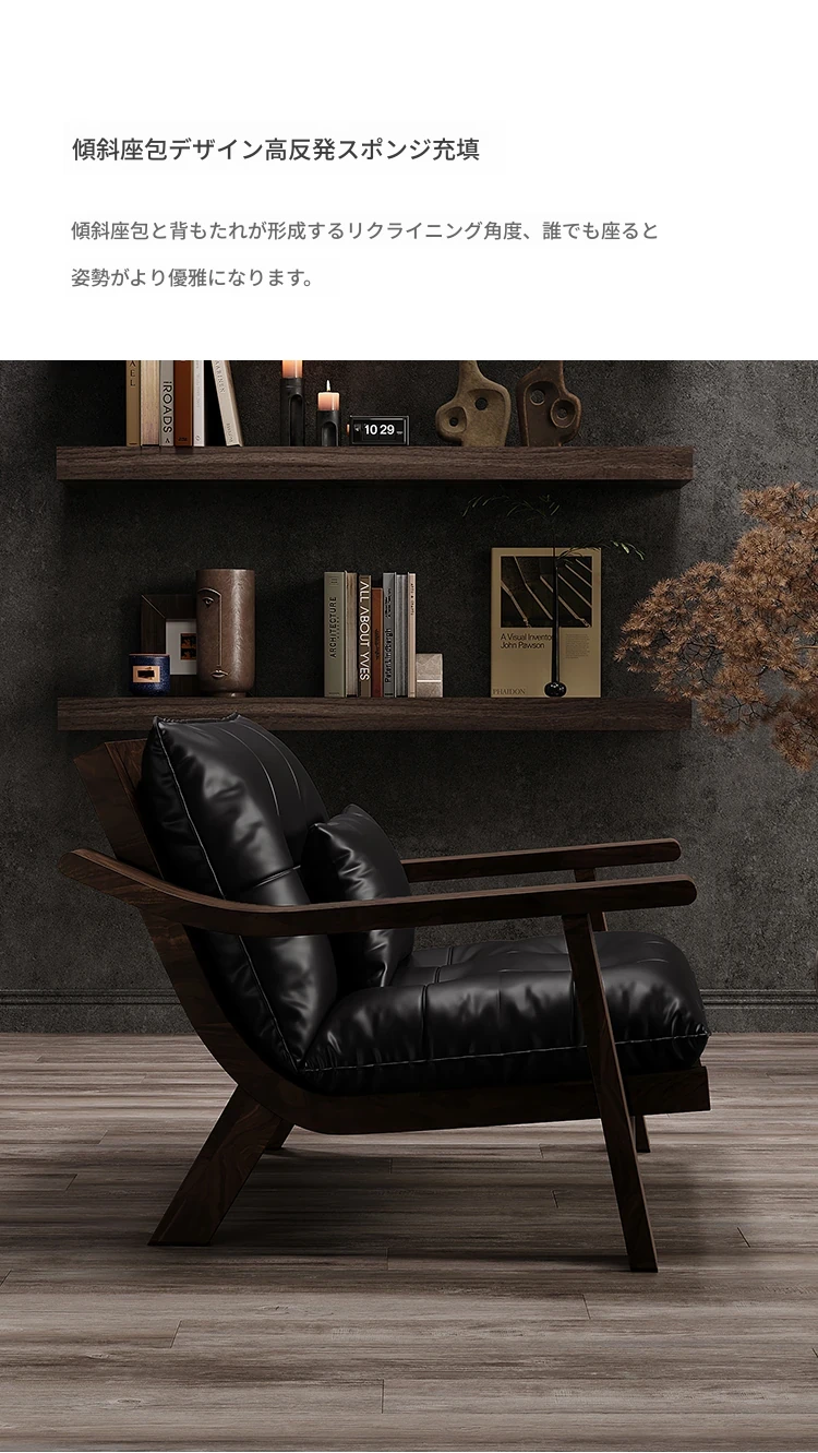 【ブラック-レザー】カジュアルチェア-01型