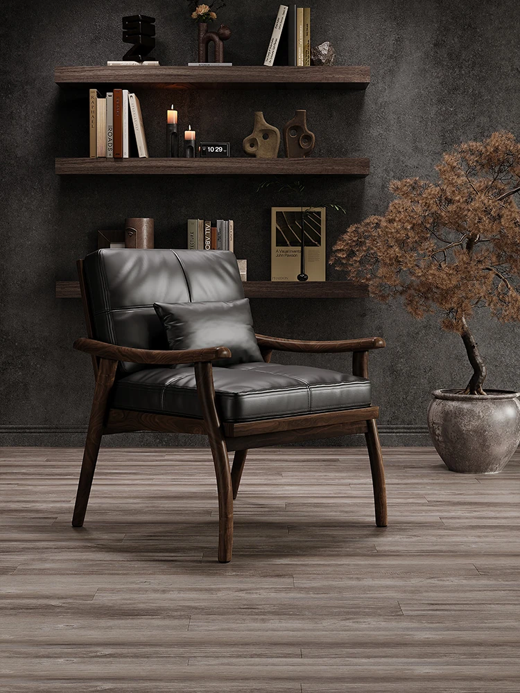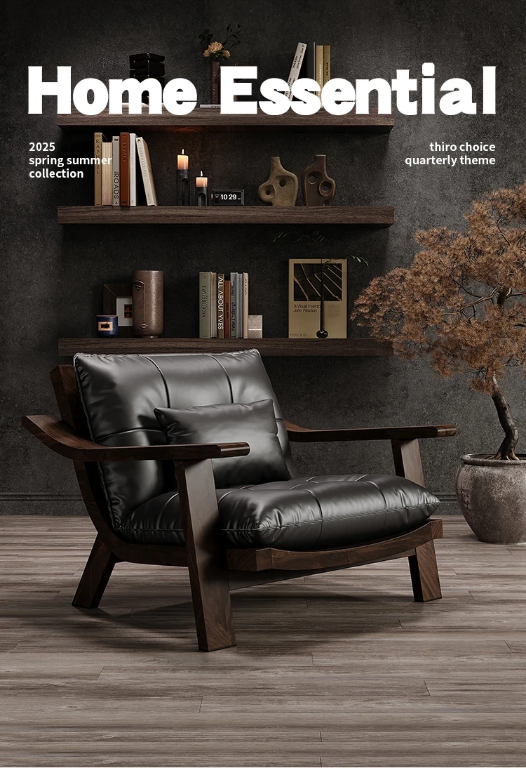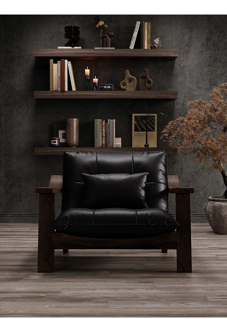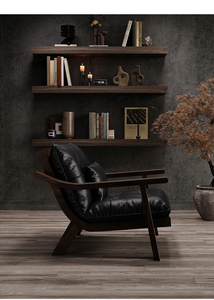 【ブラック-レザー】カジュアルチェア-01型